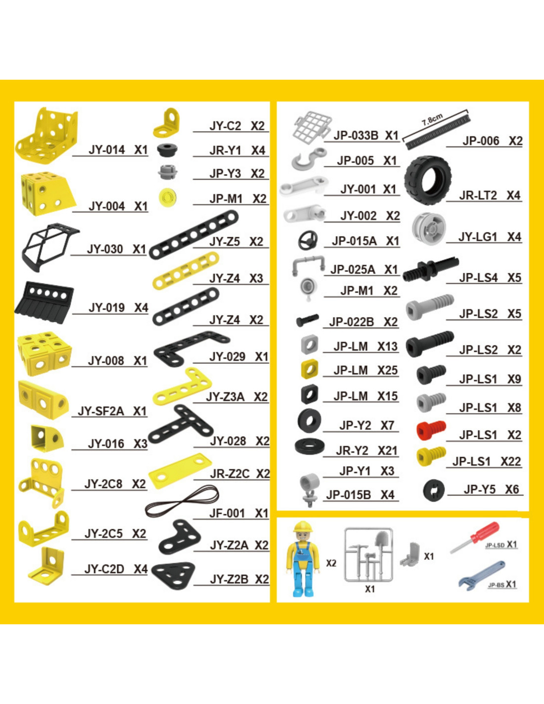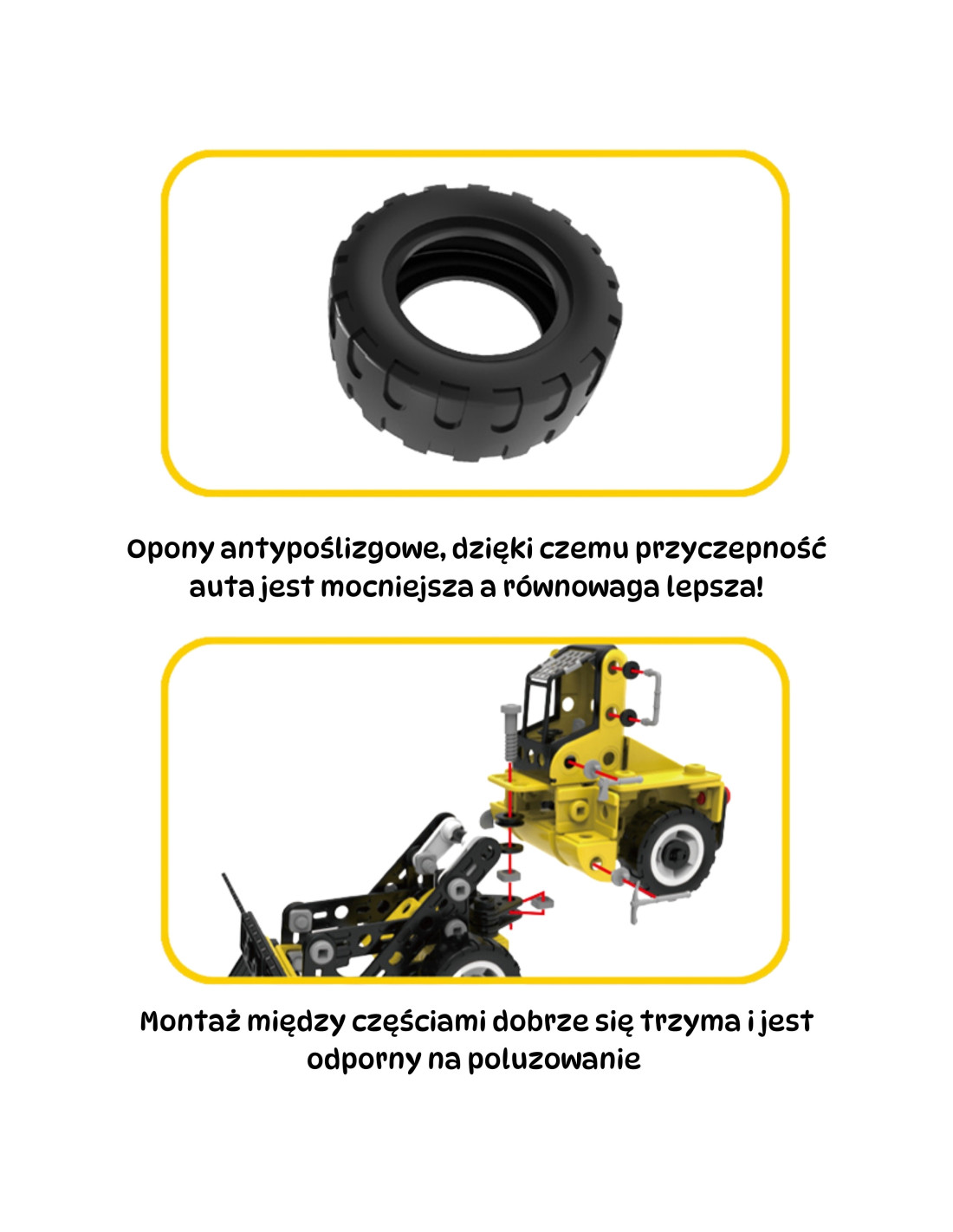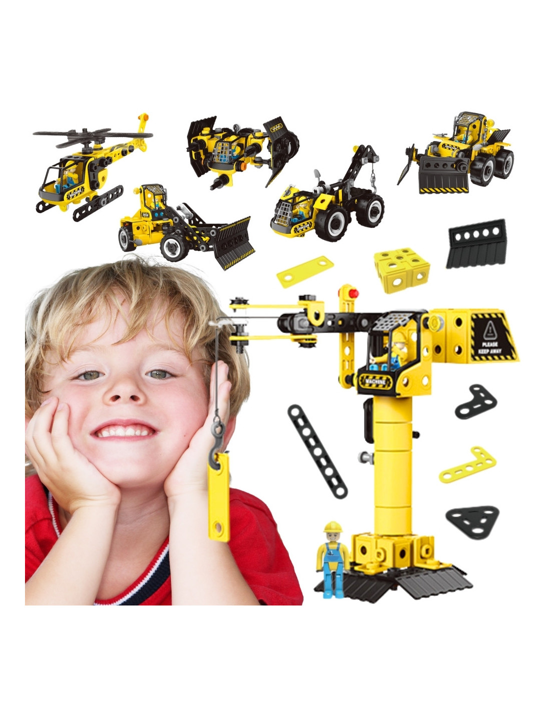 Discover the fascinating world of construction with the Woopie STEAM Construction Vehicles Building Set. This unique building block set allows children to build up to 6 different construction vehicle models from a single set of parts. Each model represents real machines used in quarries and on construction sites – from powerful excavators, to construction cranes, to rescue helicopters. The yellow and black color scheme gives the toy a professional, industrial feel, while numerous movable parts provide a realistic play experience.