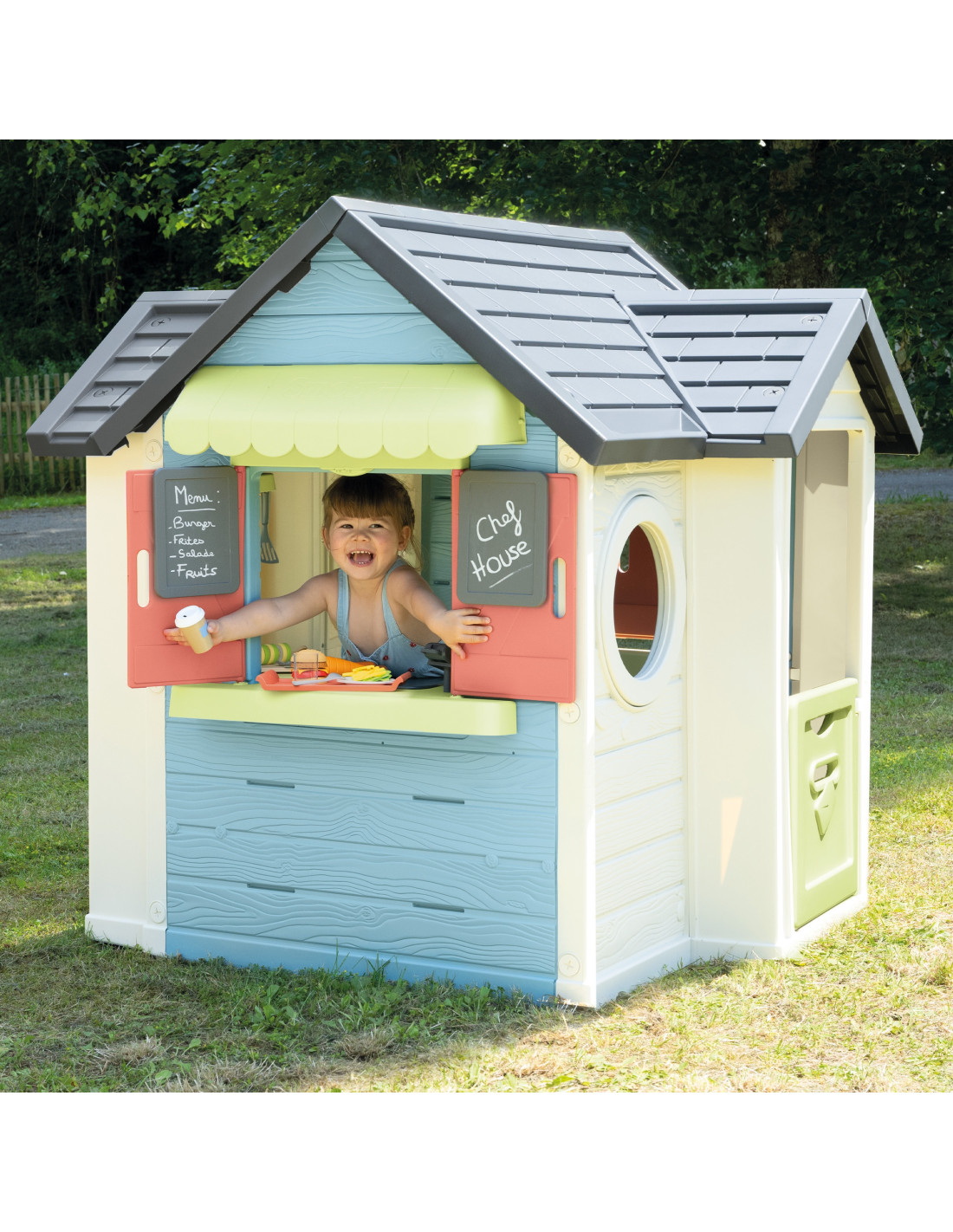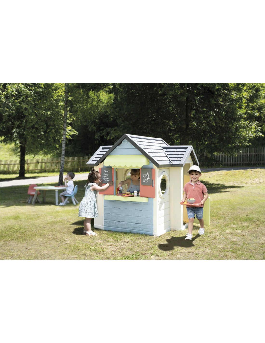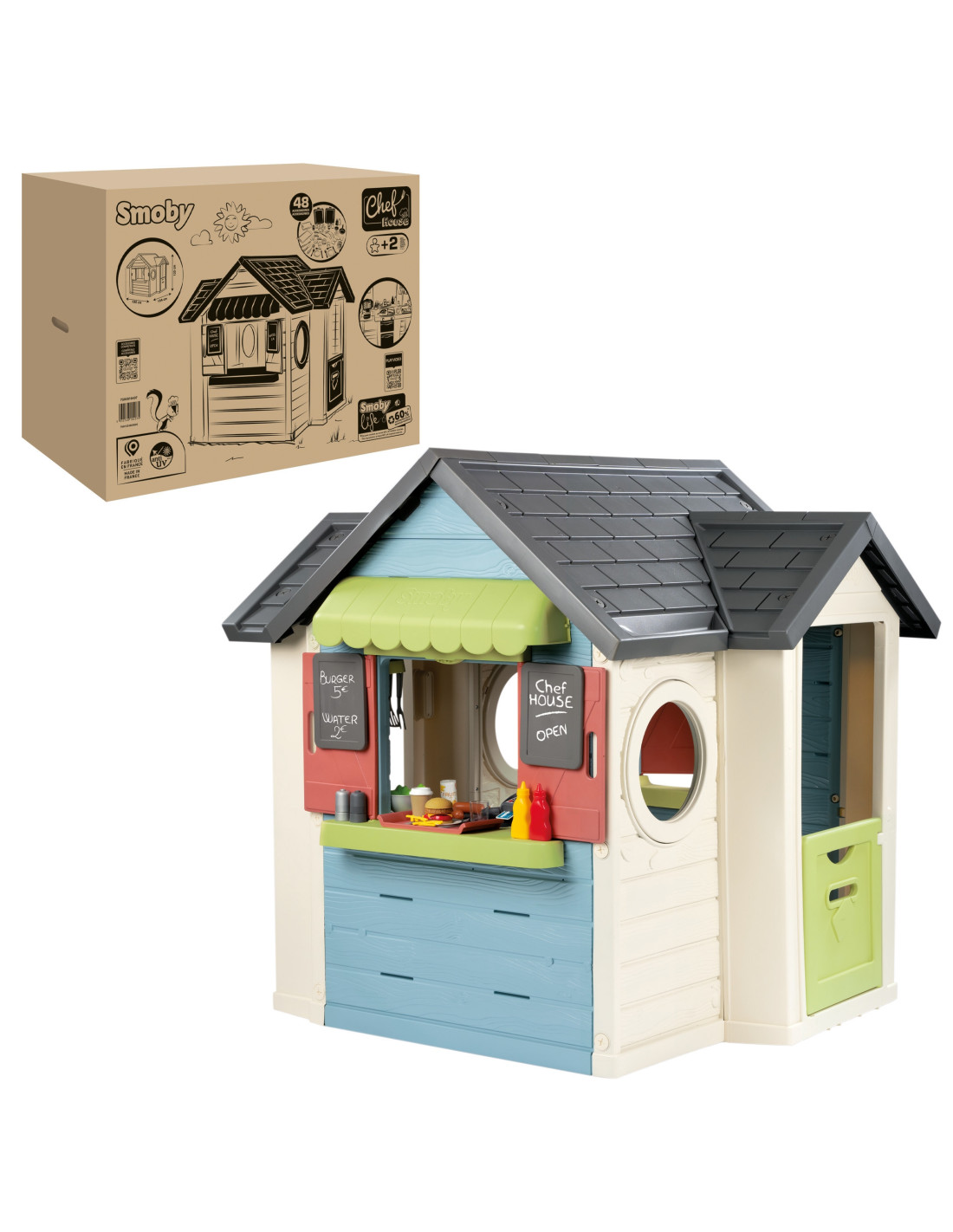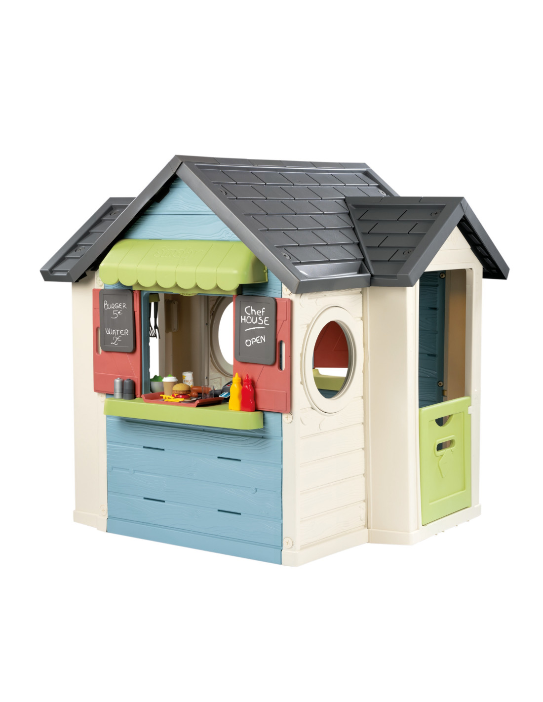 The Smoby Chef's Cottage is a unique toy that combines the functions of a classic garden cottage with a fully-fledged restaurant kitchen. Perfect for young cooking enthusiasts who want to develop their culinary skills in the garden by creating their own outdoor restaurant. Perfect for solo play or with friends, it encourages creativity and collaboration.