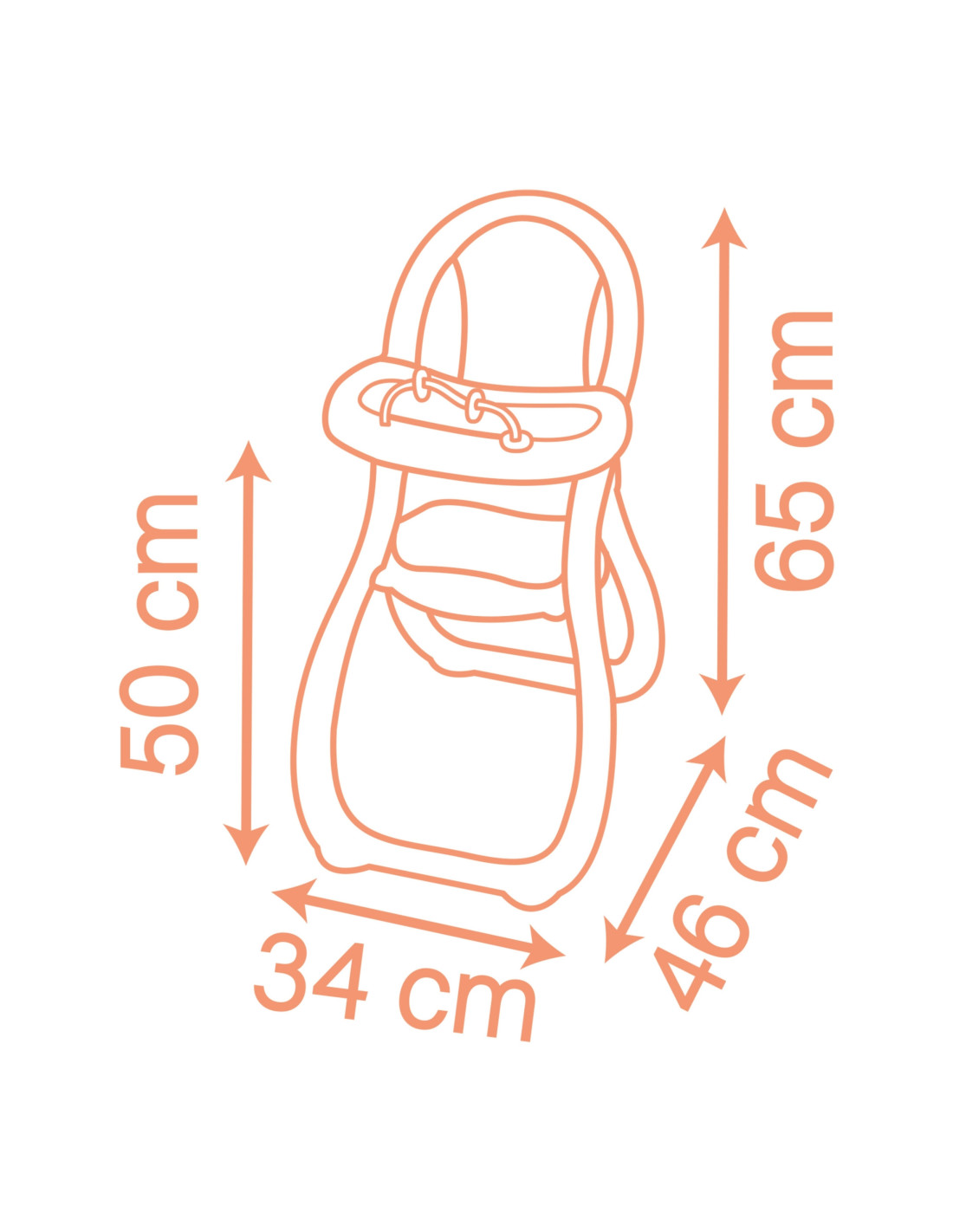 Every little girl dreams of caring for her doll like a real mom! The Baby Nurse Highchair allows for everyday caregiving fun, teaching empathy and responsibility. The highchair features a modern design and beautiful, girly colors that will delight every "little mom." The toy features a practical shelf and a toy attached to the table, and the set also includes a plate and spoon. The highchair is ideal for dolls up to 42 cm, and play develops creativity, imagination, and early social skills.
