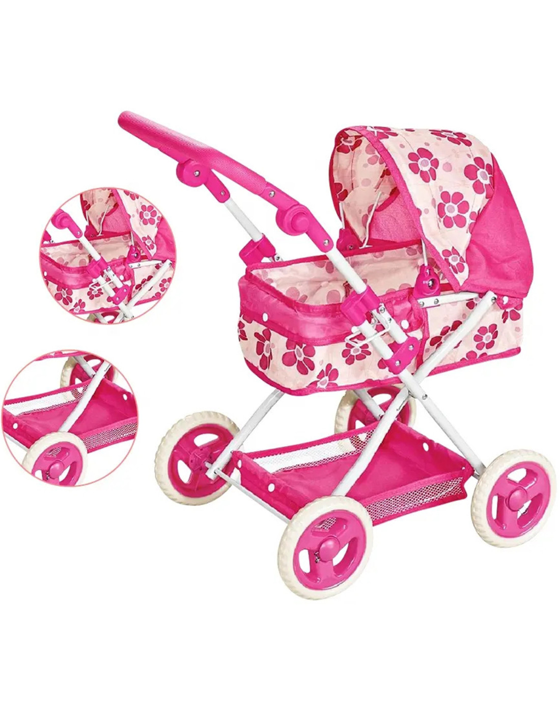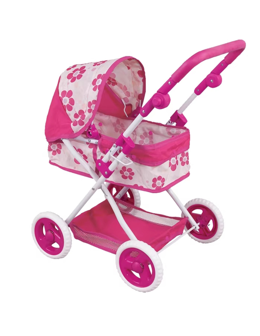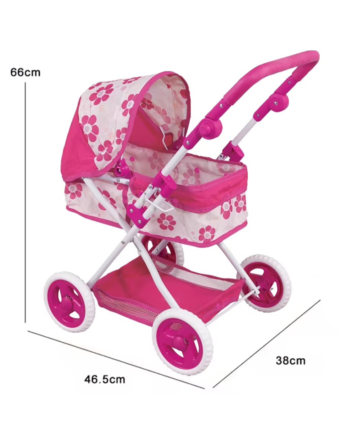 This stylish, deep, and functional doll stroller from WOOPIE with a floral pattern is the perfect choice for any little doll lover! The stroller has an adjustable handle, allowing it to grow with your child. Its quiet wheels ensure smooth maneuverability, and its stable construction ensures safe play.