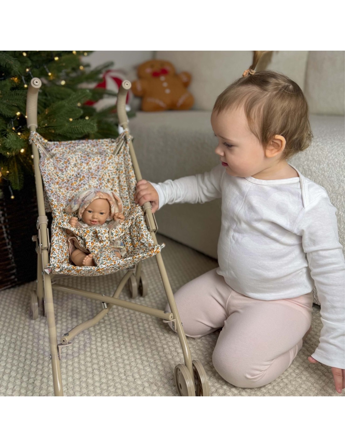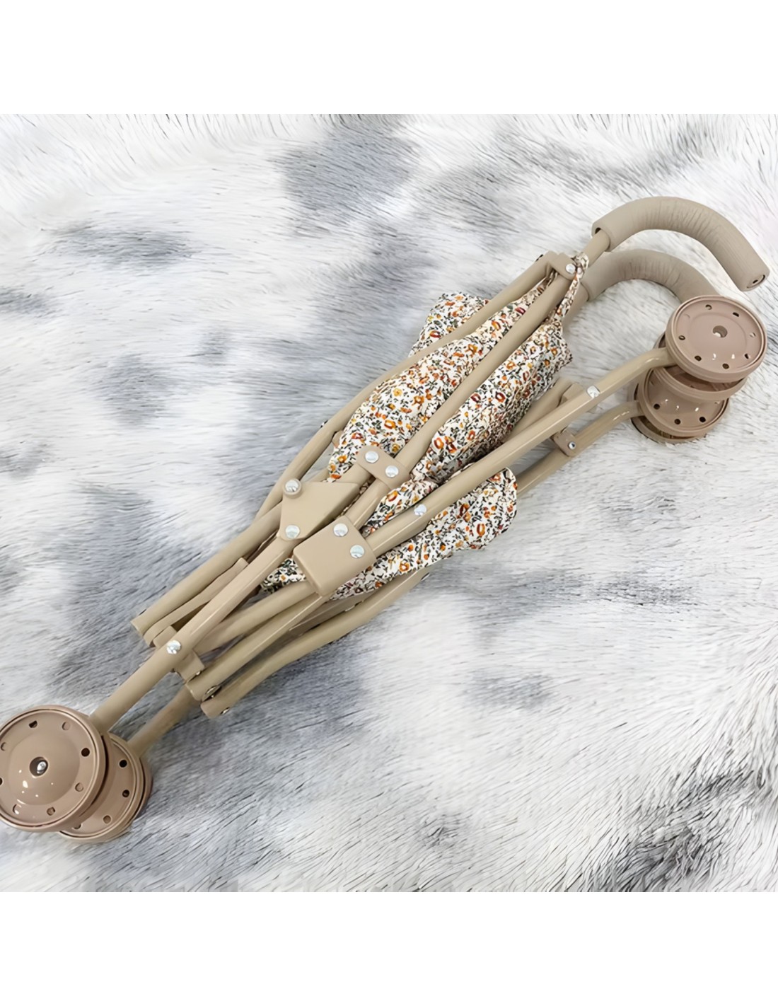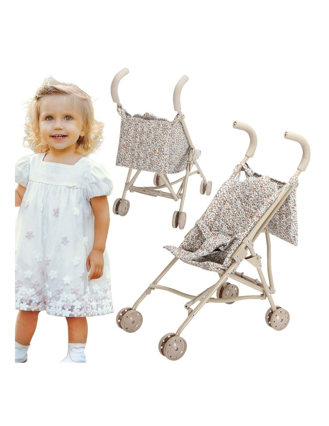 This floral doll stroller from Woopie is the perfect toy for any girl who loves playing house and caring for her favorite dolls or stuffed animals. Its lightweight, foldable design makes it easy to carry and is perfect for both indoors and outdoors. Comfortable handles designed for children's hands and double wheels ensure a comfortable ride. Stylish cream-colored upholstery with a charming floral pattern adds a unique touch. It's a wonderful gift idea that develops a child's imagination, empathy , and manual dexterity .