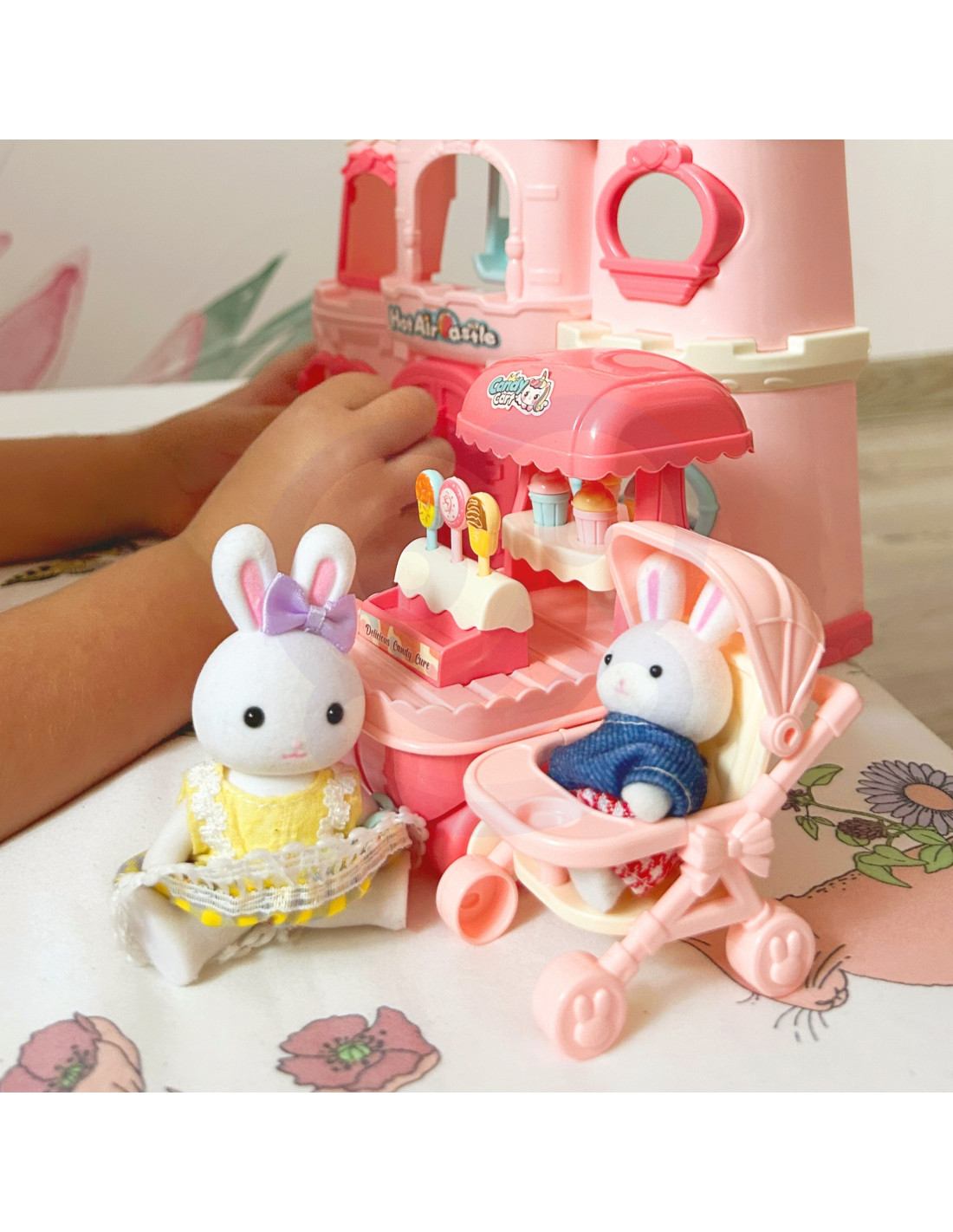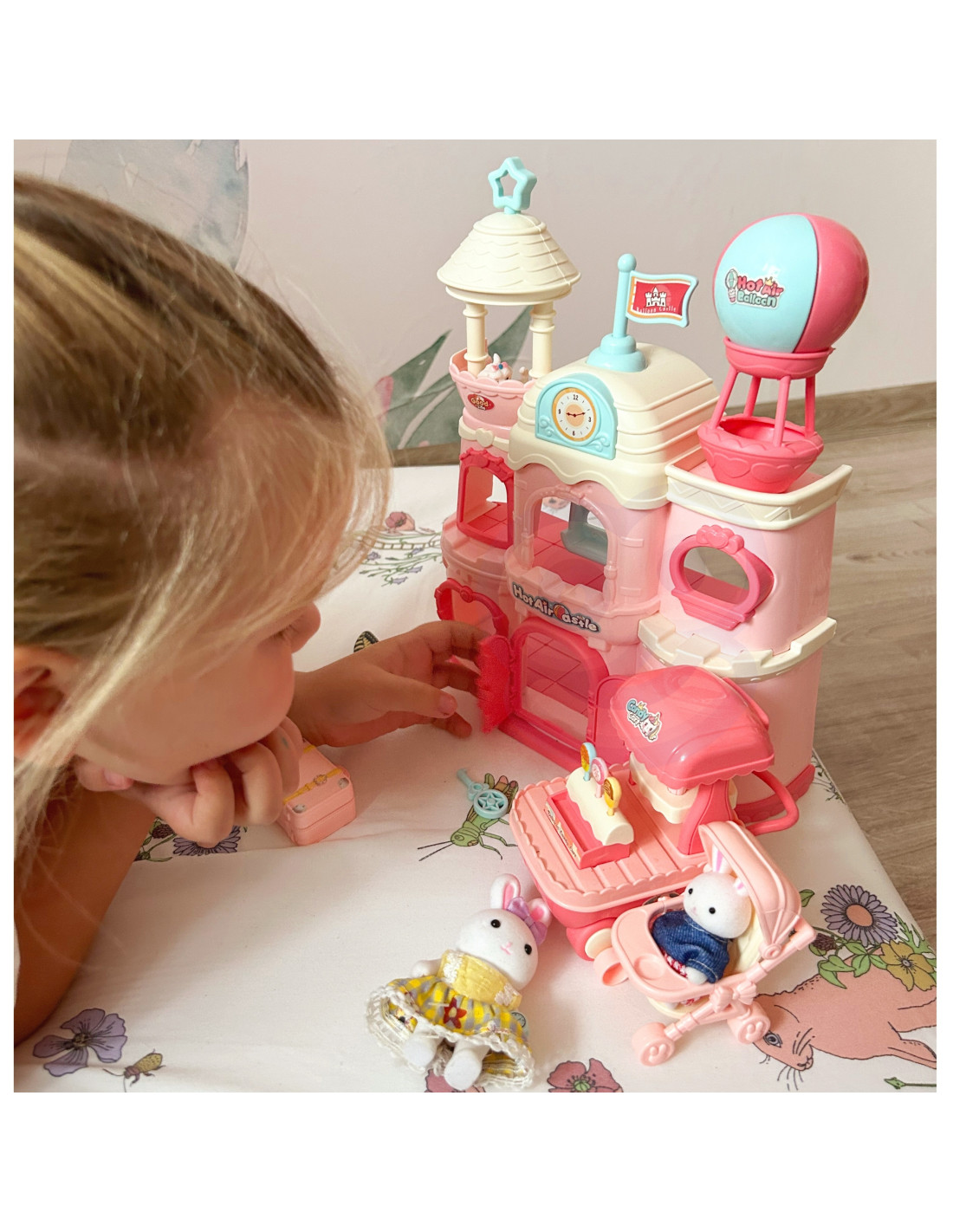 The Bunny Villa from WOOPIE is a magical place full of color and adventure for every child. A key-operated lock reveals three levels full of fun and adventure. The set includes a mother and baby bunny, as well as their dog . The little bunny has a charming pink stroller . The set also includes a suitcase and a cart with ice cream and other treats to ensure complete playtime enjoyment. The Bunny Villa delights with its colors and numerous details, such as picturesque windows , a swing inside, and a balloon on the roof , ensuring unforgettable moments of entertainment and creative play. Numerous and varied accessories will spark imagination and ensure hours of engaging play.