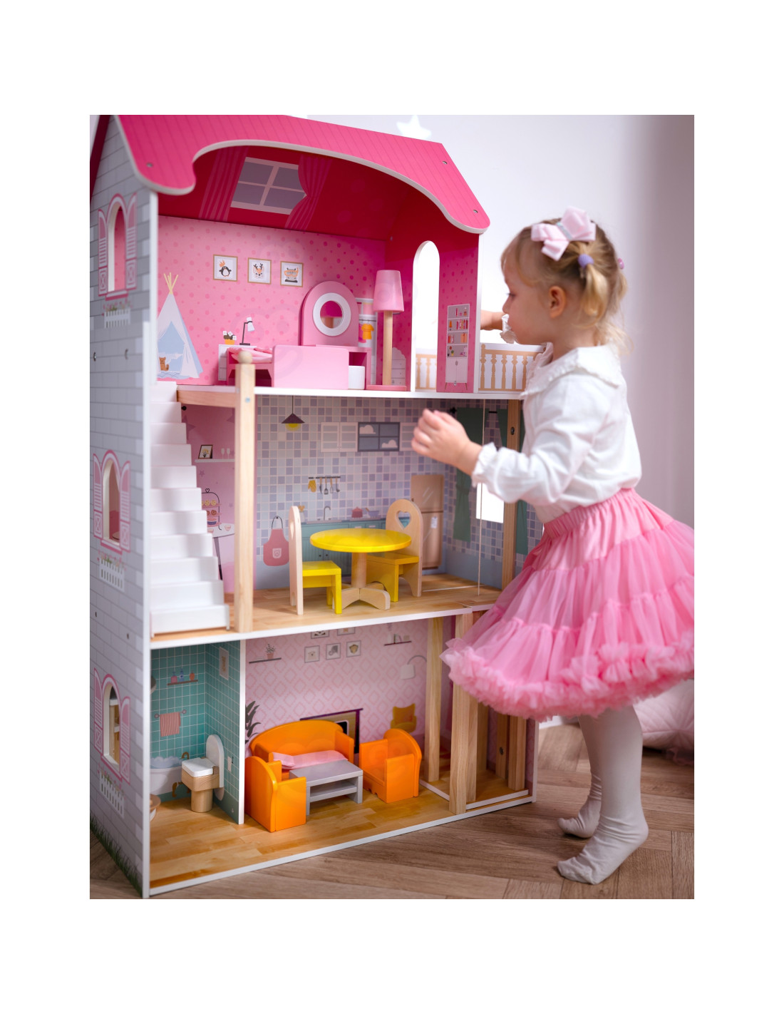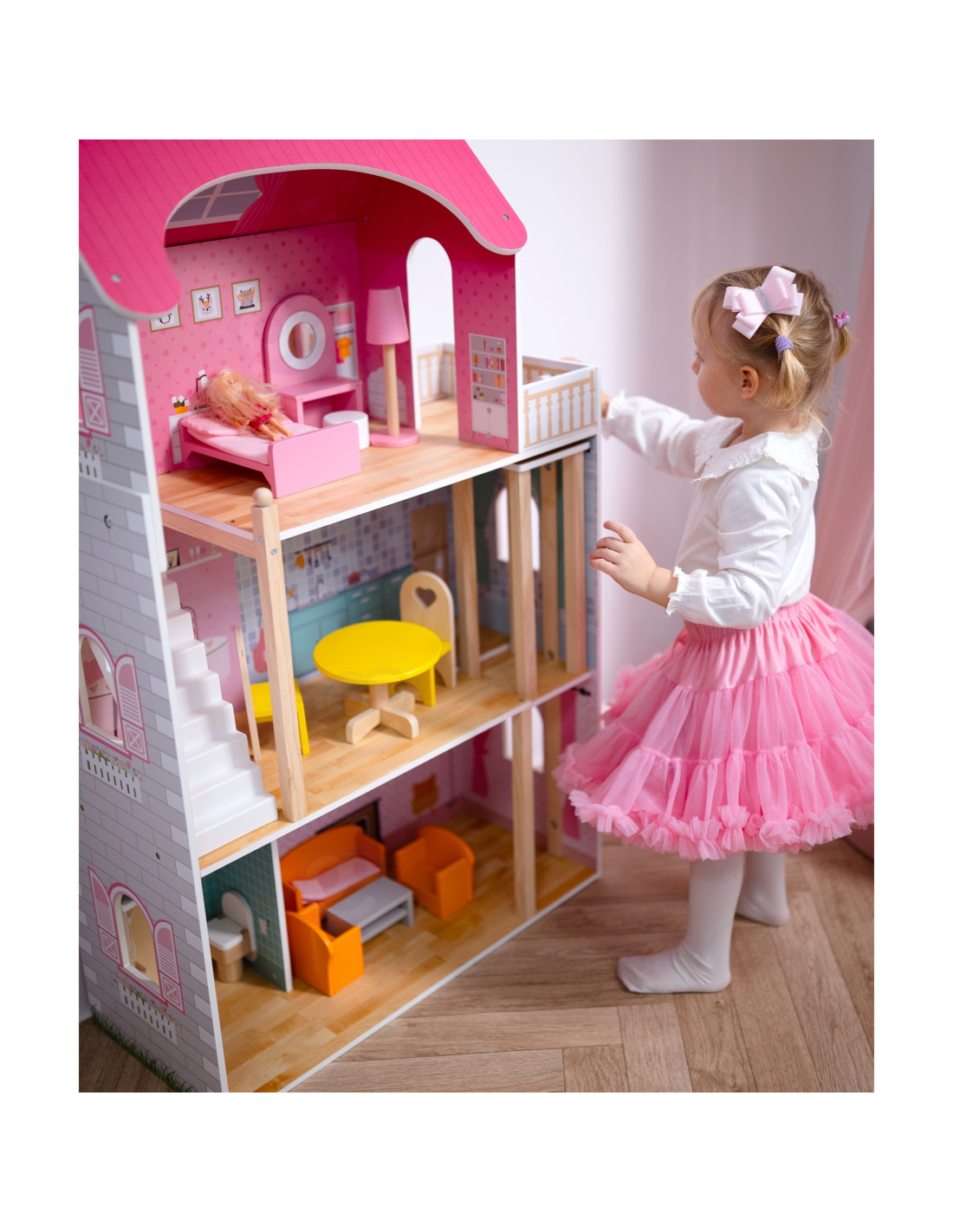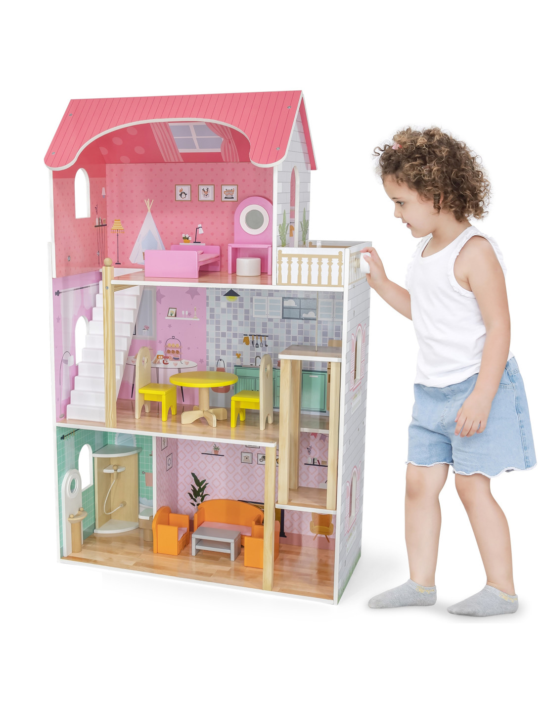 A wooden dollhouse is the perfect toy for girls. The house features multiple rooms, allowing every girl to role-play with her little dolls, figurines, or teddy bears.