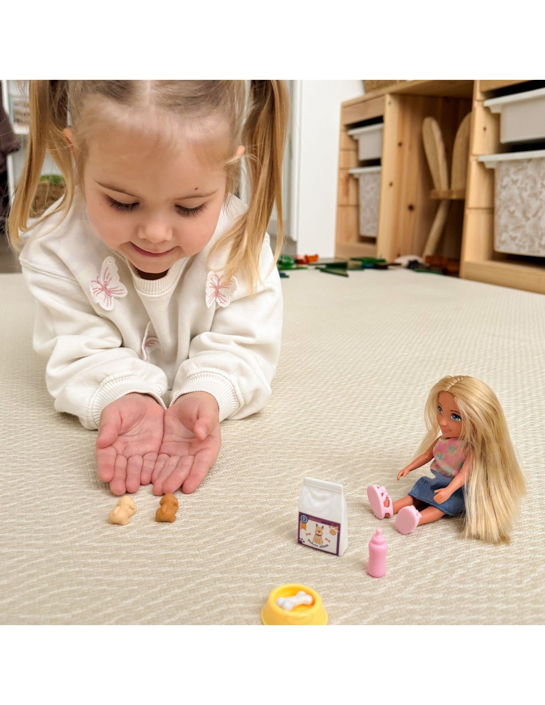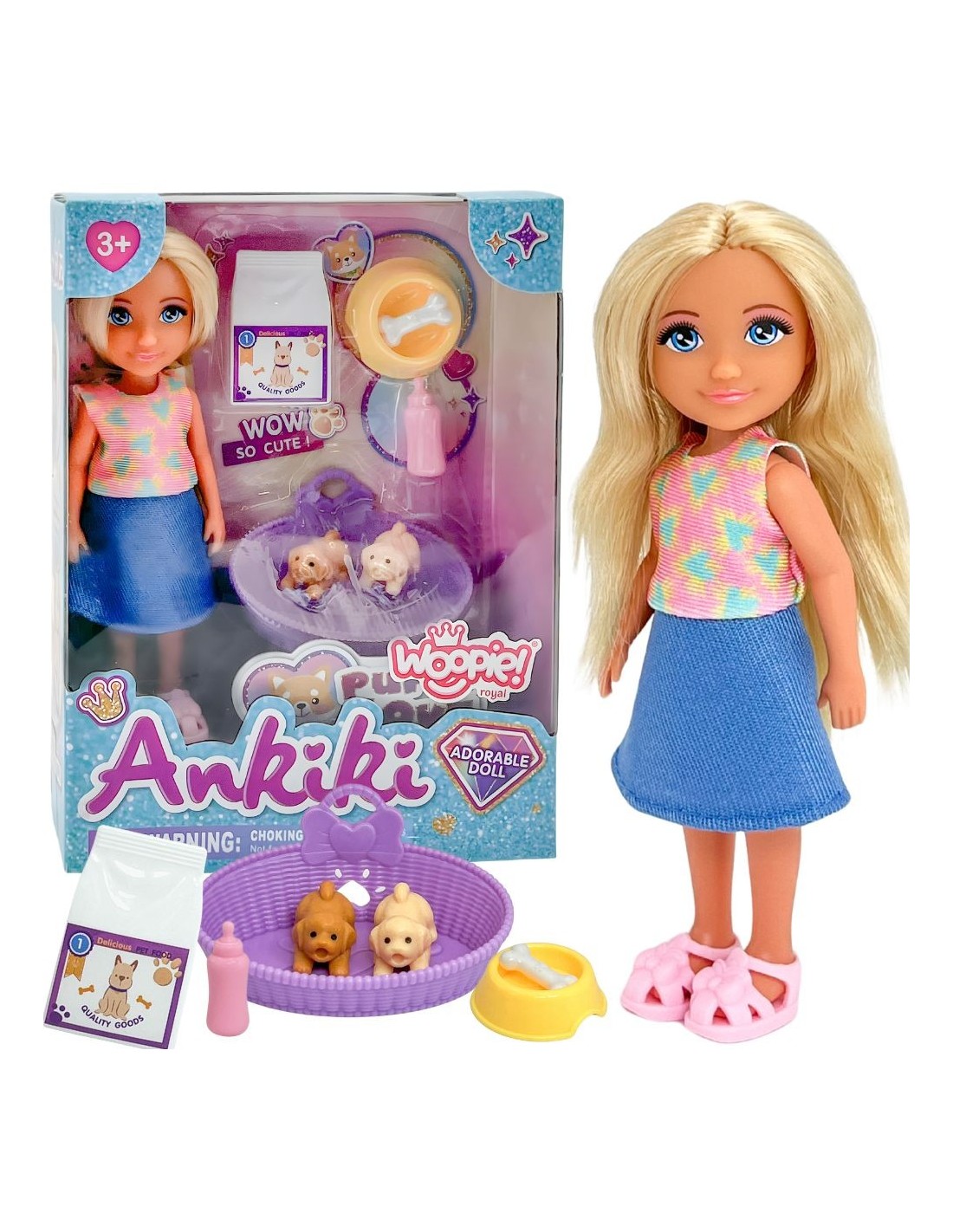 Discover the touching world of pet care with the adorable Ankiki doll and her three puppies from WOOPIE! This unique set is perfect for any little animal lover . Ankiki doll, in a fashionable outfit, is ready to care for her little pets , giving them food and a bone to play with . The entire set perfectly develops a sense of responsibility and empathy in your child. Give the gift of joy and learning through play!