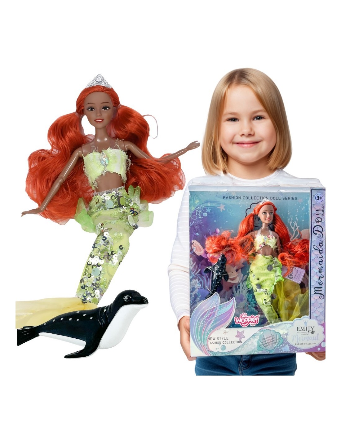 Immerse yourself in a magical underwater world with the EMI Mermaid doll! This charming mermaid, with long, flowing red hair and a sparkling tail fin, will transport any child to a fairytale ocean world. This doll delights with attention to detail – from her fashionable styling to her nautical-themed accessories. Perfect for little dreamers who love stories of mermaids, friendship, and magic. A great gift idea for girls aged 3+!