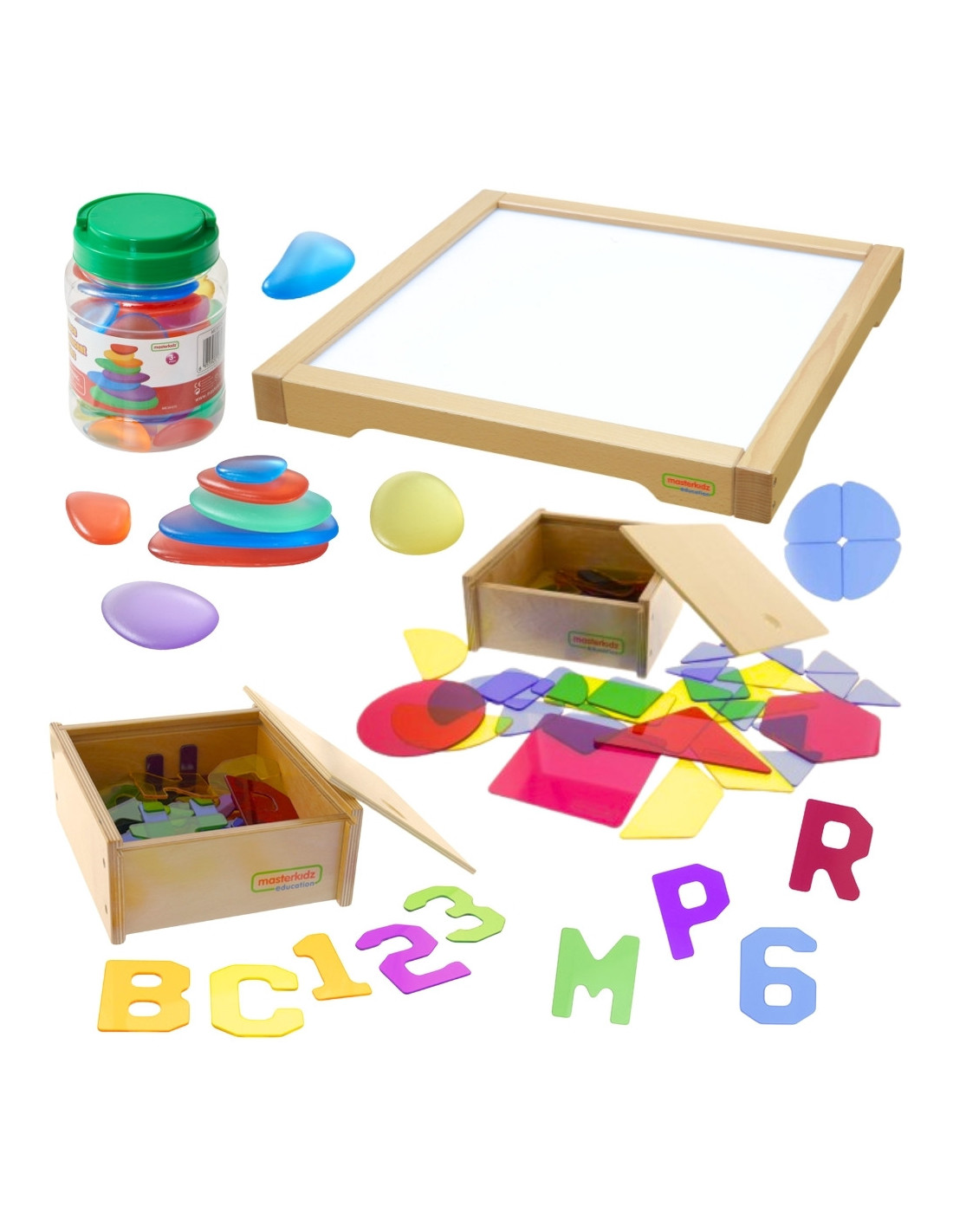 The Masterkidz LED Sensory Box Panel is a sturdy, wooden box with white LED illumination, designed by the renowned Masterkidz brand. It enables a variety of creative activities, such as color mixing and STEM learning. Eye-catching effects are achieved when light penetrates various materials—leaves, paper, a tray of sand, or clear water. The panel works perfectly with the included colorful accessories, which enhance play and learning opportunities, allowing for the creation of diverse patterns and compositions in light.