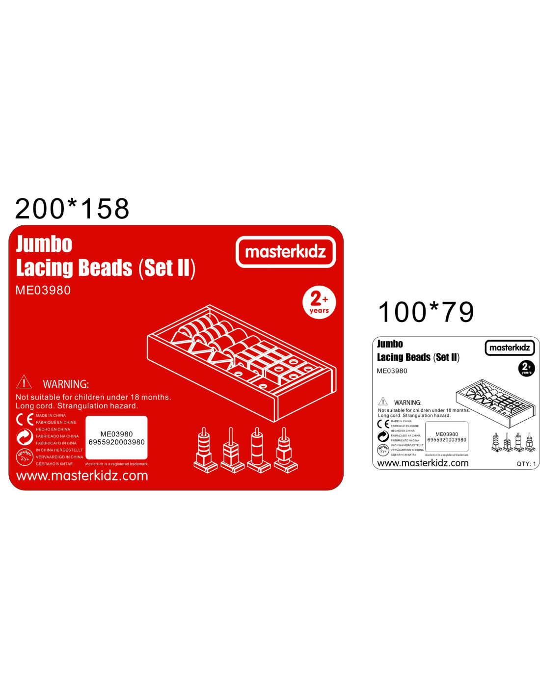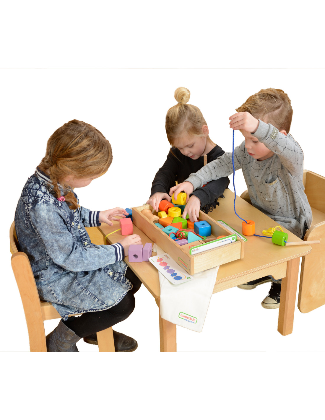 The Masterkidz Lacing Set is a set of various, colorful beads and strings. It is one of three available Masterkidz lacing sets. It can be combined with the other two sets for even more fun and variety.