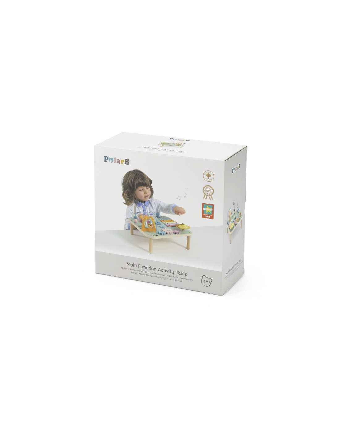 This wooden activity table from Viga is a top-of-the-line toy that will last a long time and provide your child with many years of engaging and creative play. The table is large enough for multiple children to play simultaneously. This colorful activity table is visually appealing and encourages play. The table features motor loops, a xylophone, a gong, a shape sorter, a slider, and gears.