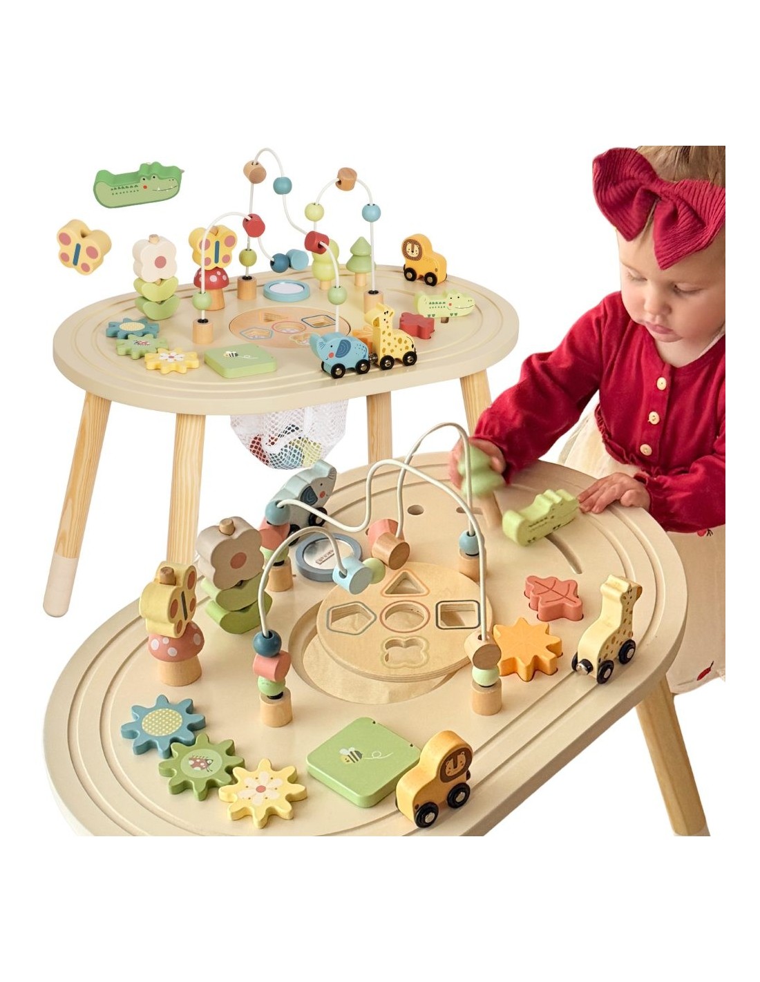 - - Concentration and independence: The table encourages independent play, teaching the child to focus on the activities being performed.