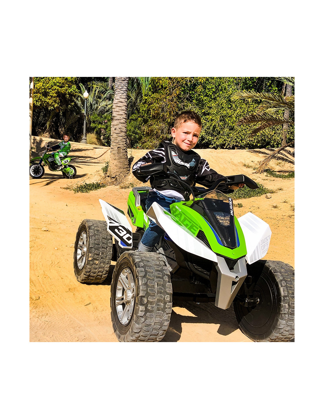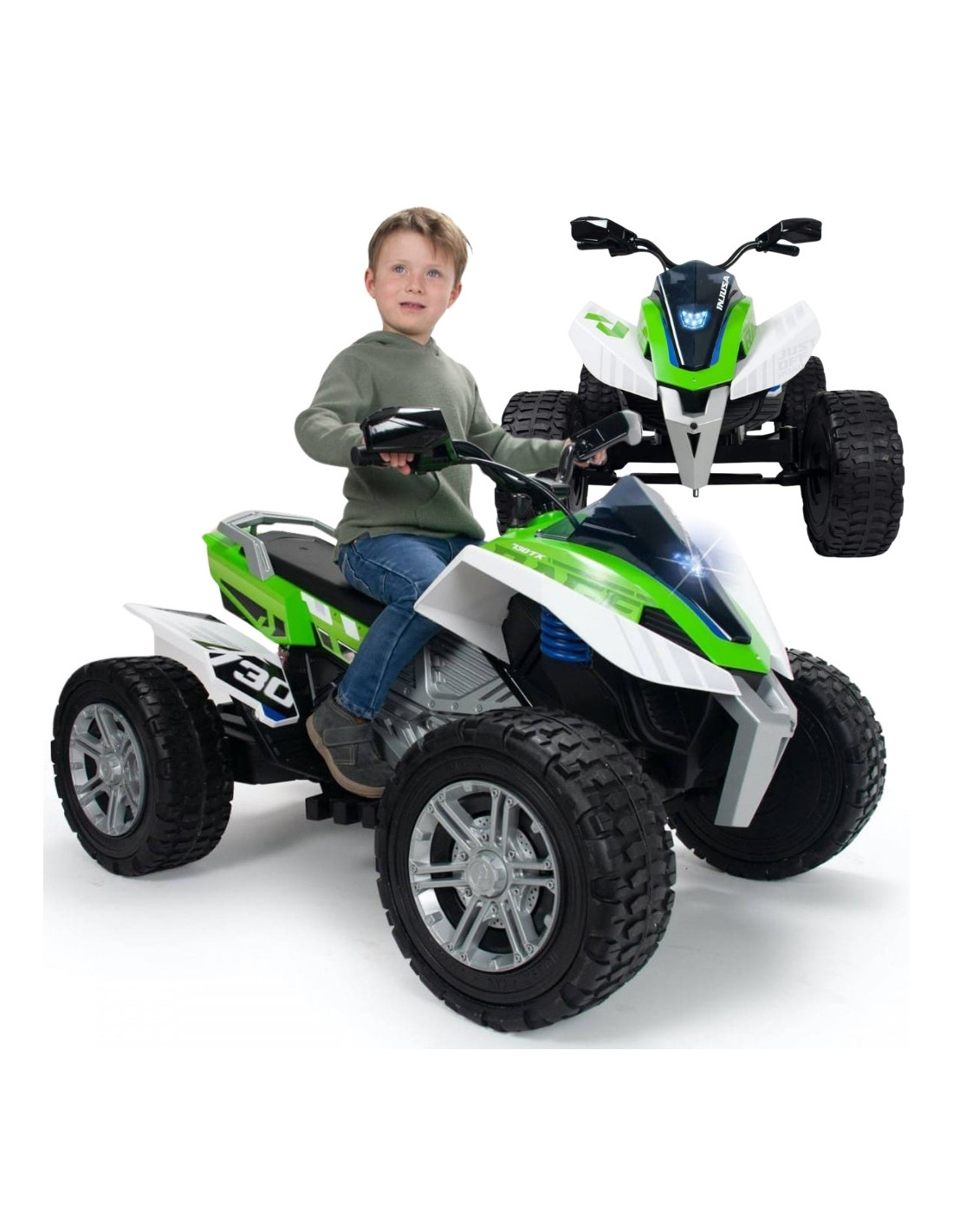 The electric Quad Rage from Spanish electric vehicle manufacturer INJUSA is the perfect choice for adrenaline-loving children aged 6 and up . Its wide wheels provide excellent stability , while its rubber tread ensures excellent traction and a comfortable ride on various surfaces. A 24V battery powers speeds of up to 11 km/h.