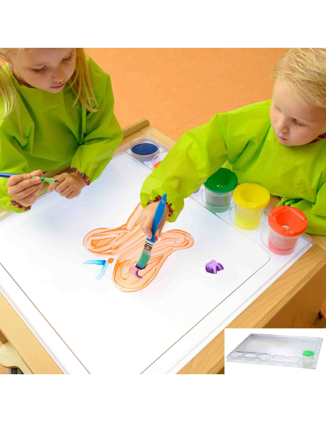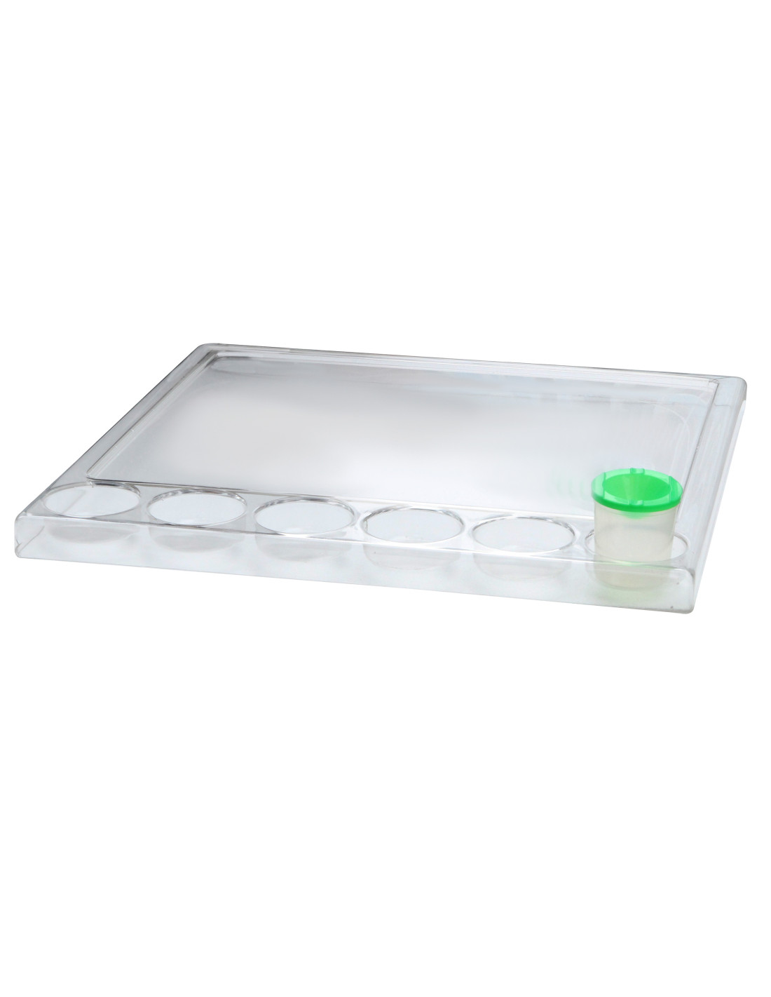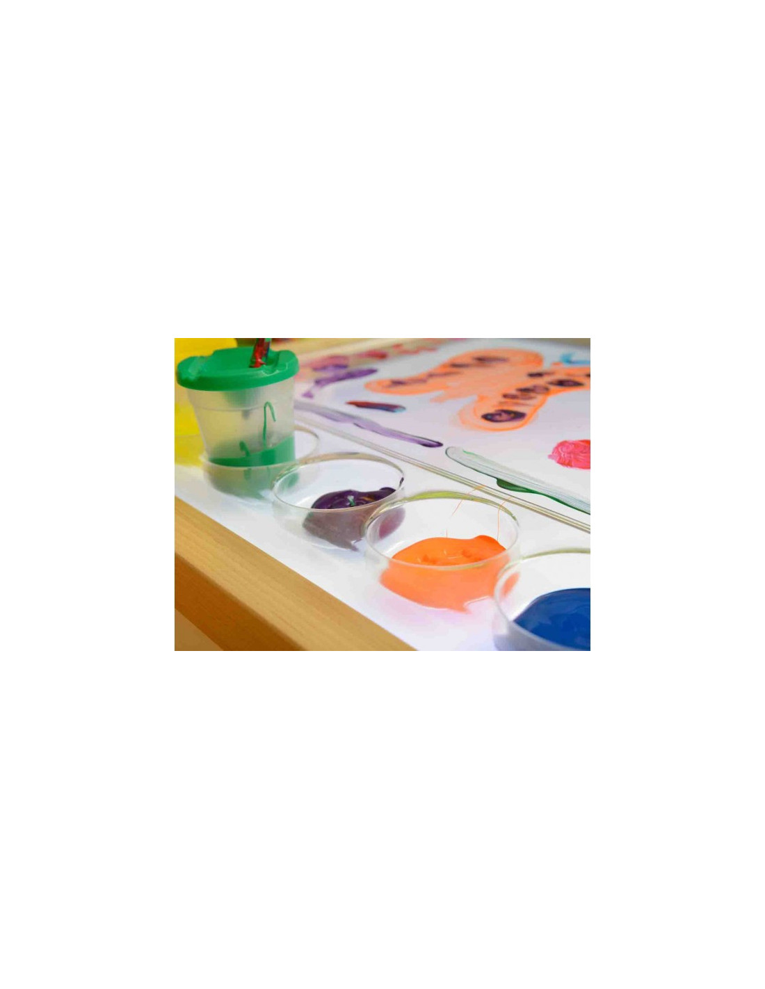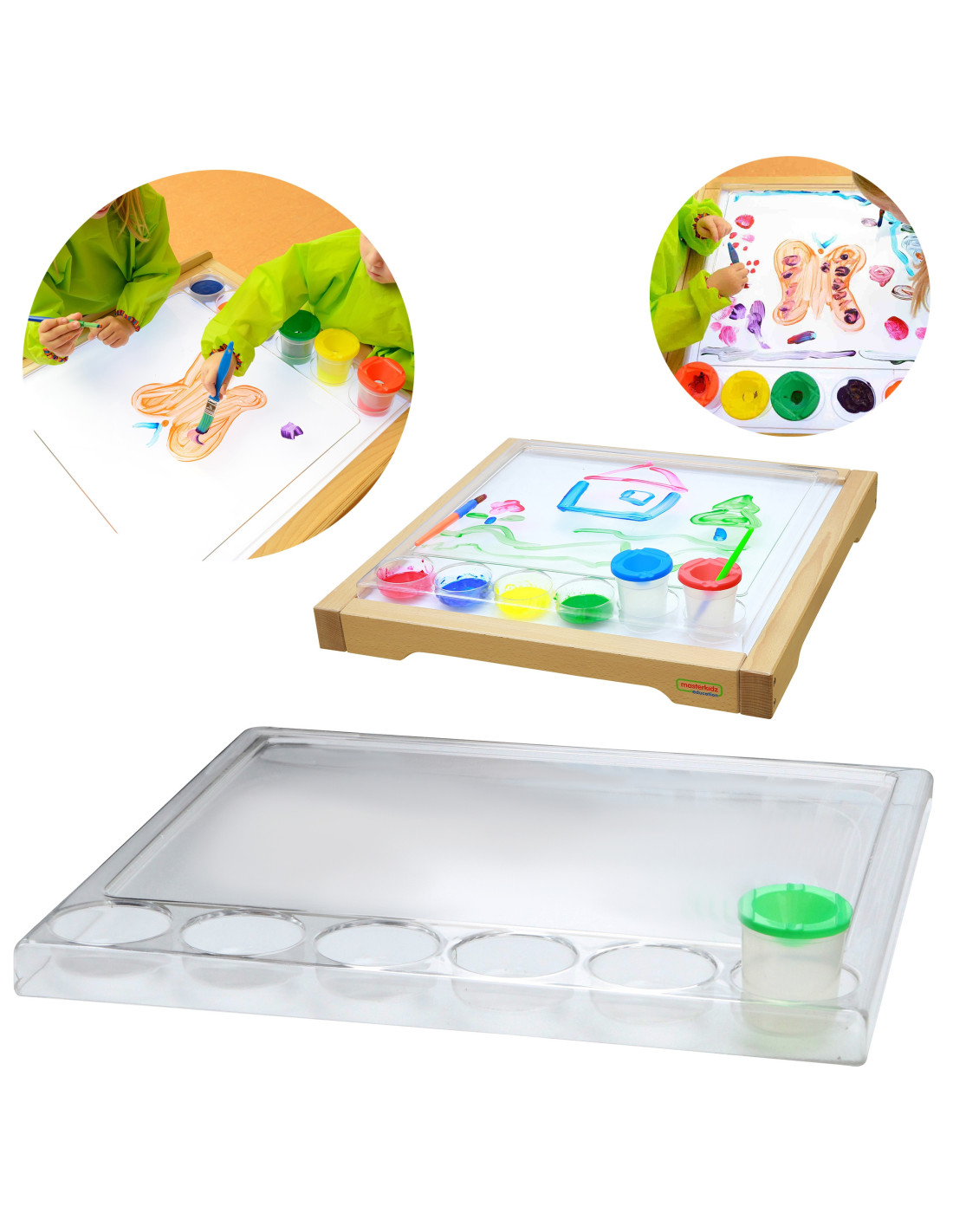 A transparent polycarbonate painting tray designed for children who love creative play. Amazing visual effects can be achieved by illuminating their colorful creations with an LED panel. Finger painting, adding color to water, creating whimsical streaks, and many other activities offer creative play opportunities that develop skills and imagination.