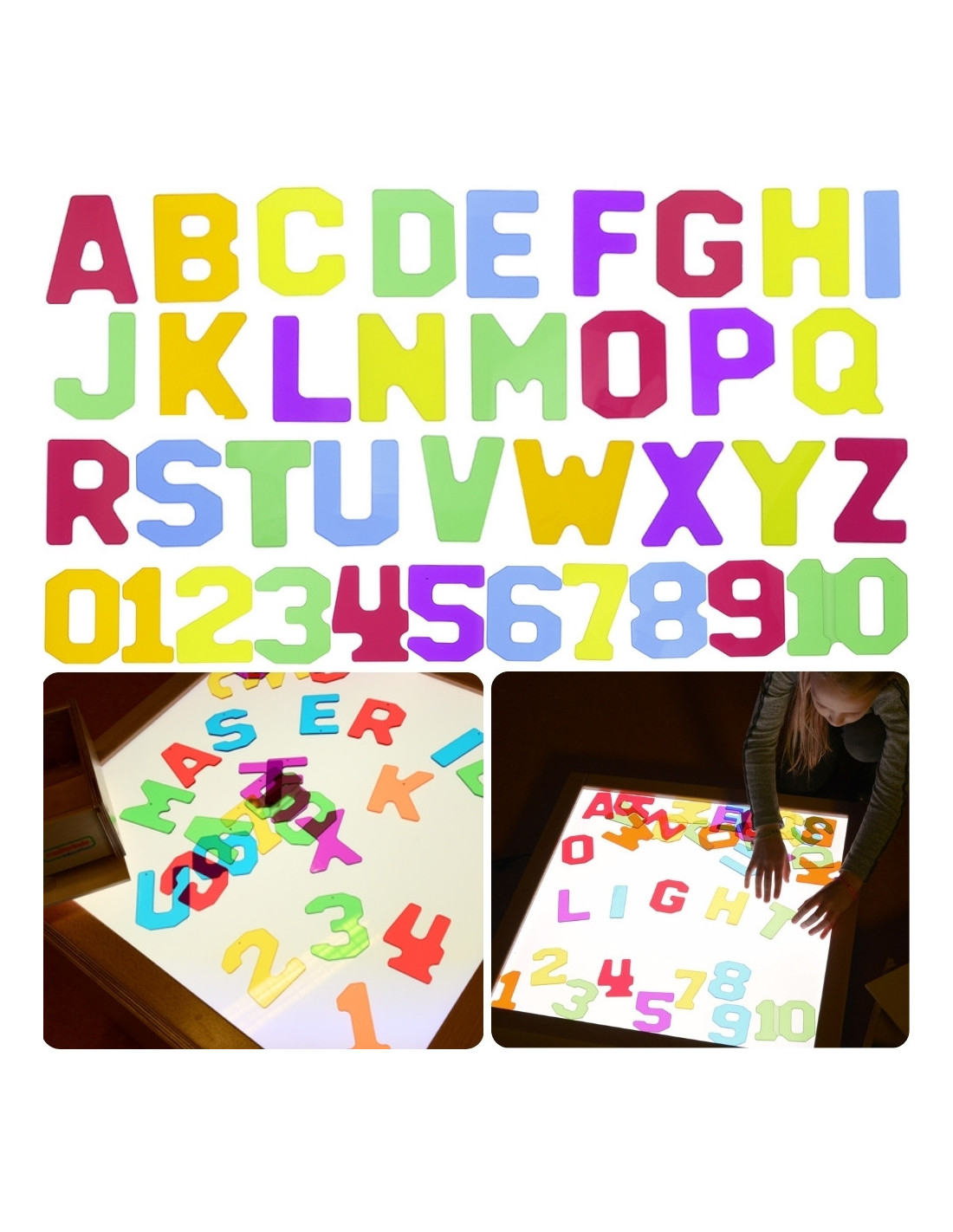 - - The set includes 38 transparent, colorful letters and numbers
