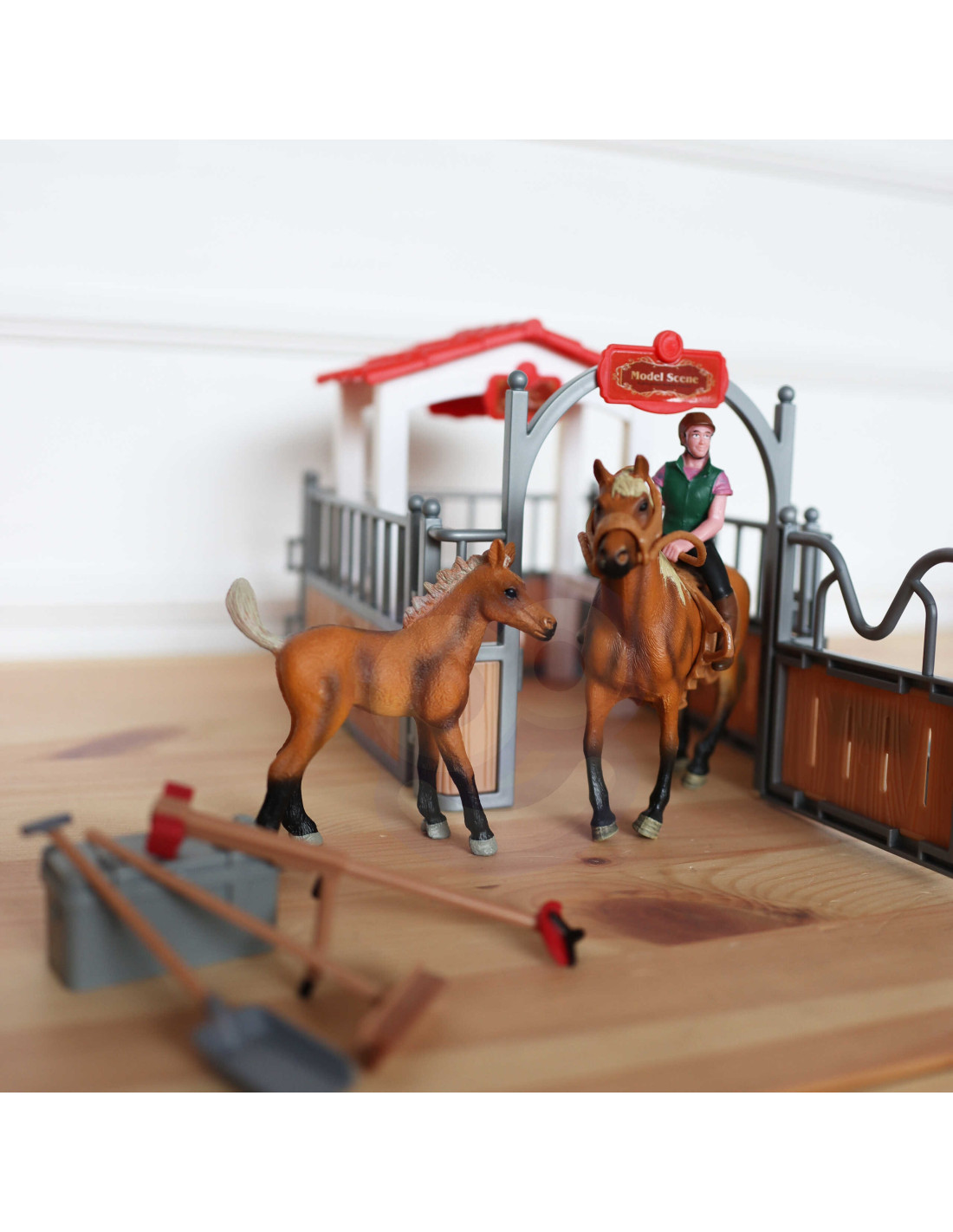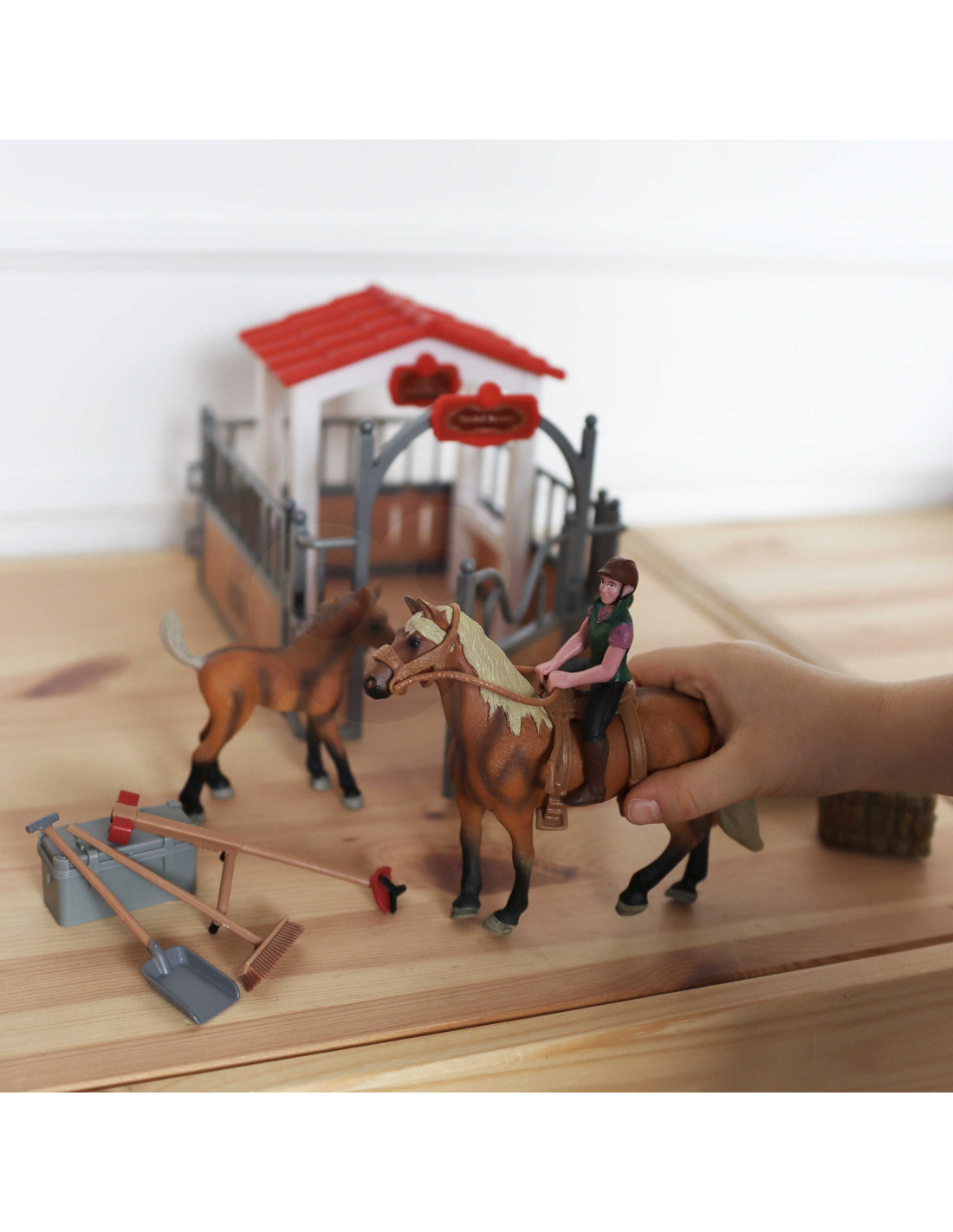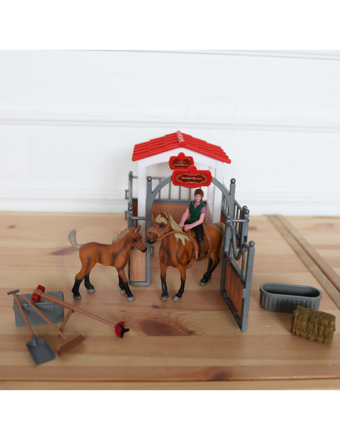 The Stable Set from WOOPIE is the perfect toy for any fan of country life. In addition to the fantastic stable, the set includes two horse figurines , a jockey, hay, and various accessories. The stable has a classic look and is perfectly recreated , and the elements themselves are very durable . Playing in the horse stables will expand your little one's imagination and creativity.