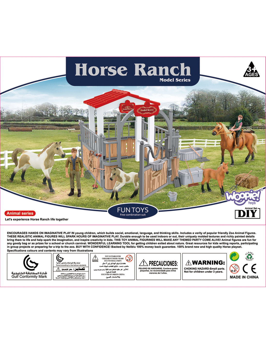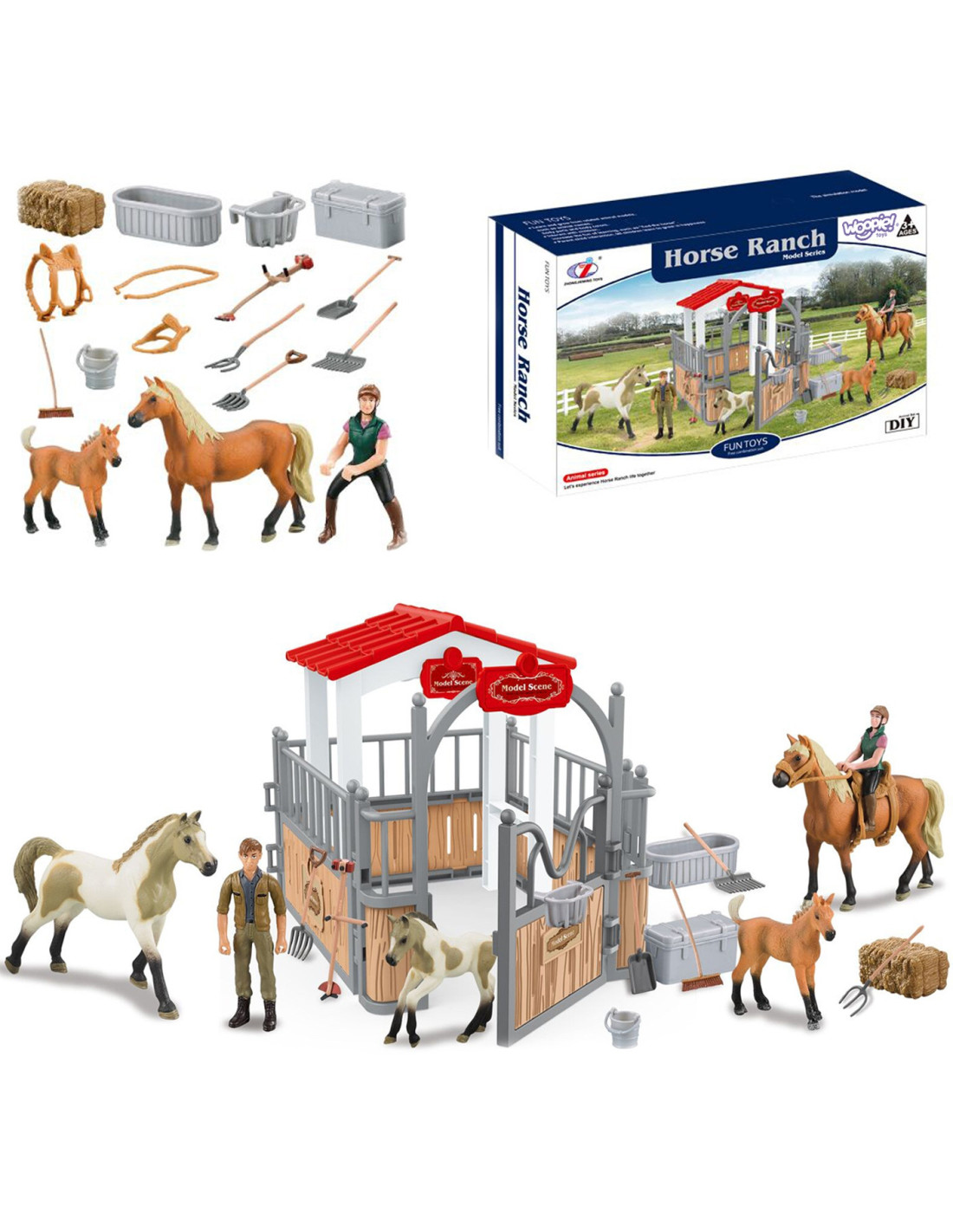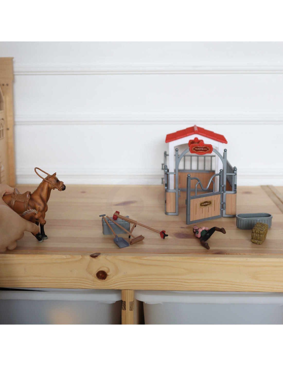 The Stable Set from WOOPIE is the perfect toy for any fan of country life. In addition to the fantastic stable, the set includes two horse figurines , a jockey, hay, and various accessories. The stable has a classic look and is perfectly recreated , and the elements themselves are very durable . Playing in the horse stables will expand your little one's imagination and creativity.