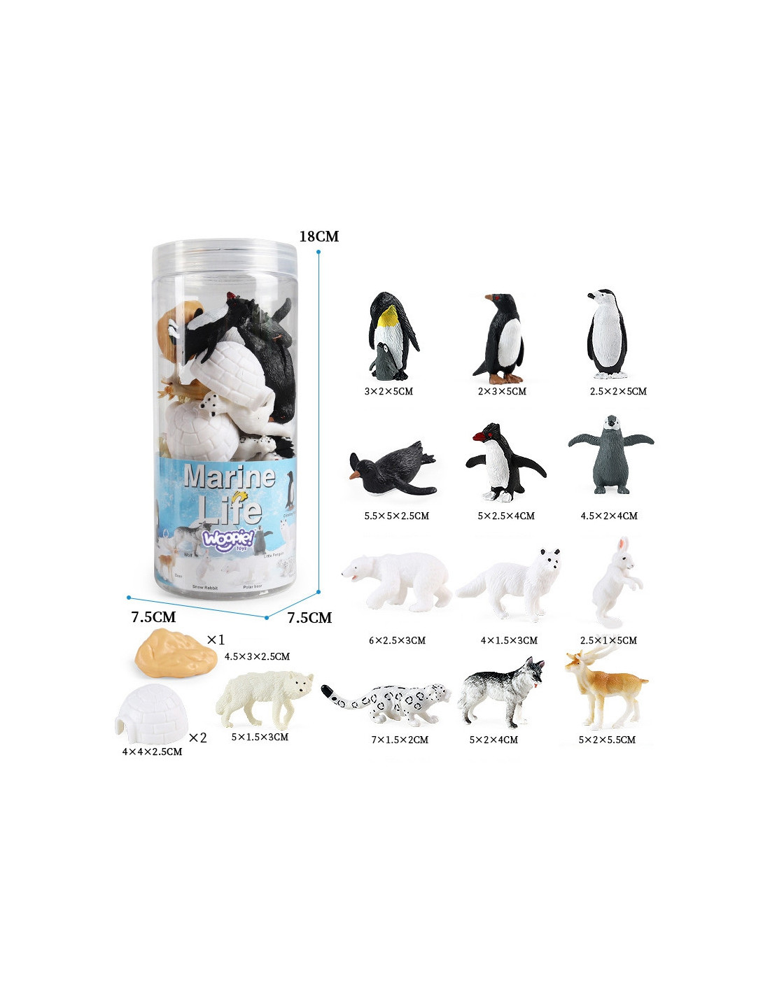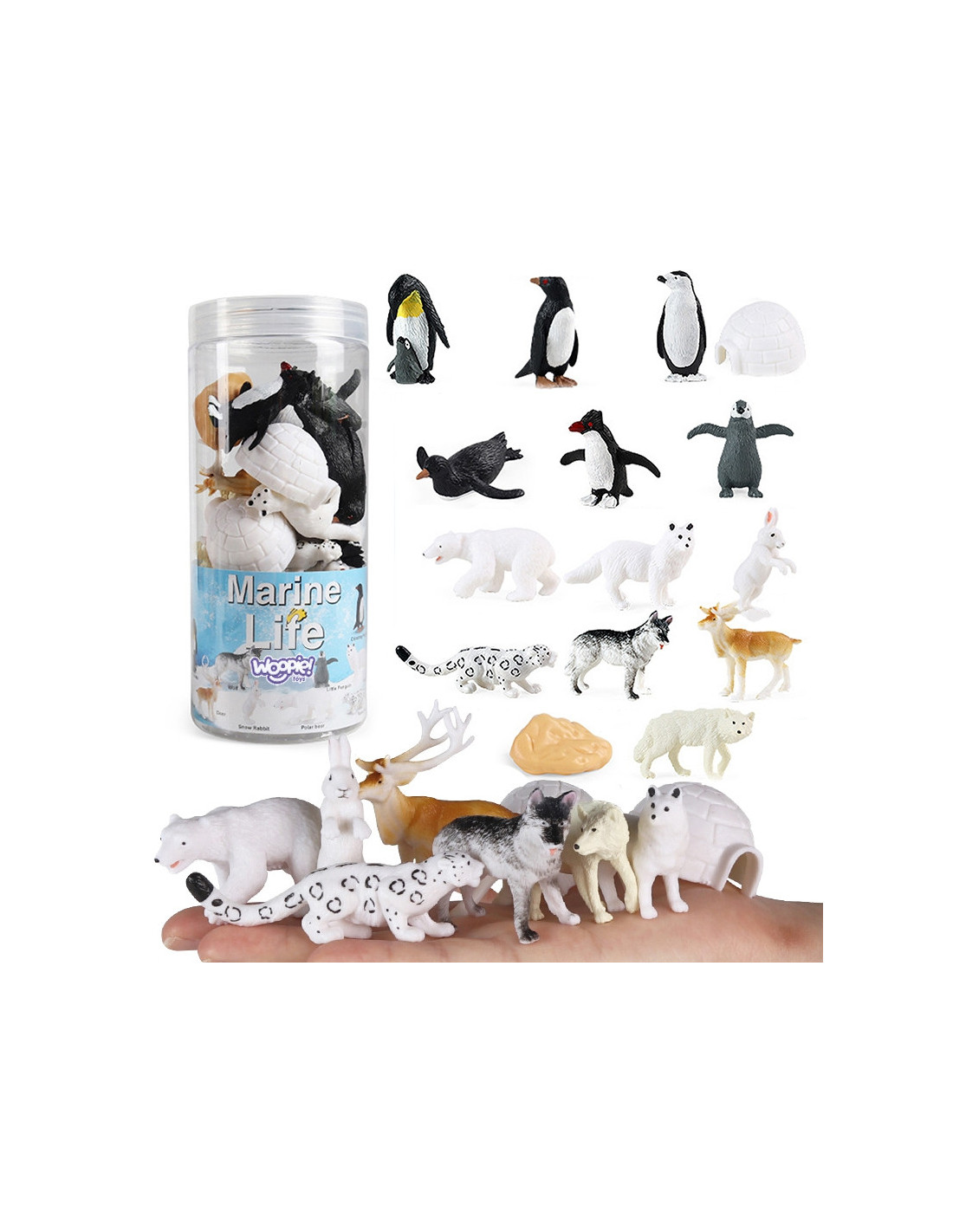 The WOOPIE Figurine Set is the perfect set for any fan of Arctic animals. The set includes 13 Arctic animals , two igloos, and a rock. These realistic- looking figurines will enhance a young collector's collection, serve an educational purpose , and provide fun that will expand the scope of your child's imagination and creativity.