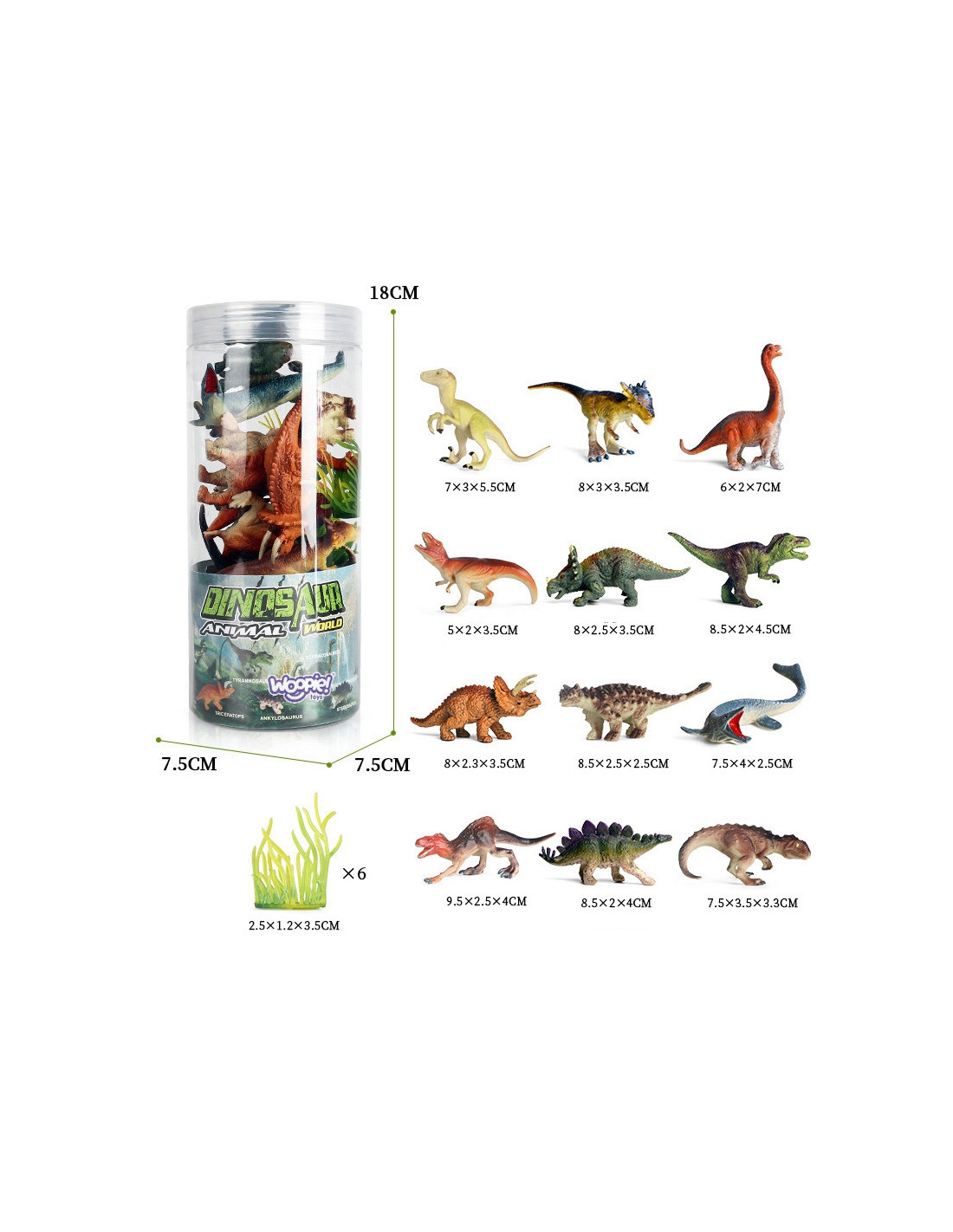 The WOOPIE Figurine Set is the perfect set for any animal fan. The set includes 12 dinosaurs and 6 other animals. These realistic-looking figures will enhance a young collector's collection , serve an educational purpose , and provide fun that will expand the scope of your child's imagination and creativity.