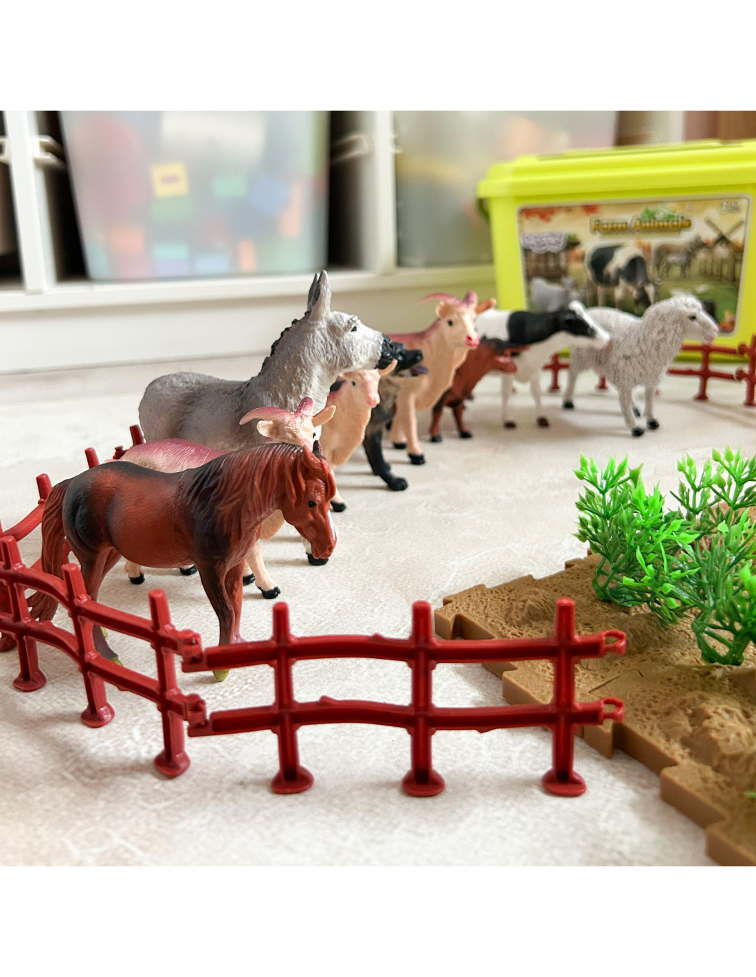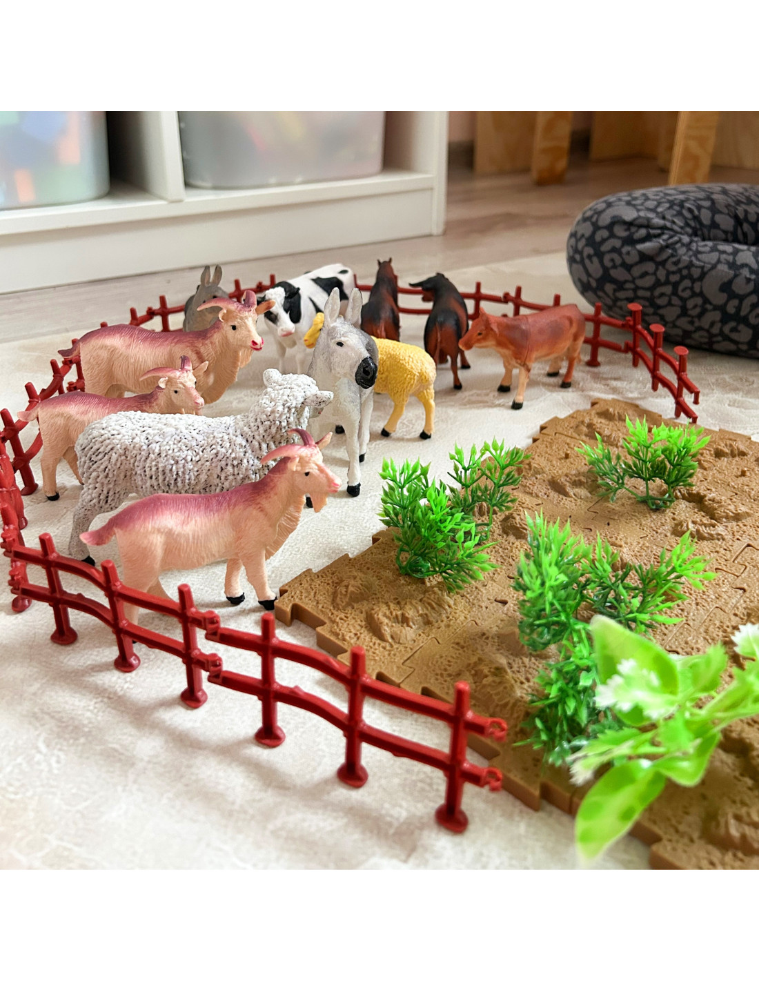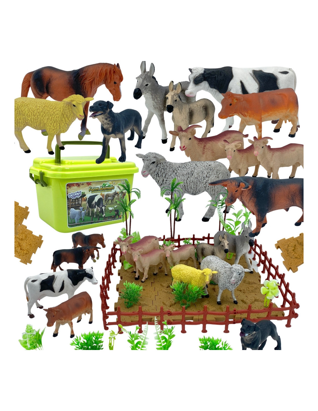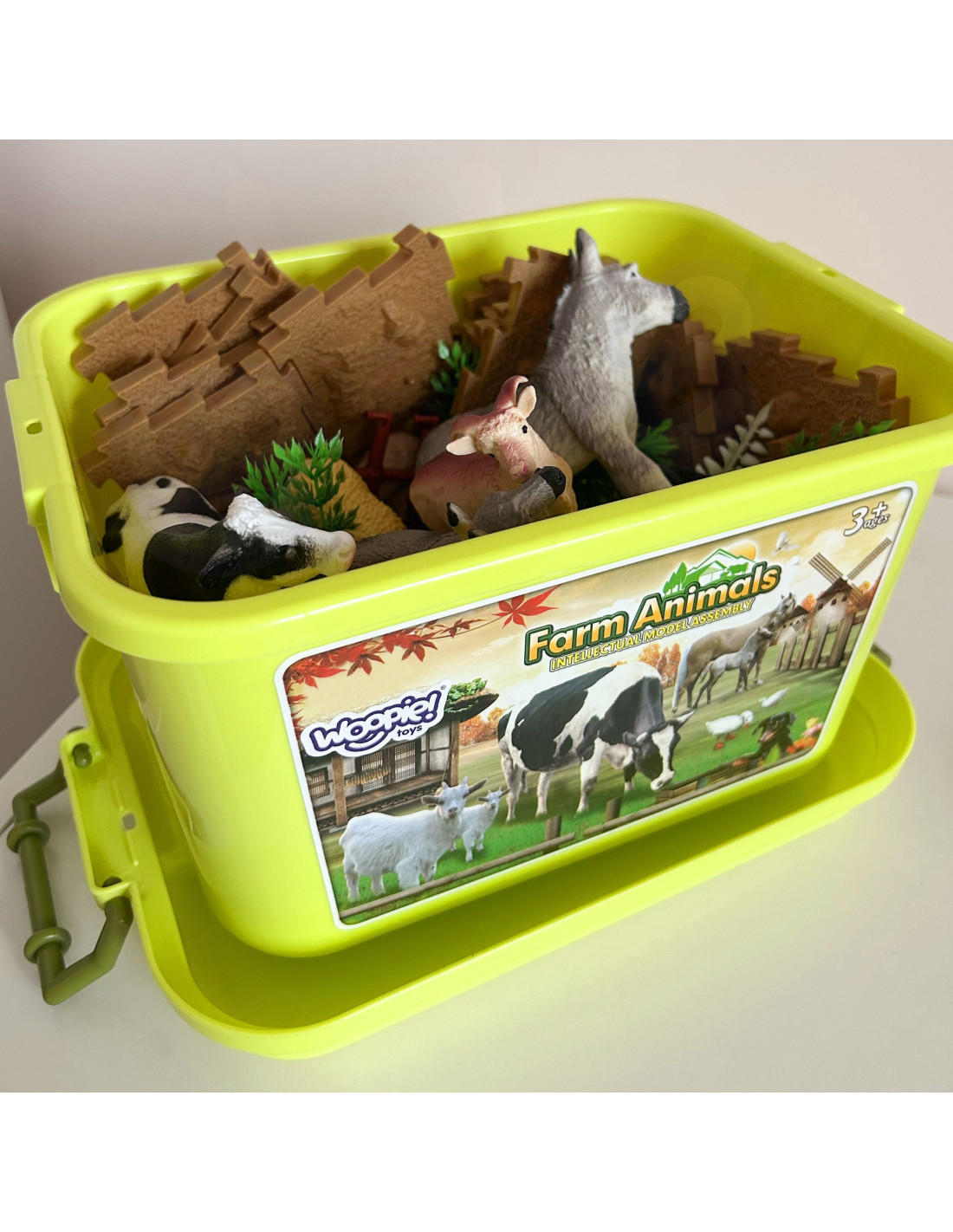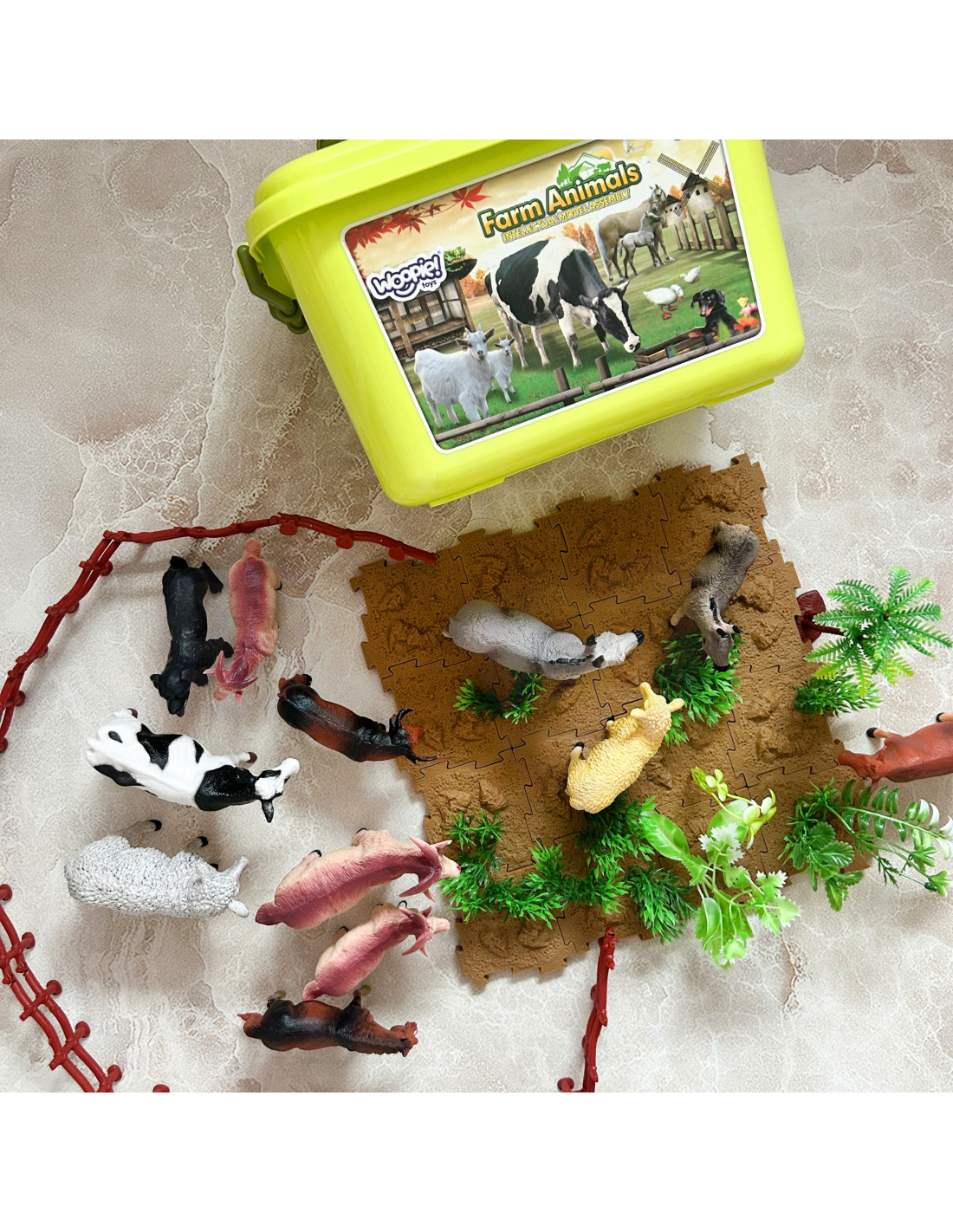 The Farm Figurine Set from WOOPIE is a great gift idea for young animal lovers. The set includes 12 diverse, realistically reproduced animal figurines, 44 accessories, and a chest. The set is perfect for learning through play. Children will learn to recognize animal species and name them. The set comes with a practical chest with a convenient handle, which allows not only for quick cleanup but also for taking it on trips. These realistic-looking figurines will expand a young collector's collection, fulfill an educational function , and provide fun that will expand the scope of your child's imagination and creativity.
