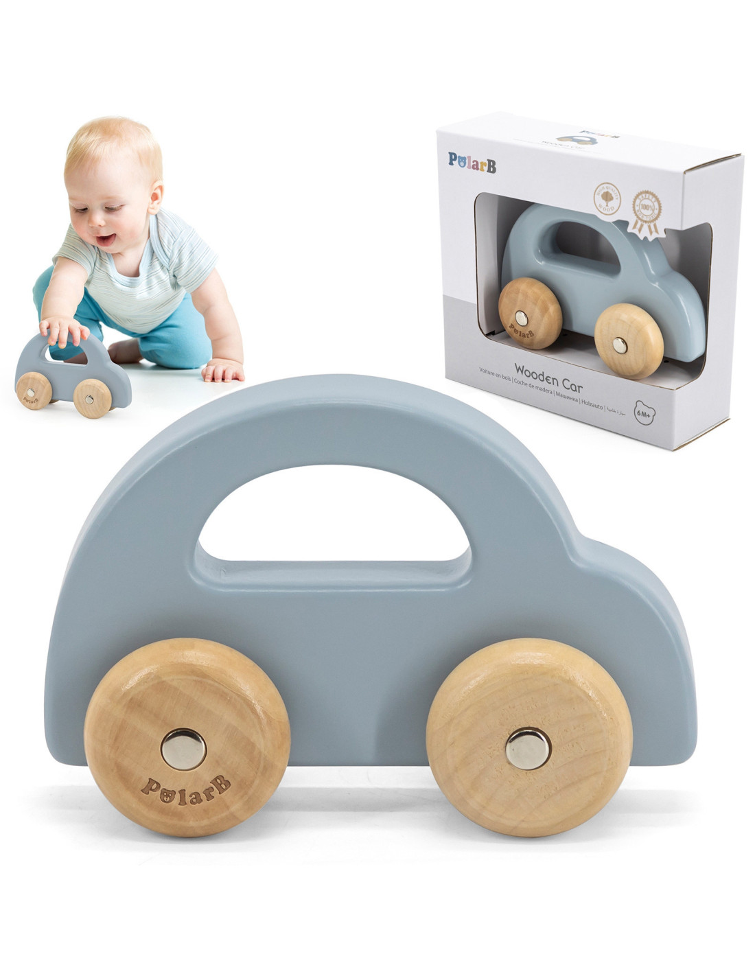 The Wooden Push Car from VIGA will be your child's first favorite vehicle. The car has a simple, pastel design that your child will surely love. It's easy and comfortable for little hands to grip . It has quiet and smooth- running wheels. By pushing the car, your child will develop their manual skills, so-called "fine motor skills" – hand movements. It has rounded edges that are safe for babies.