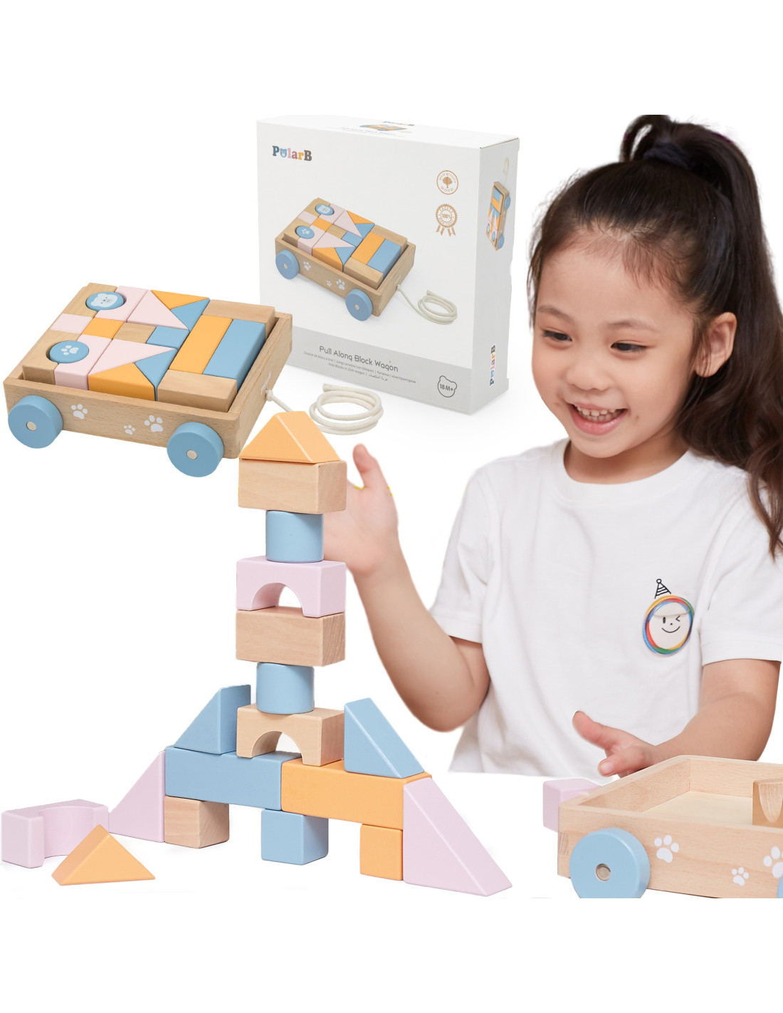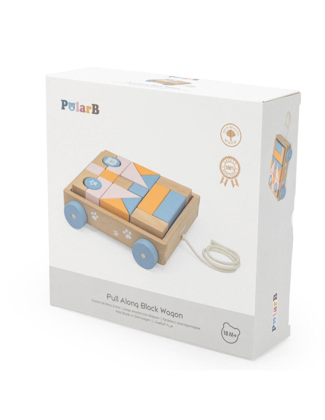 VIGA PolarB Wooden Pull Cart + Blocks 21 pcs.