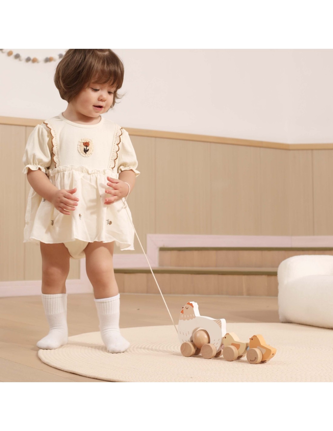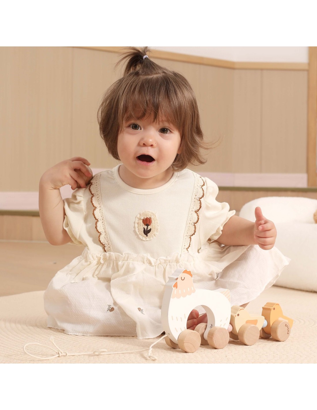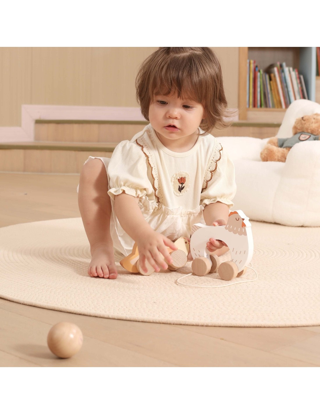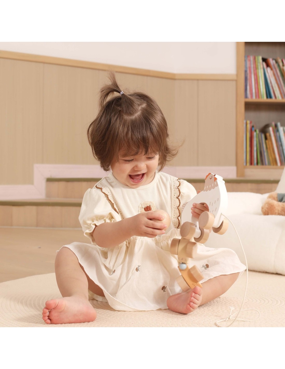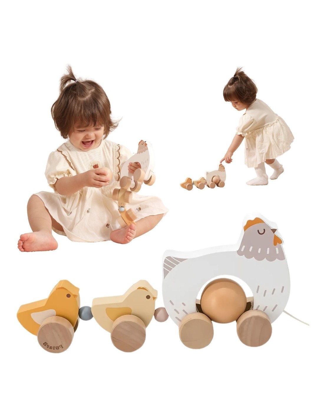 This adorable pull-along toy is the perfect companion for little ones taking their first steps. As they move, the chicks sway joyfully, and the detachable egg spins for added fun. This toy not only entertains but also helps develop baby's coordination and motor skills.