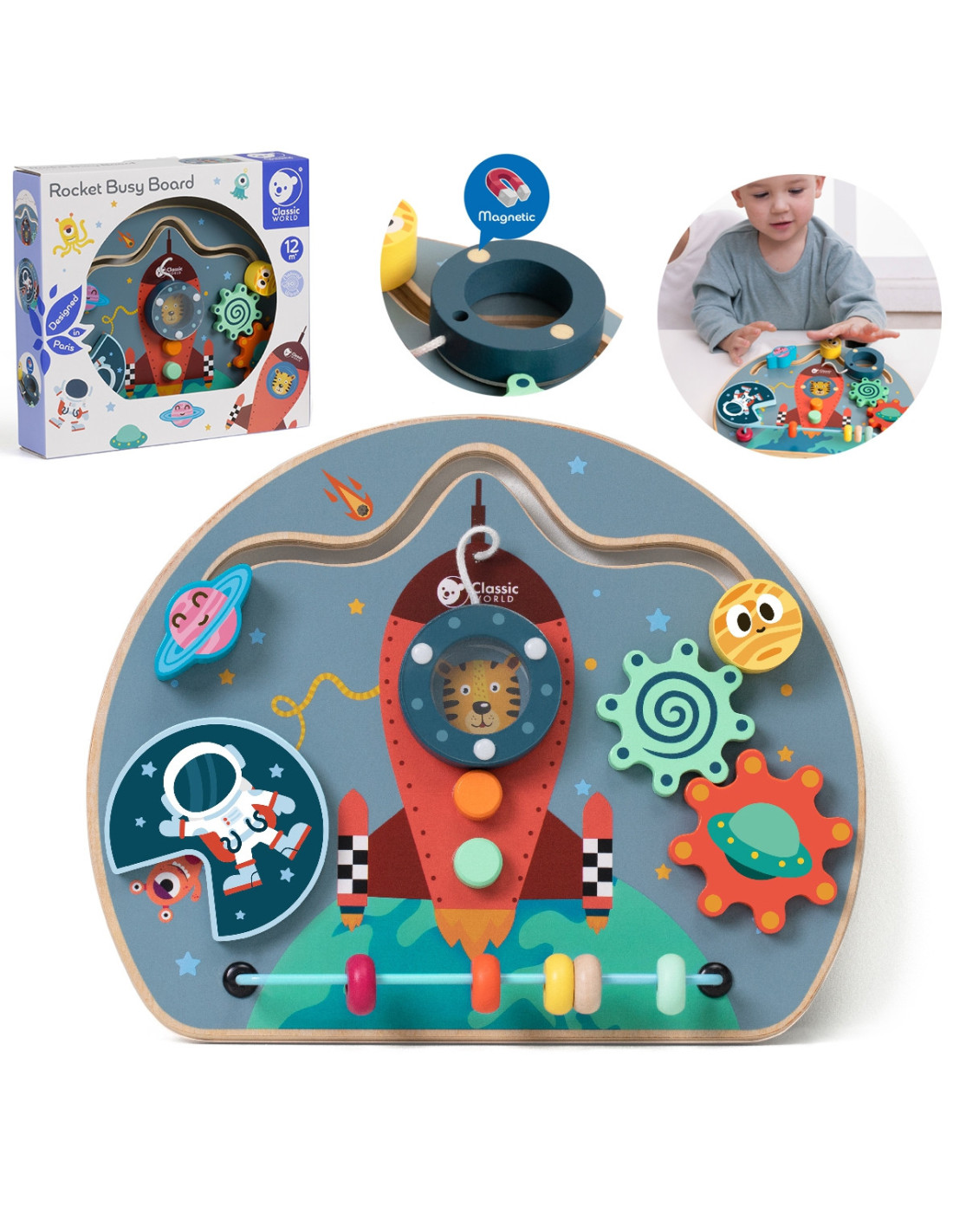 The 6-in-1 activity board from CLASSIC WORLD is the perfect toy for children. The board contains a maze , beads , a spinning wheel , buttons , a magnetic element , and knobs that will keep your little one entertained for hours. Children love imitating their parents in everyday activities, and with this toy, they'll feel like they're driving the vehicle themselves. The interesting design and numerous elements will stimulate a child's imagination and creativity , while also developing manual dexterity and coordination .