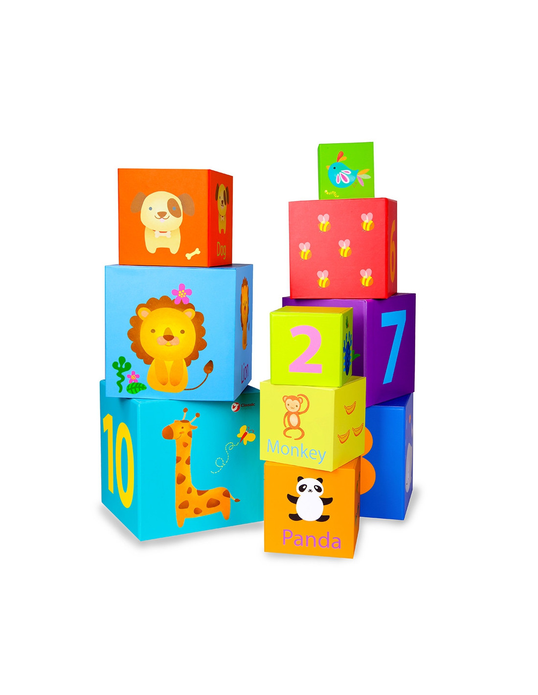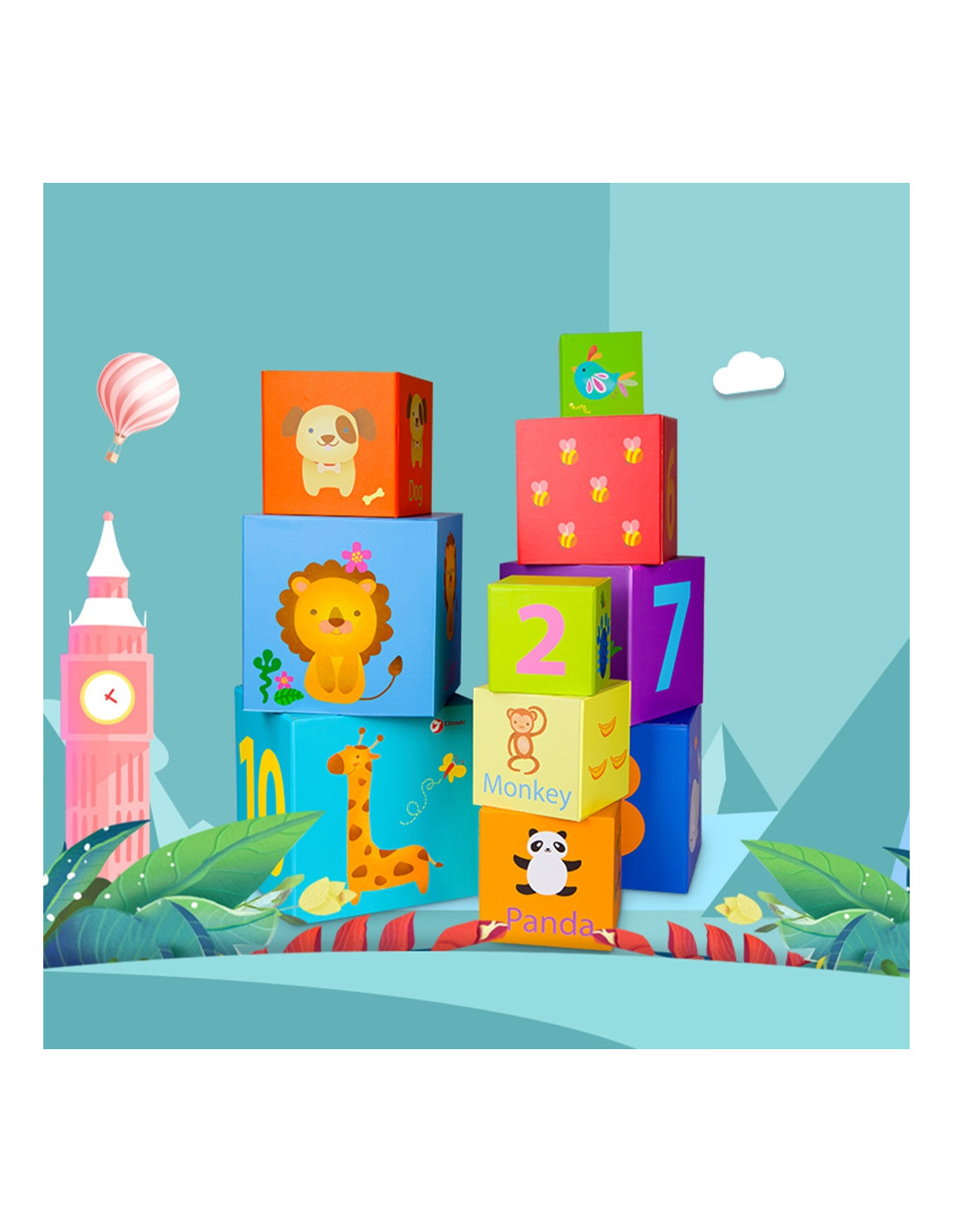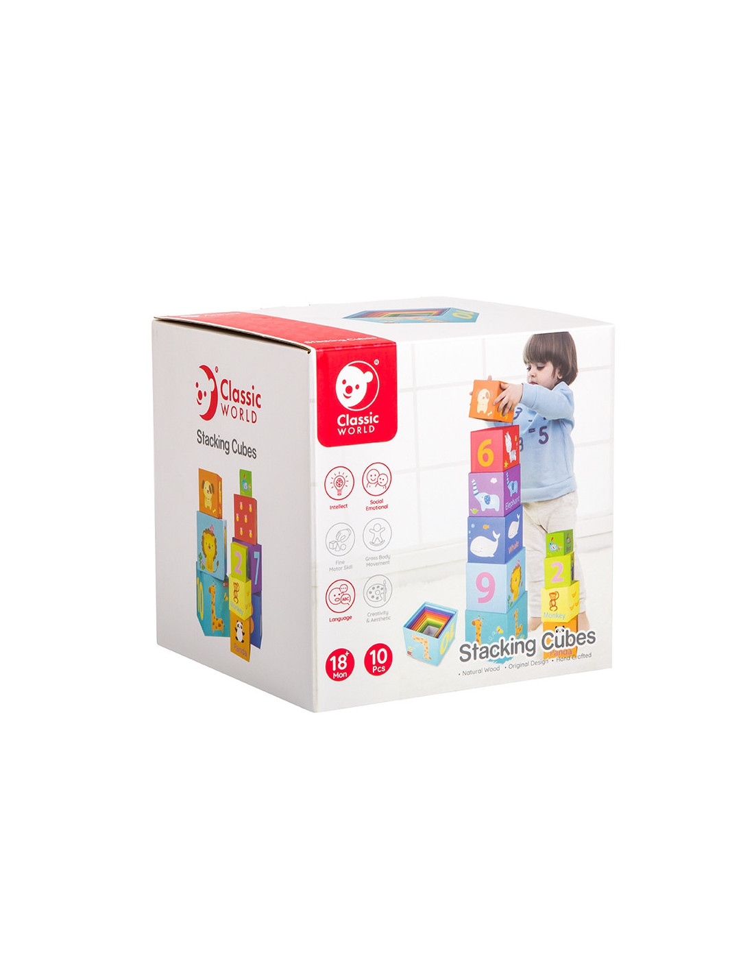 Magic Box wooden blocks from the renowned company Classic World are a fantastic toy for young children, serving as a puzzle , tower, pyramid, and a learning aid for numbers and basic English words. This colorful, unique educational toy offers fantastic, multi-player play. This toy guarantees safe, multi-level development for your little one . It entertains while simultaneously supporting a high level of perceptual and motor skills integration. It encourages correct reasoning when performing exercises, such as building a tower or placing a box into an increasingly smaller one. The aesthetic appeal of Magic Box makes it a perfect addition to a child's room, serving as a box or sorter for crayons and other small items.