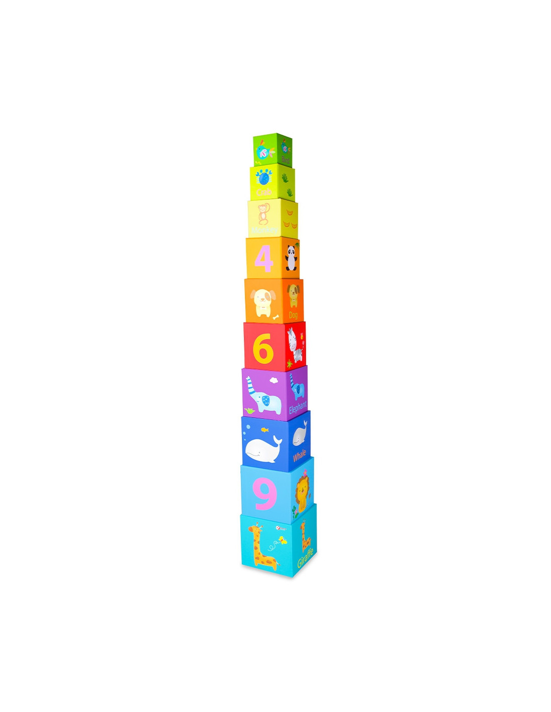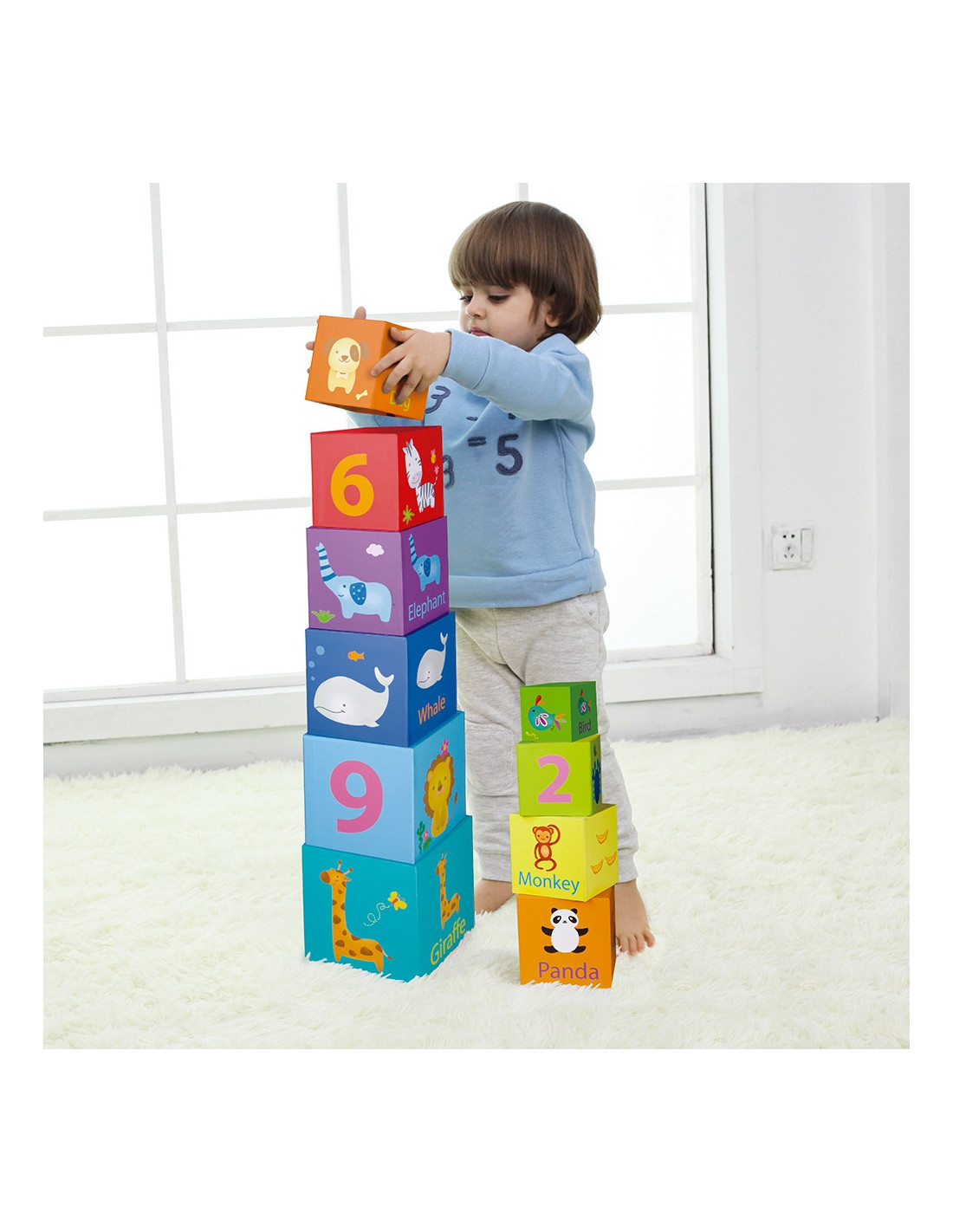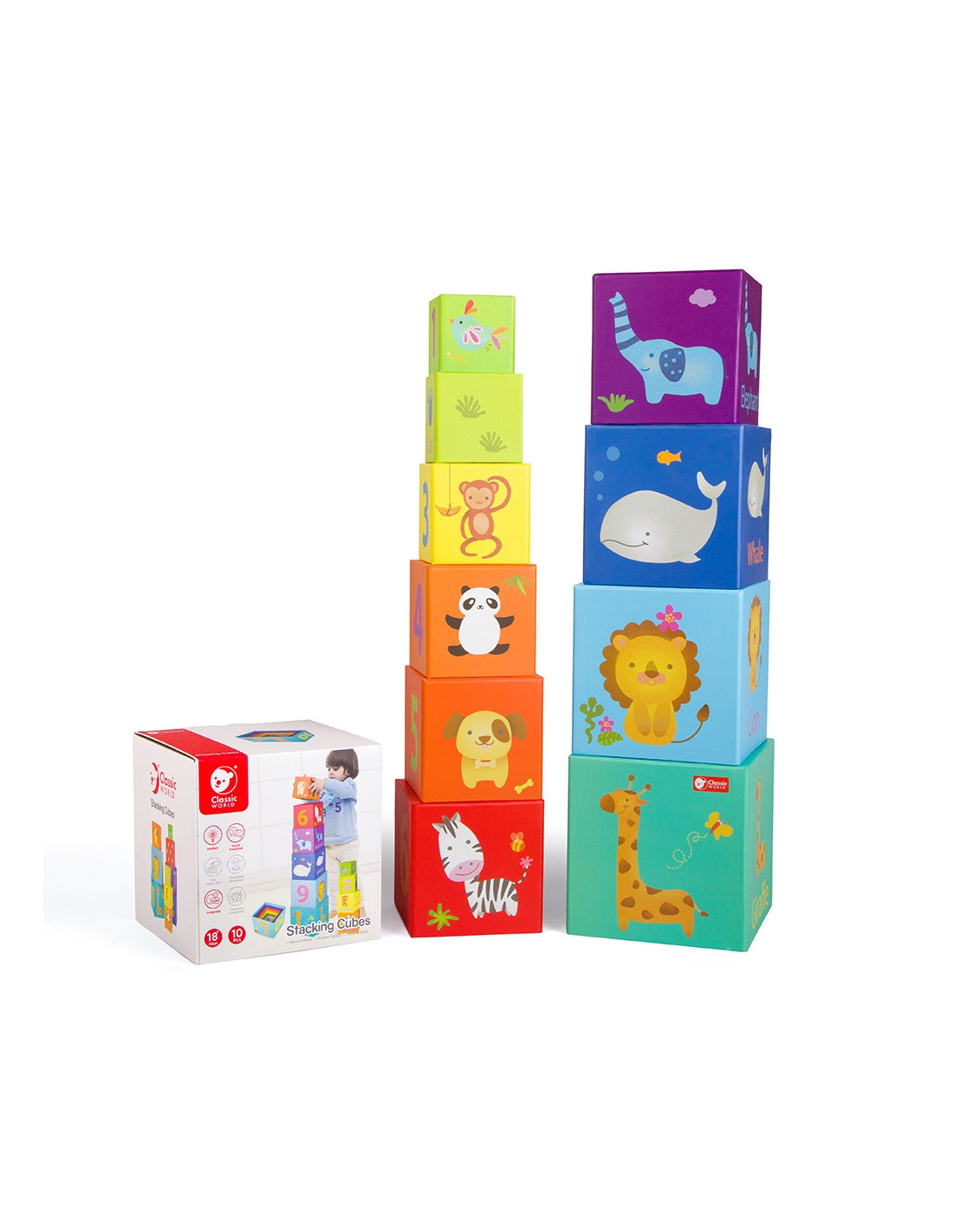 Magic Box wooden blocks from the renowned company Classic World are a fantastic toy for young children, serving as a puzzle , tower, pyramid, and a learning aid for numbers and basic English words. This colorful, unique educational toy offers fantastic, multi-player play. This toy guarantees safe, multi-level development for your little one . It entertains while simultaneously supporting a high level of perceptual and motor skills integration. It encourages correct reasoning when performing exercises, such as building a tower or placing a box into an increasingly smaller one. The aesthetic appeal of Magic Box makes it a perfect addition to a child's room, serving as a box or sorter for crayons and other small items.
