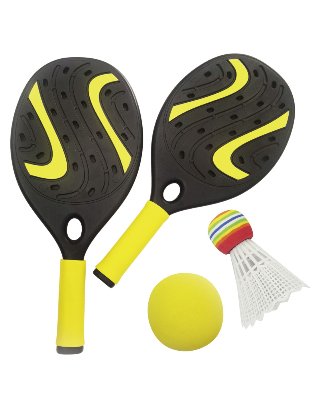 This WOOPIE racket set is a great way to spend your time actively on warm days. Beautiful design and high quality guarantee fun! The set includes two durable rackets, a soft foam ball, and a shuttlecock – so you can play a variety of sports games with your WOOPIE rackets! For convenient transport and storage, the set comes packaged in a high-quality, zippered case.