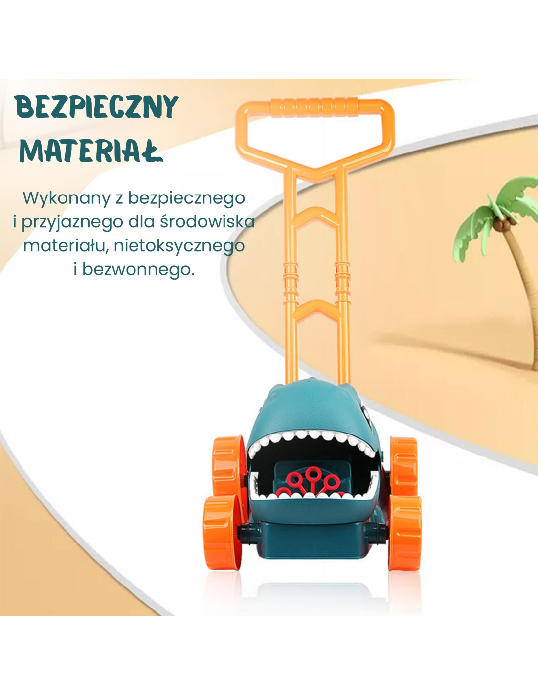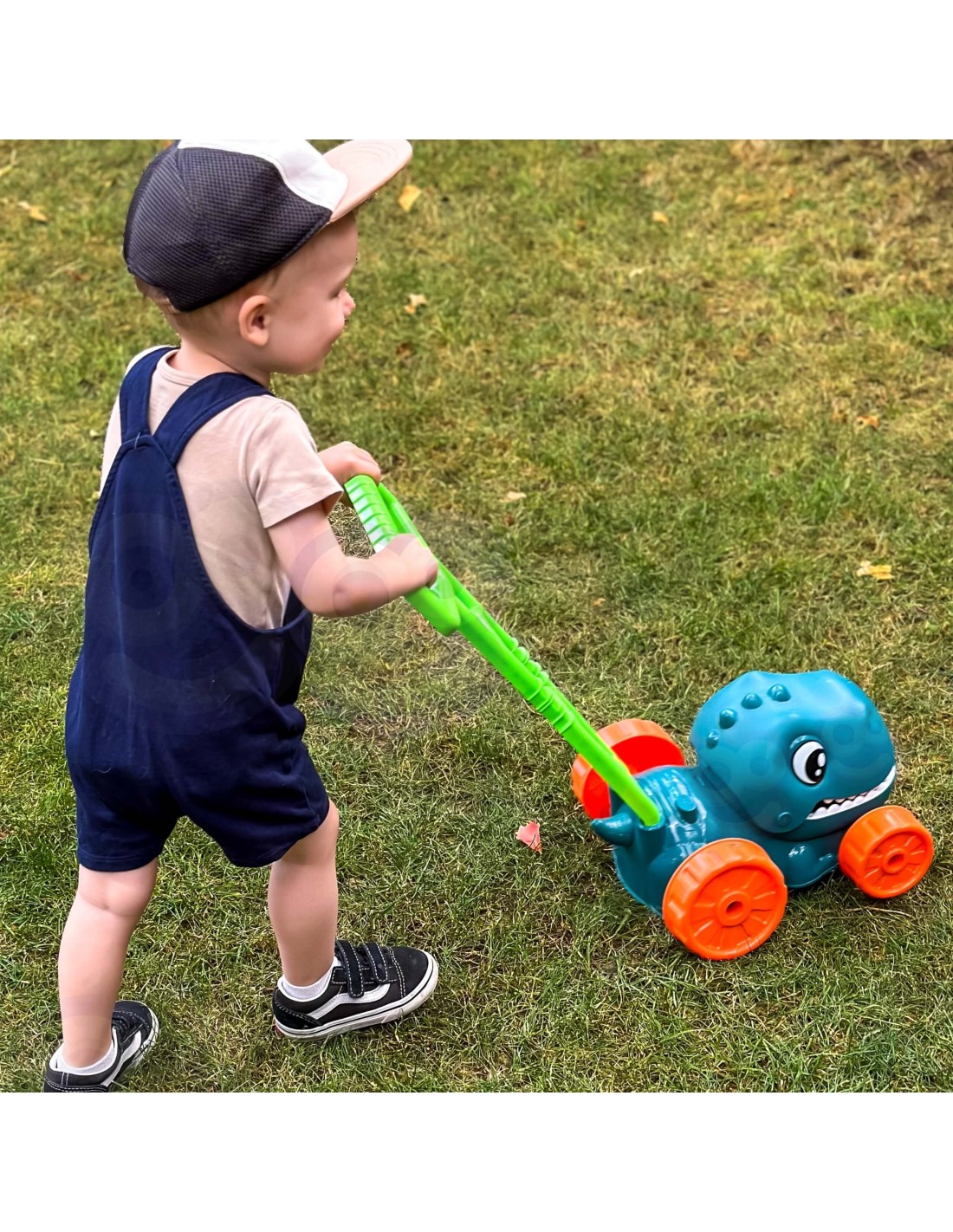 - - Dinosaur motif – a colorful, friendly design with large eyes, a wide mouth and orange wheels encourages children to play actively.