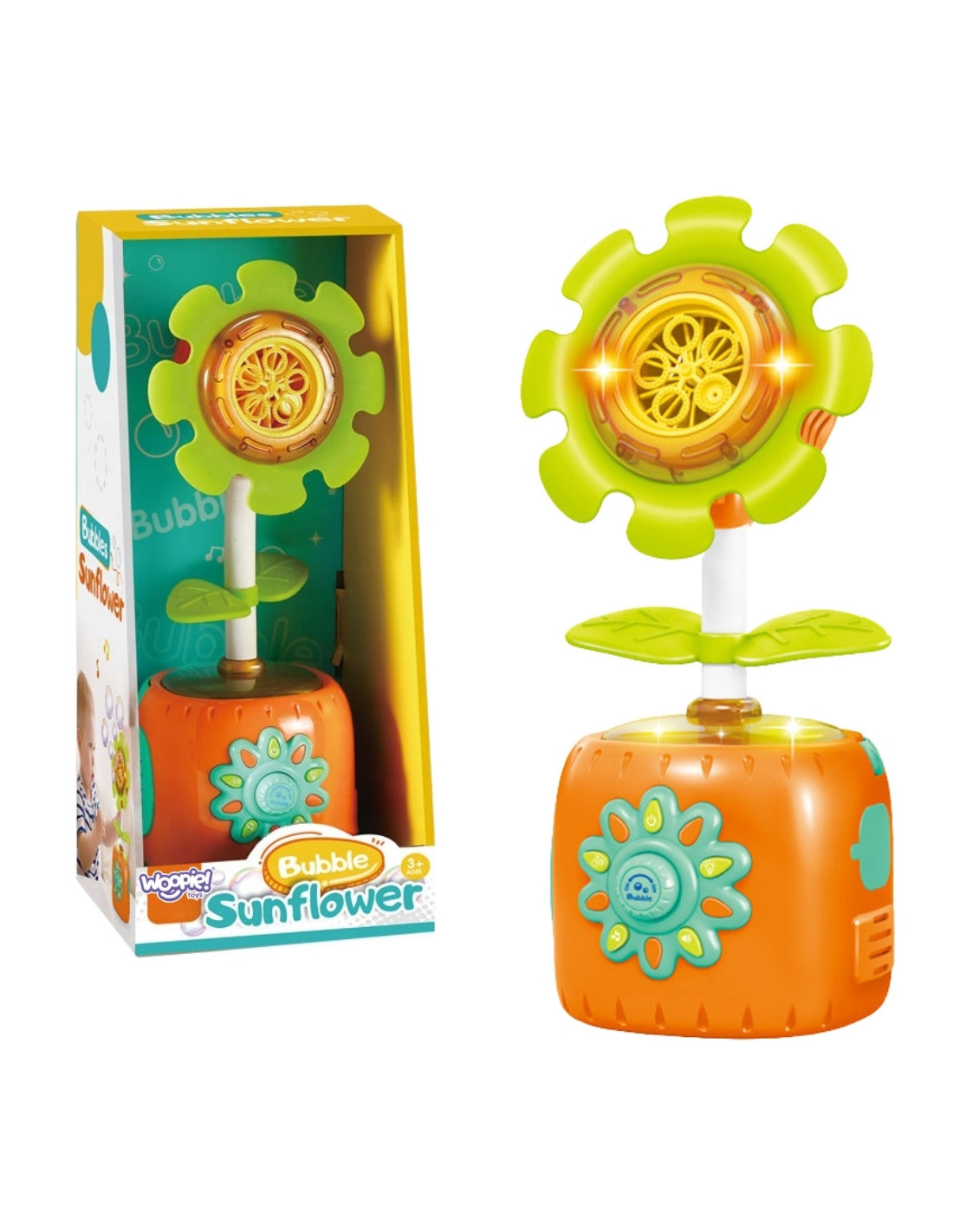 - - Automatic bubble production – the sunflower releases lots of bubbles on its own, creating a magical atmosphere.