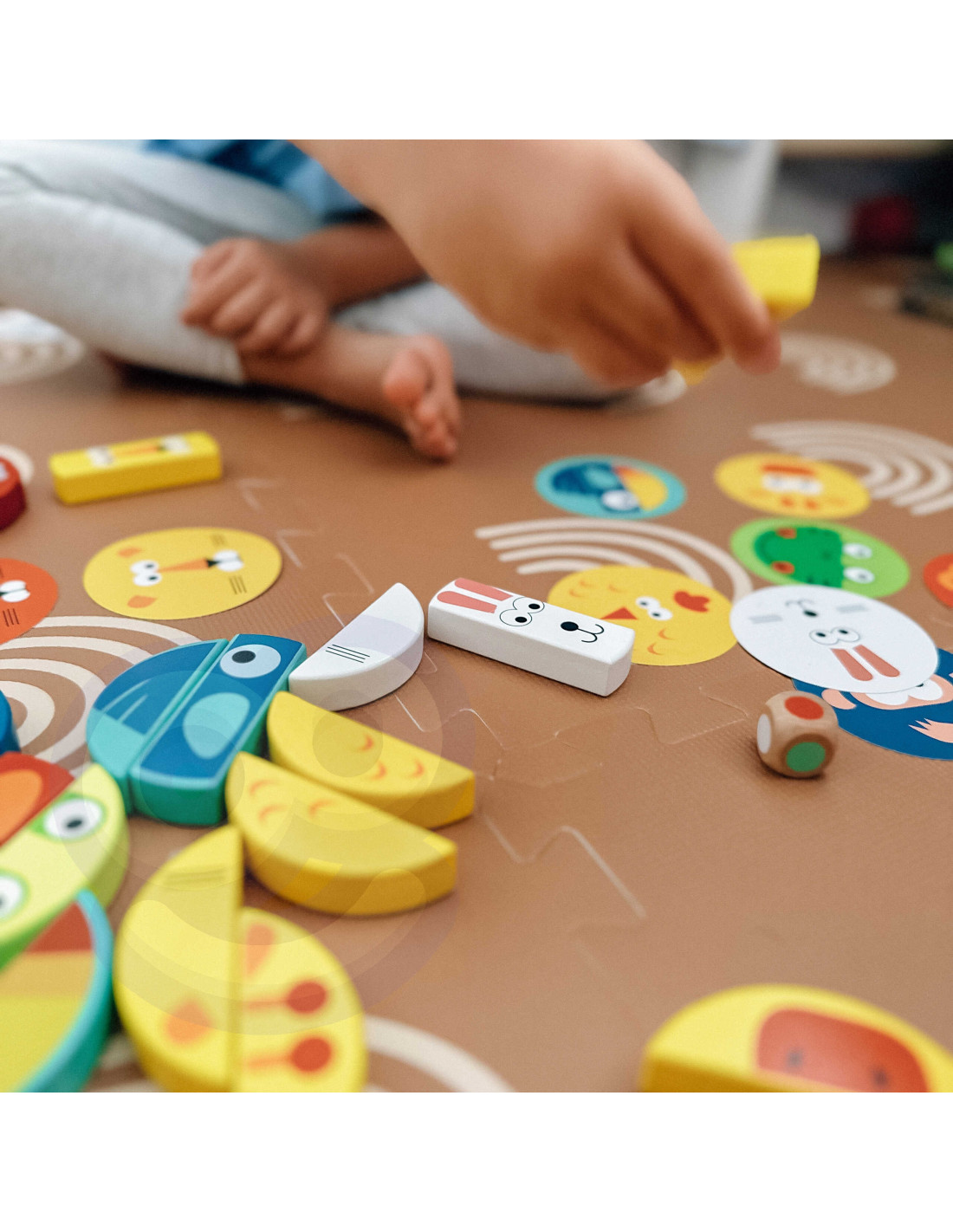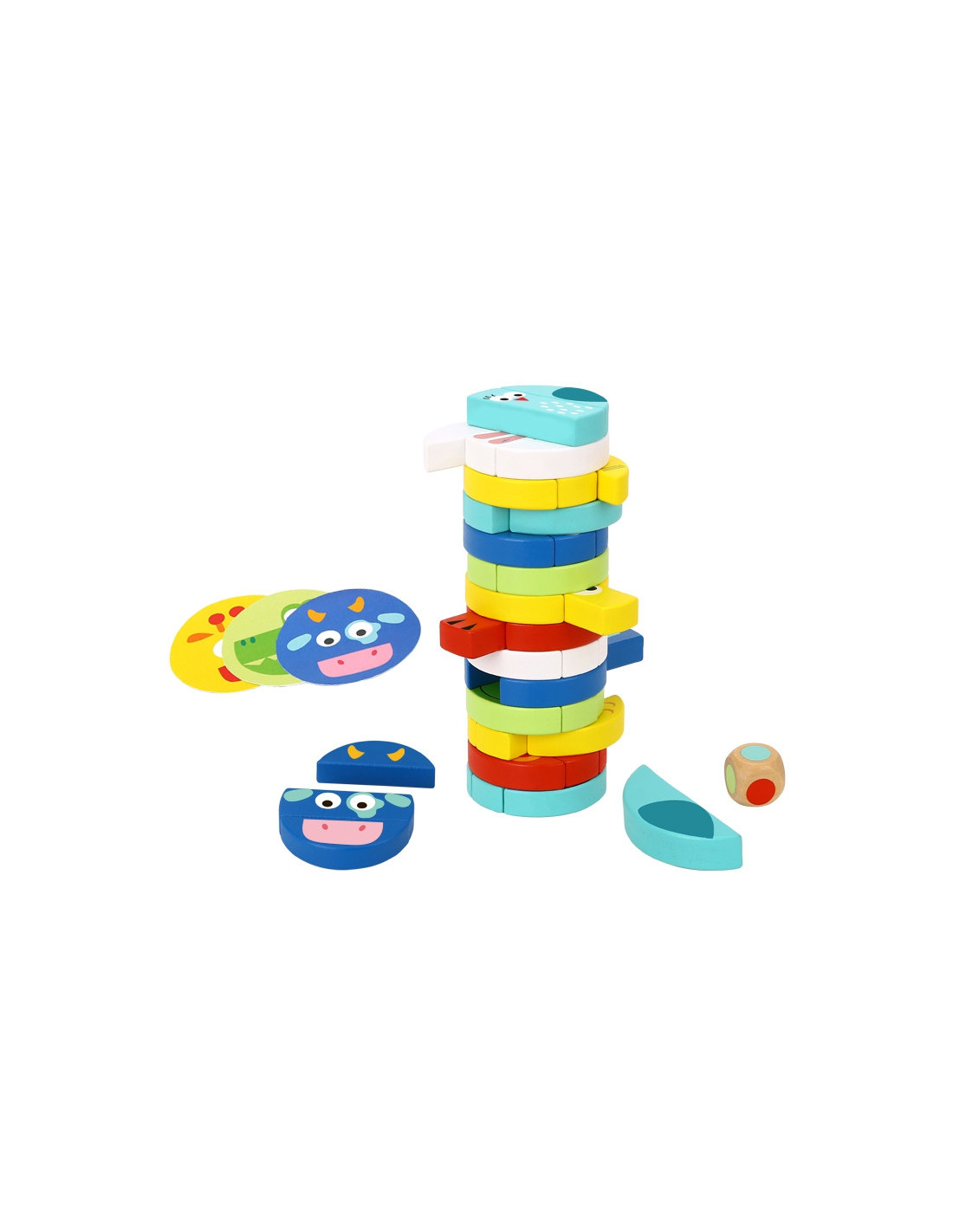 The Animals game from TOOKY TOY is a skill game for children aged 3 and up . It requires your child to focus and think logically . The set includes blocks depicting various animals, animal cards , and a die . After drawing a color and the corresponding animal from the card , the child must pull one of the blocks from its correct location. The goal of the game is to remove as many blocks as possible without collapsing the tower . This eco-friendly product is 100% safe for the environment and our little ones. The elements are made with children's little hands in mind. The set attracts attention with its vibrant colors and animal illustrations . The blocks are characterized by solid construction. Despite its simplicity, the game is sure to provide fantastic experiences for your child and their friends !