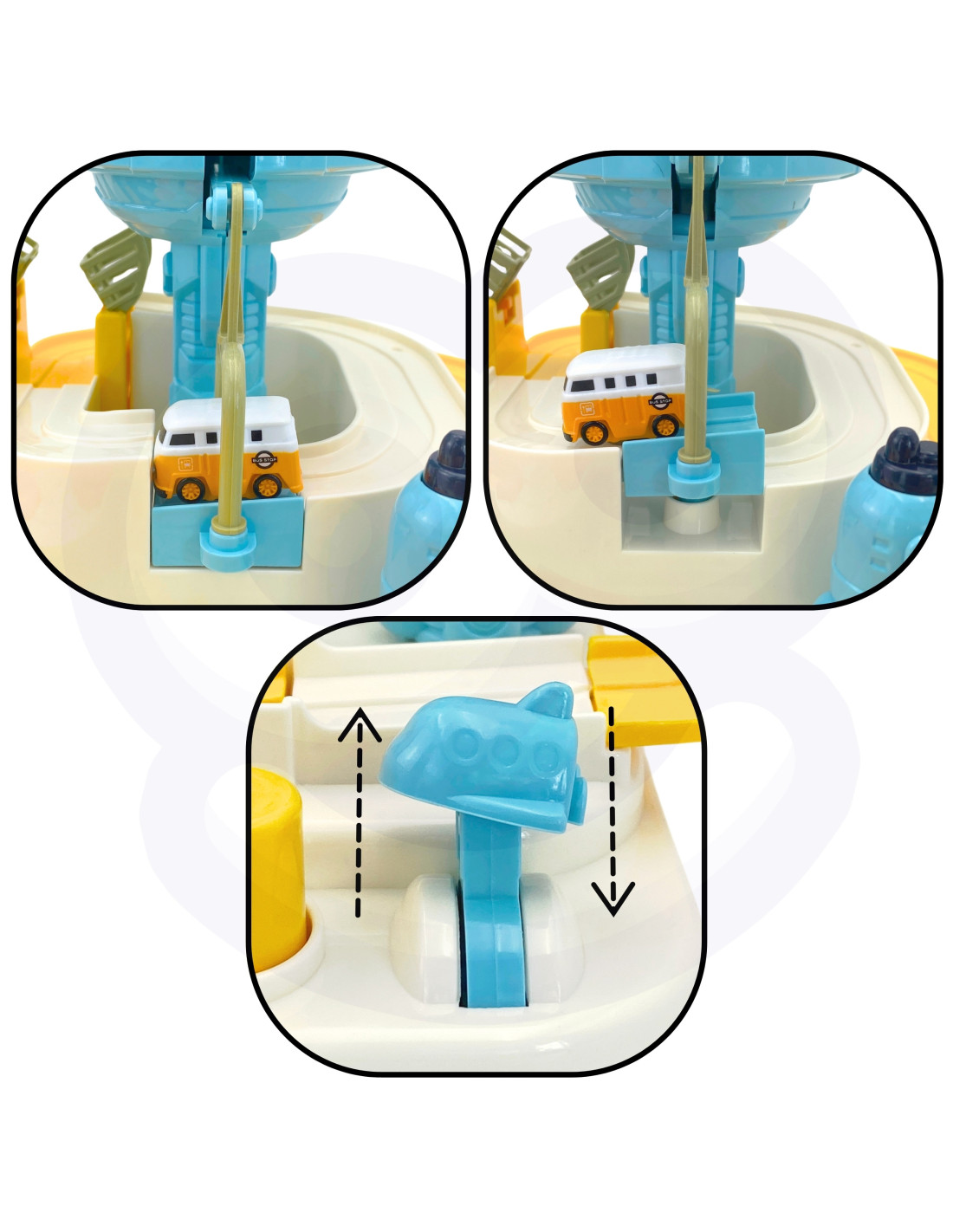 - Lifting Platform - The platform lifts the car, allowing it to return to the track to continue driving to the finish line