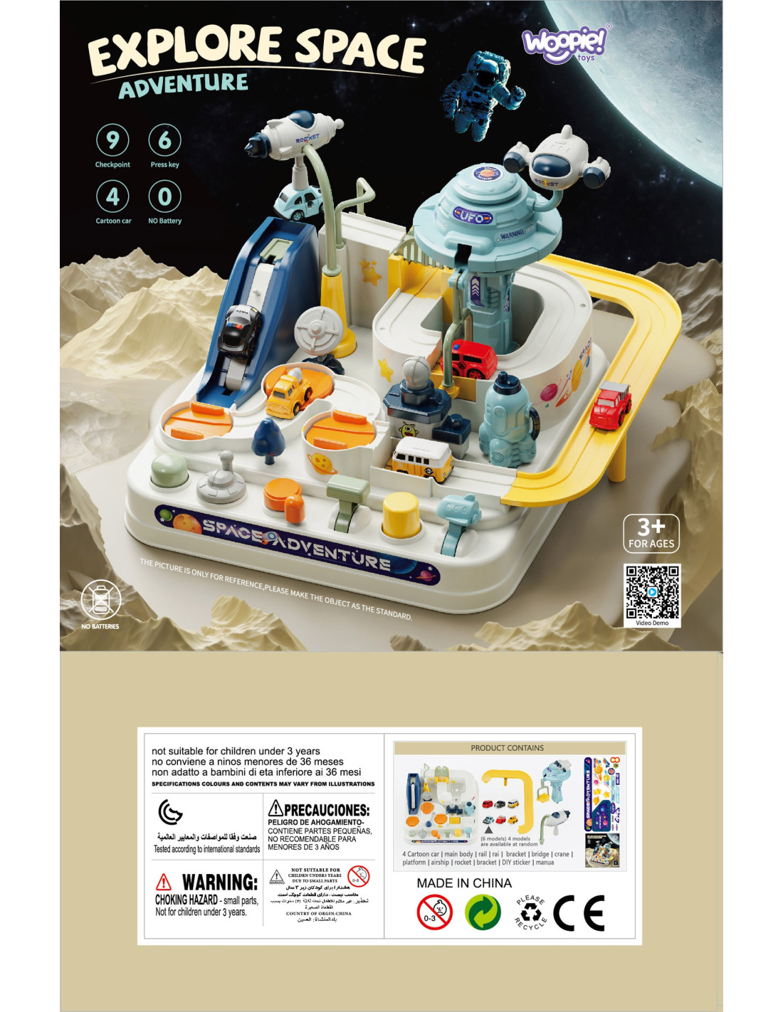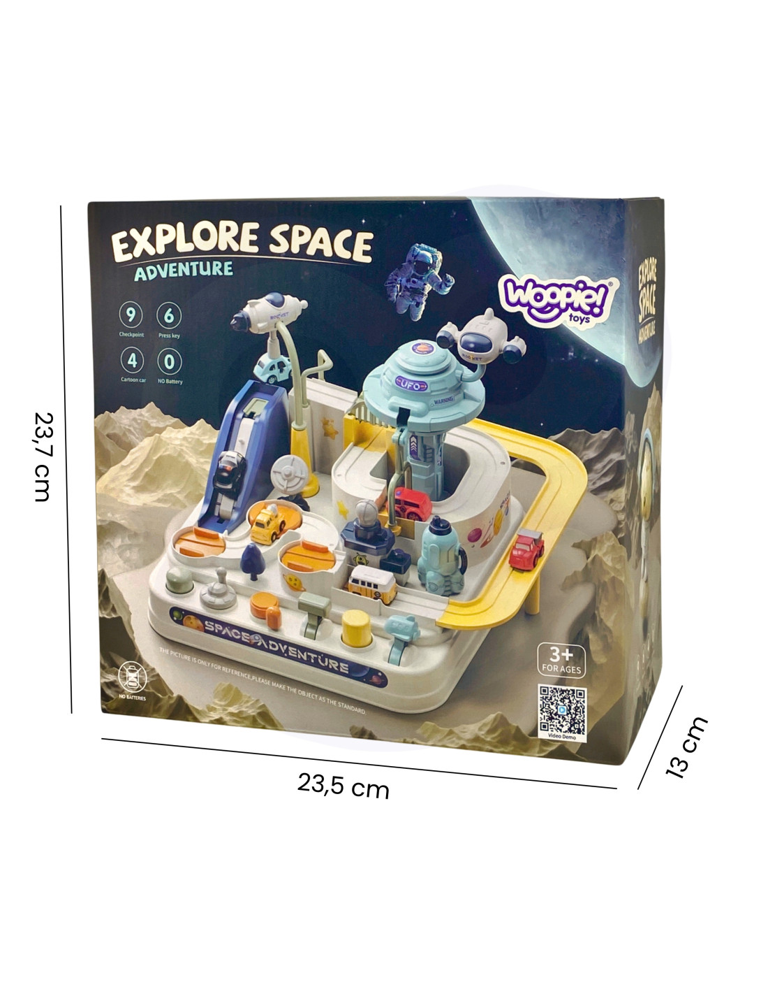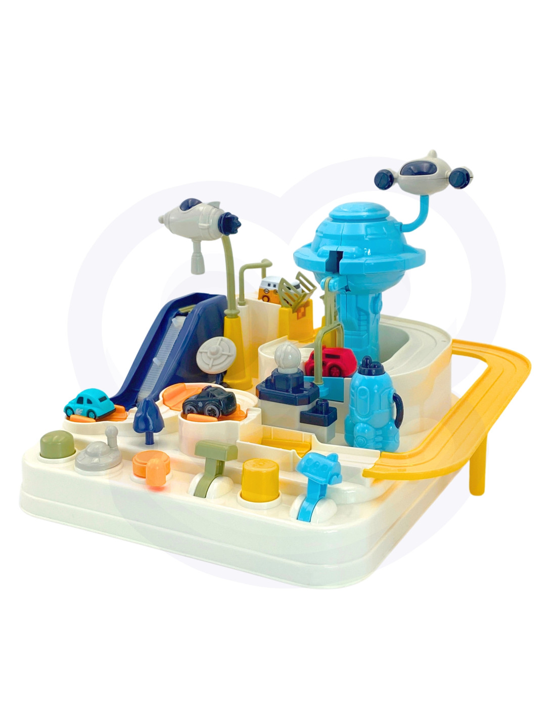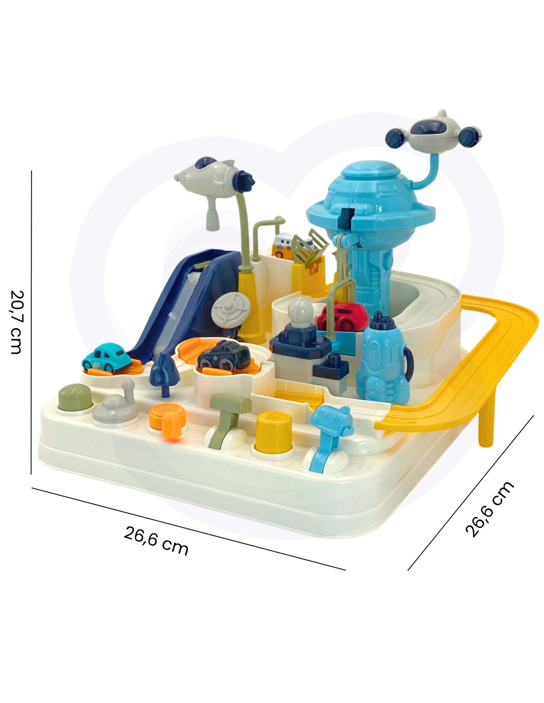 The " Space Adventure " interactive car track is a unique toy that transports children to the fascinating world of space. Thanks to its clever design and diverse elements, the toy offers unforgettable moments full of excitement and challenges. Young explorers can take on the roles of characters exploring a space base while overcoming various obstacles on the car track. It's the perfect tool for developing imagination and manual skills , while also providing tons of fun. Designed like a space base, the track features many elements that will make children feel like true space explorers. Spaceships and a UFO vehicle add an incredible atmosphere to the set, enriching any play experience.