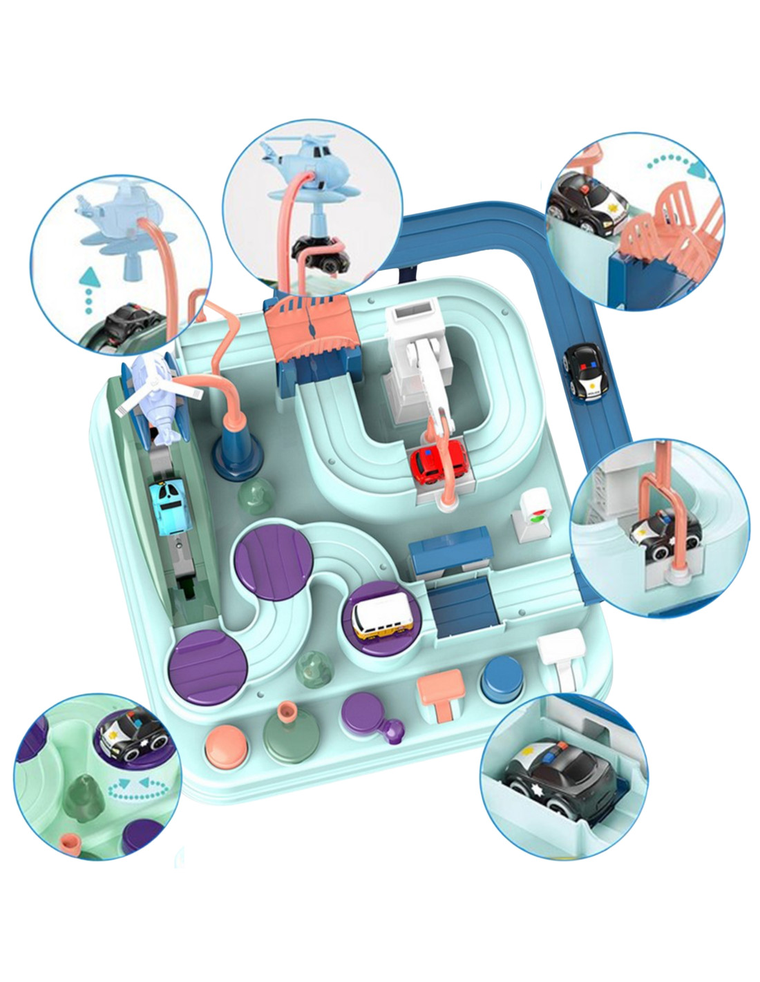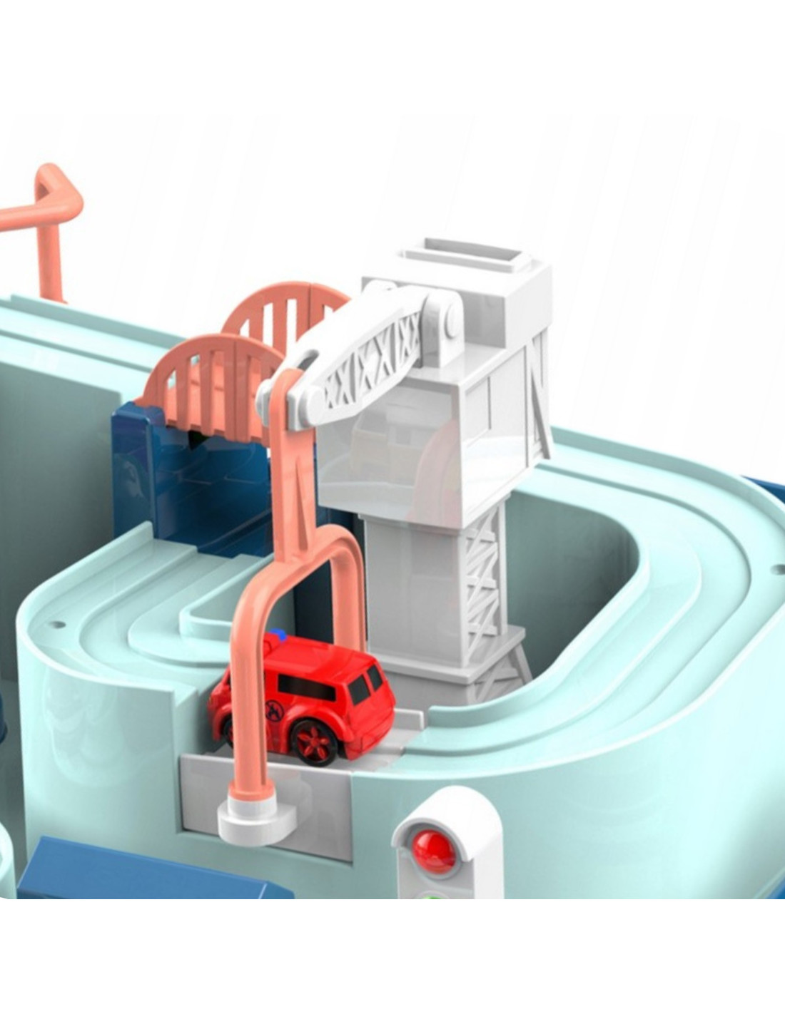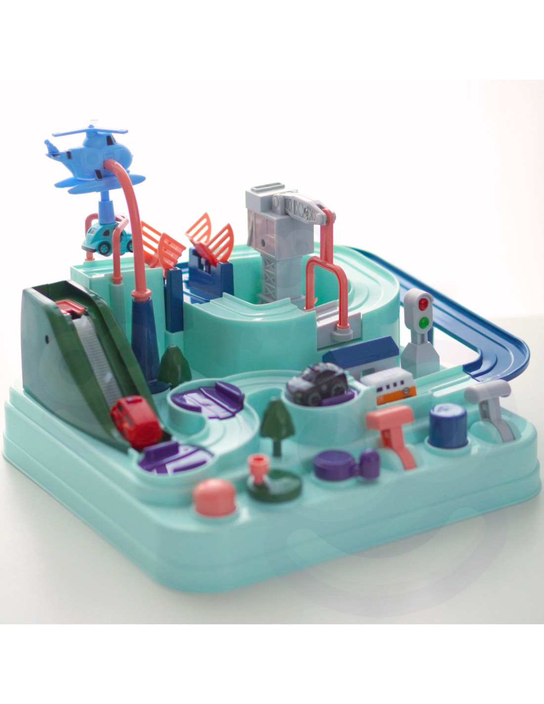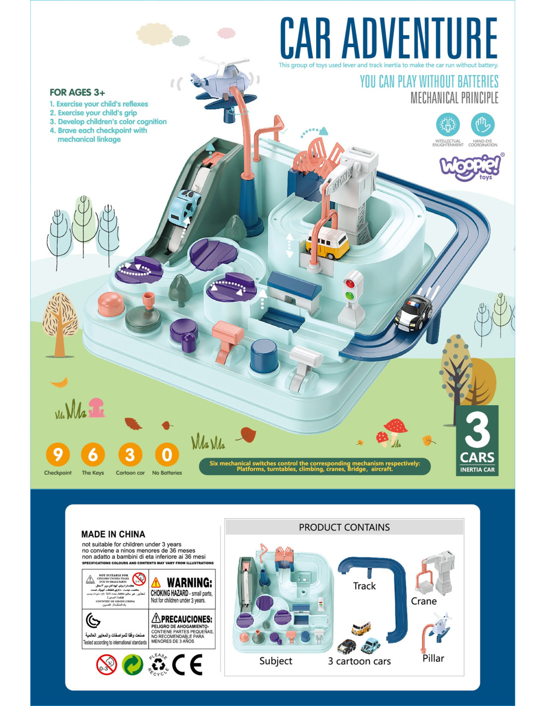 The interactive " Car Adventure " obstacle course is a unique gift for little explorers who crave exciting adventures and unforgettable challenges. It's more than just a toy—it's a real arena where children can take on the role of drivers and overcome various obstacles. Thanks to its clever design and diverse elements, the toy offers unforgettable moments full of excitement and challenges. It's the perfect tool for developing imagination and manual skills , while also providing tons of fun. The car track offers not only rides but also dynamic , interactive elements operated with buttons and knobs. It's an exciting game that requires focus and dexterity. The set includes three cars that can freely explore the track, depending on the child's imagination. The vehicles will diversify the fun or allow children to compete along the route. Driving through the track seems easy, but numerous elements, such as gears and drawbridges , will make the journey adrenaline-filled .