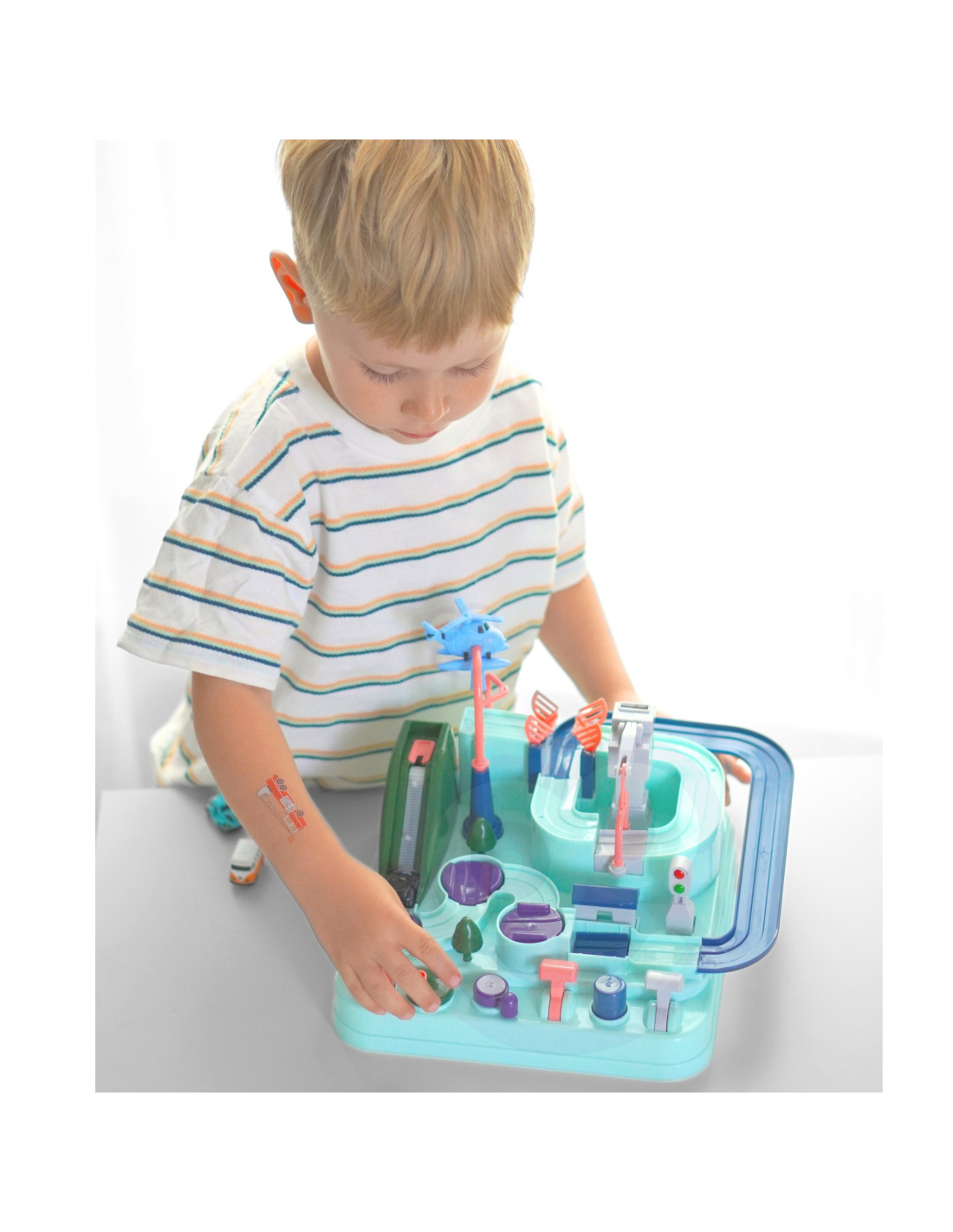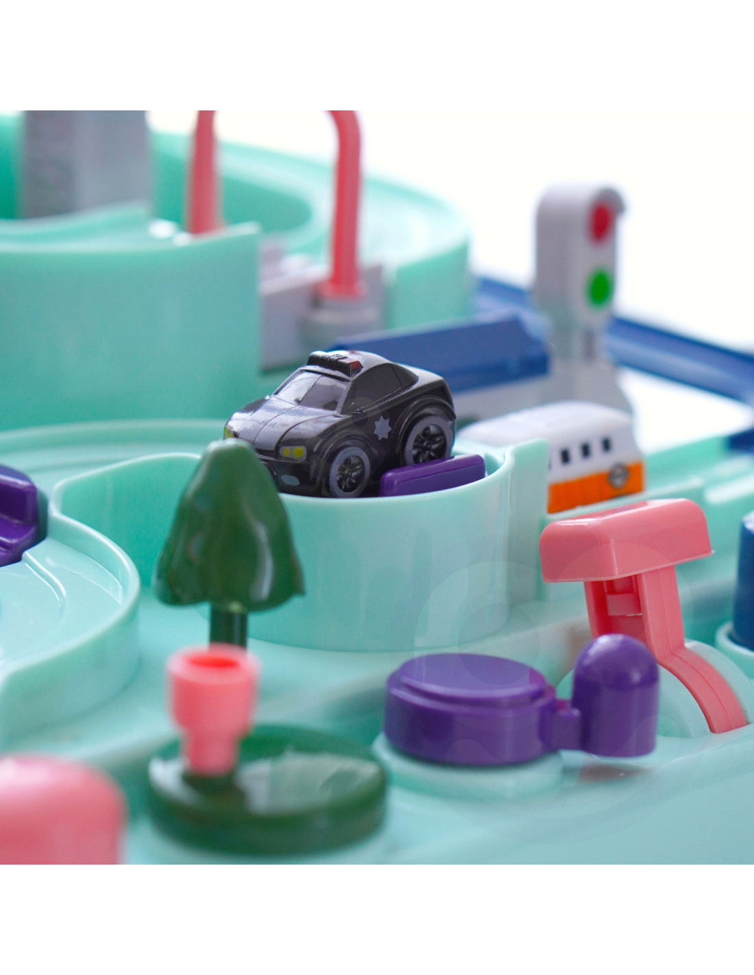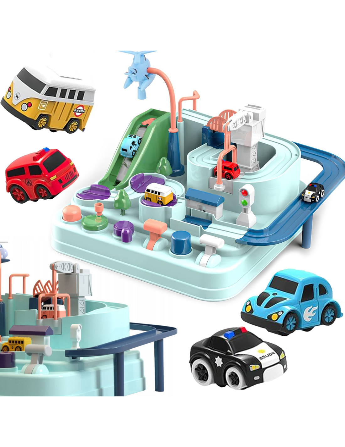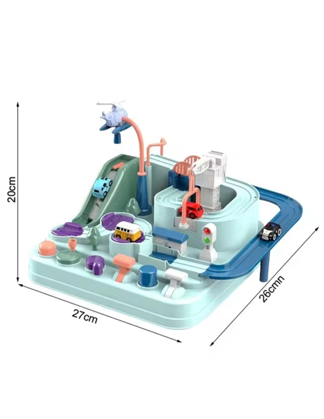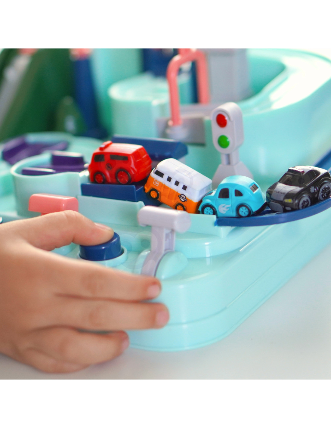 The interactive " Car Adventure " obstacle course is a unique gift for little explorers who crave exciting adventures and unforgettable challenges. It's more than just a toy—it's a real arena where children can take on the role of drivers and overcome various obstacles. Thanks to its clever design and diverse elements, the toy offers unforgettable moments full of excitement and challenges. It's the perfect tool for developing imagination and manual skills , while also providing tons of fun. The car track offers not only rides but also dynamic , interactive elements operated with buttons and knobs. It's an exciting game that requires focus and dexterity. The set includes three cars that can freely explore the track, depending on the child's imagination. The vehicles will diversify the fun or allow children to compete along the route. Driving through the track seems easy, but numerous elements, such as gears and drawbridges , will make the journey adrenaline-filled .