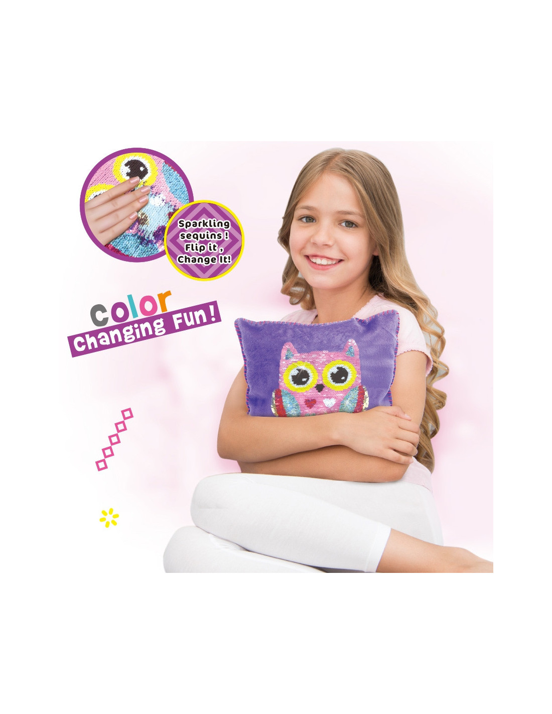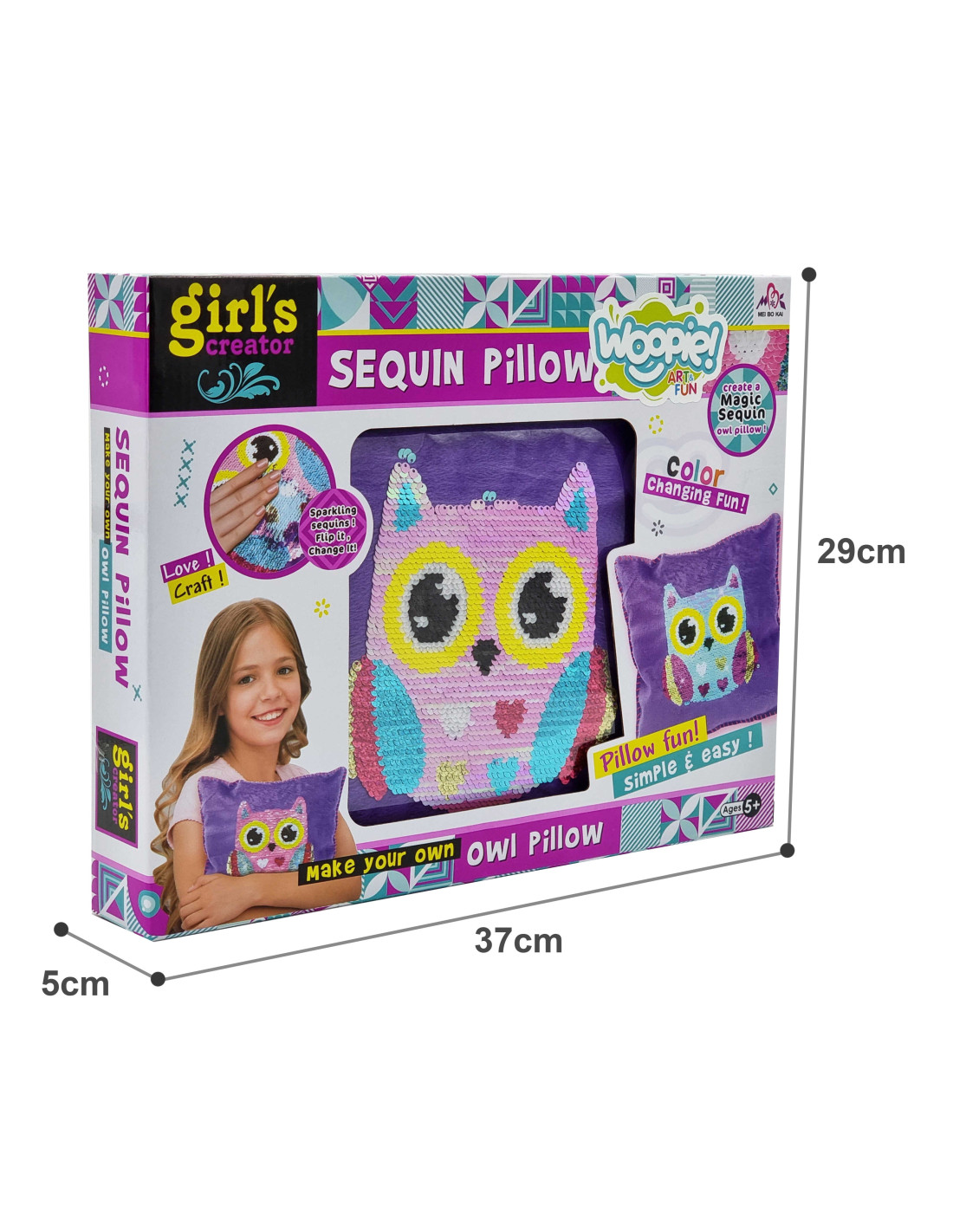The Owl Sequin Pillow from WOOPIE 's ART&FUN series will introduce your child to the world of fashion! A creative kit for everyone. The set includes a pillowcase, pillow, sequins, needle, and thread. Sewing the pillow is simple, anyone can do it – all it takes is a little imagination and creativity ! The finished pillow has an interesting property: it changes color when rubbed. The set develops early interests in sewing and fashion, patience , and above all, manual dexterity!