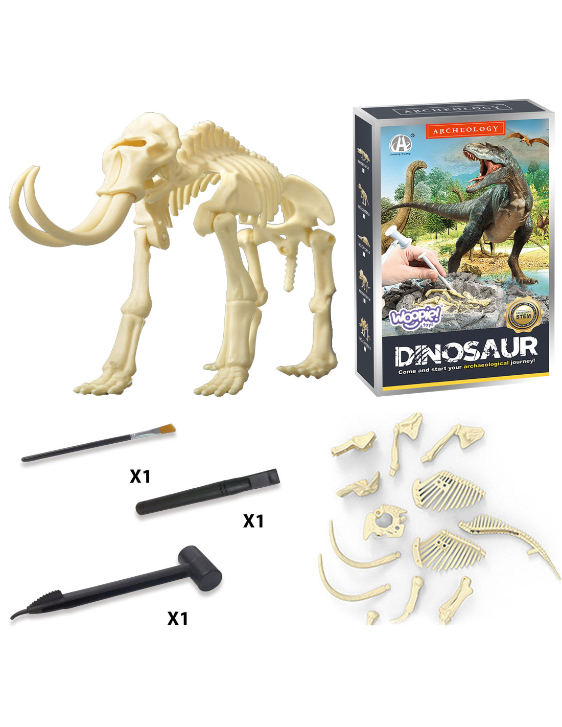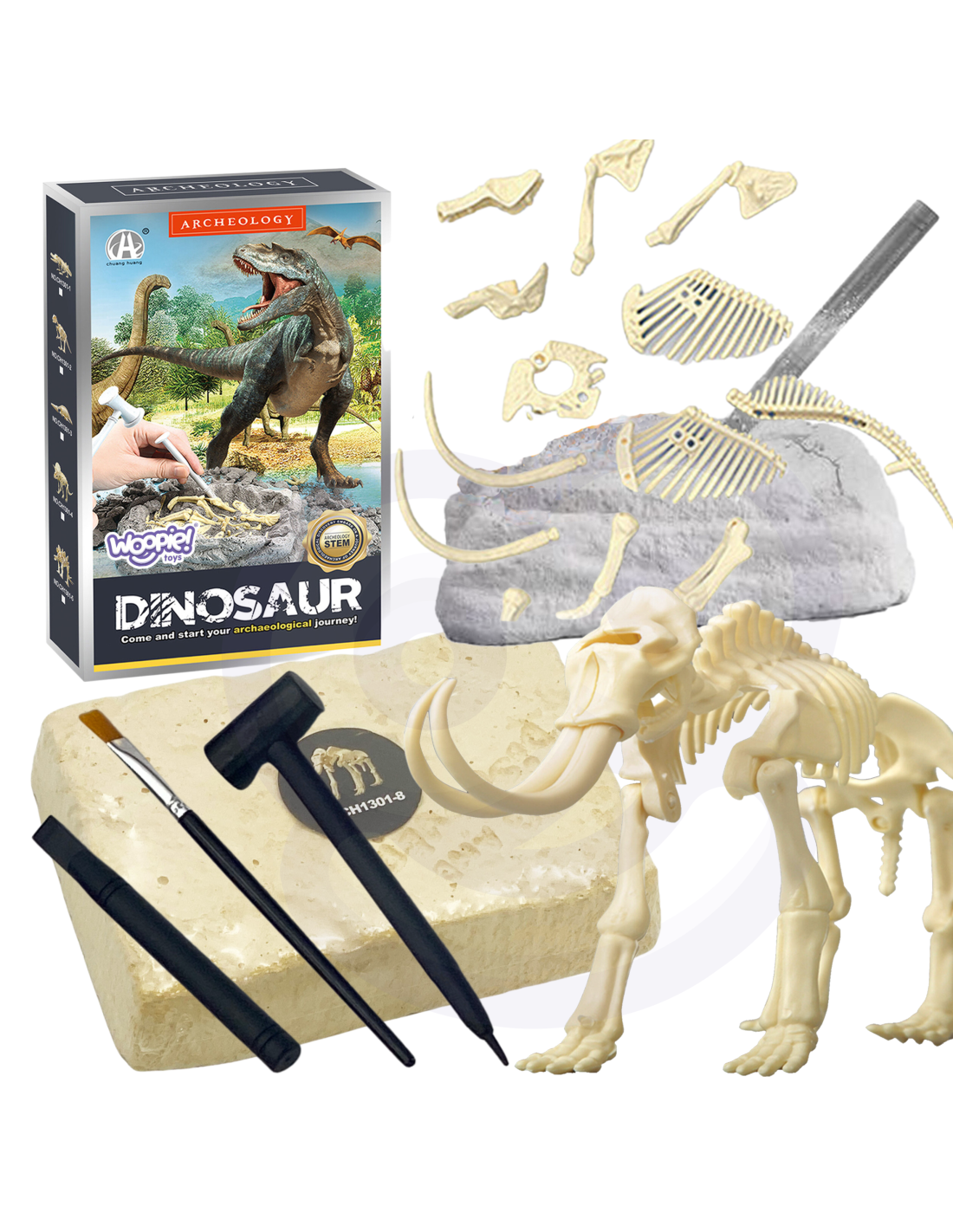 The Mammoth Fossils Set from WOOPIE is a fantastic gift for children interested in prehistory. The fun involves excavating fossils and assembling them into a mammoth . The set allows you to feel like a real paleontologist, digging up fossils and discovering mammoth bones. With the included tools for digging, tapping, brushing, and assembling, children can enjoy hours of educational play , be inspired by natural science, and develop their practical and thinking skills. The perfect gift for both boys and girls!