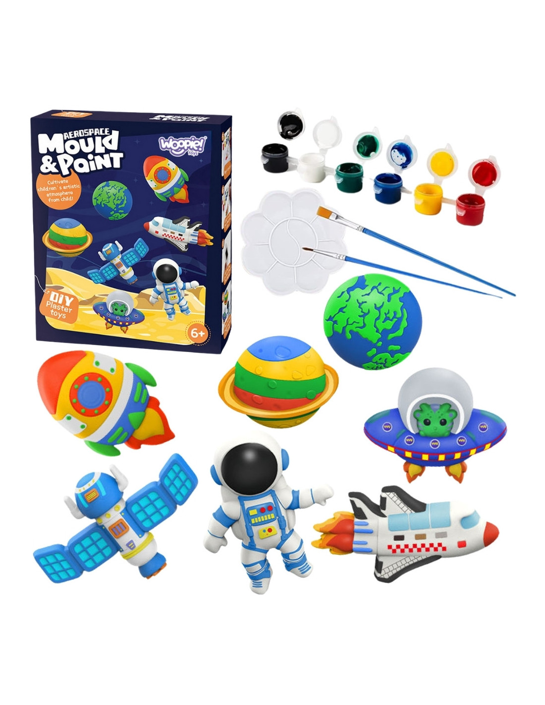 Take your child on a fascinating journey through space – without leaving home! With the Mold & Paint SPACE set from Woopie, your little one will create their own rockets, astronauts, planets, and other cosmic wonders from plaster, and then paint them according to their own ideas. Education and fun all rolled into one!