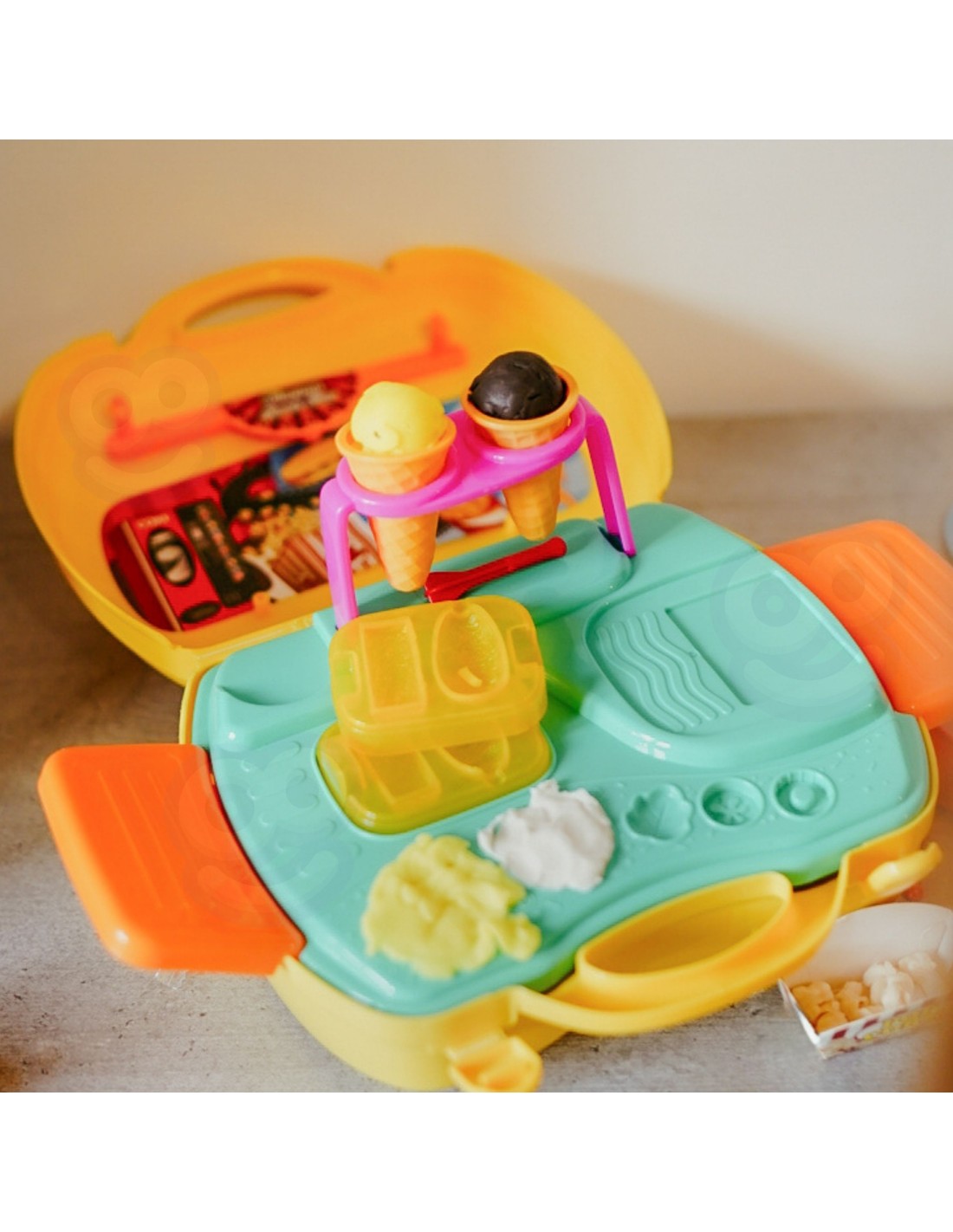 The Woopie snack bar set is a dream come true for every little foodie and aspiring chef. This charming, portable snack bar playset will allow your child to spend time creatively while developing their manual skills and imagination. Compact and housed in a convenient carrying case, it's perfect for playtime at home, with friends, or on the go. Simply open the case and the bar can be set up in seconds and begin a culinary adventure. A wealth of accessories guarantees hours of engaging play. Children can take on the role of a chef, salesperson, or customer, creating their own scenarios and dishes. The set allows them to prepare their favorite snacks, such as ice cream, fries, hamburgers, or popcorn. Simply mold the shape of the desired product from play dough and then serve it on a plate or in special packaging. High-quality craftsmanship and safe materials ensure safe and long-lasting entertainment. It's a perfect gift idea that will surely delight any child and bring them lots of joy.