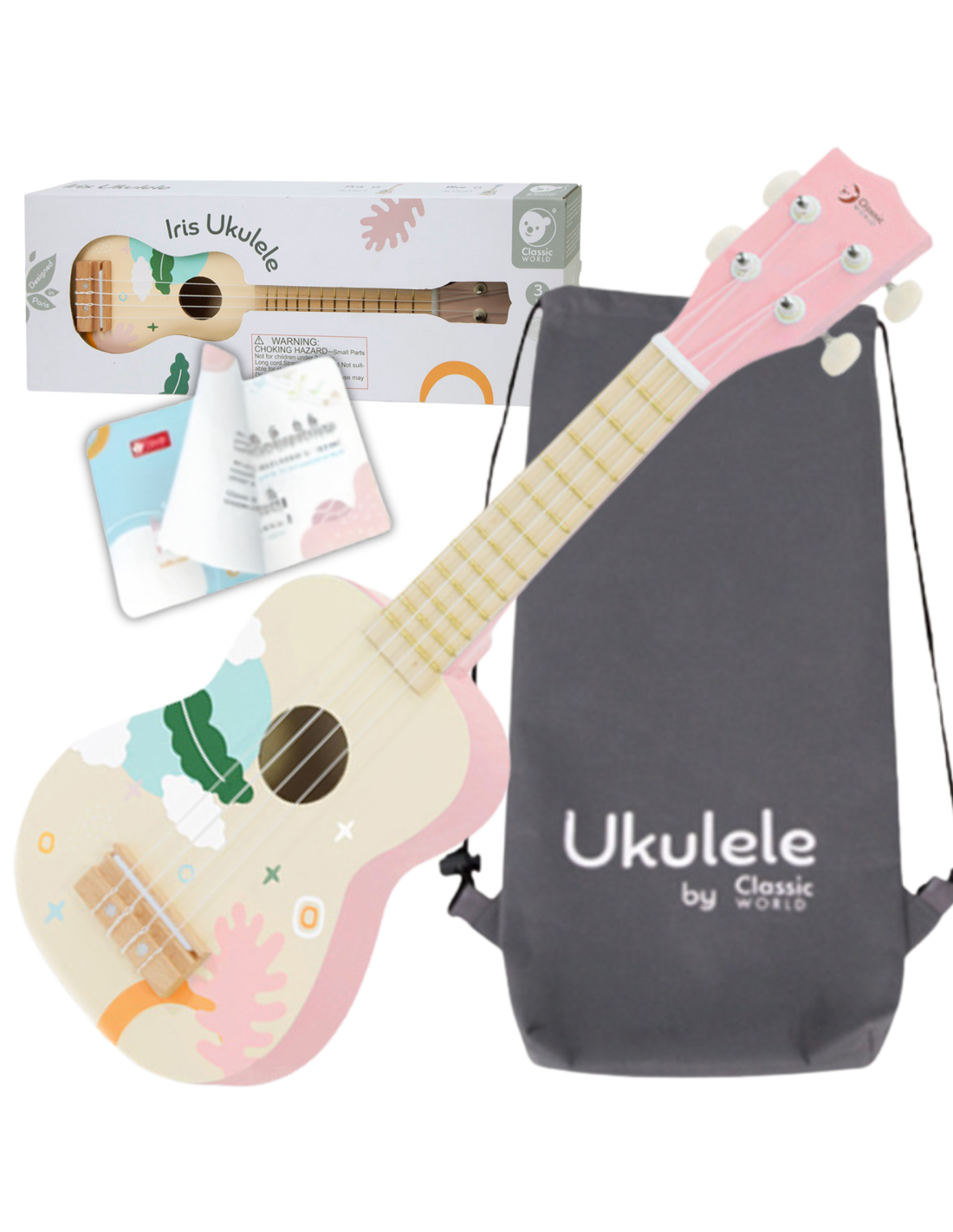 - - Pink wooden ukulele from the renowned brand Classic World for young musicians.