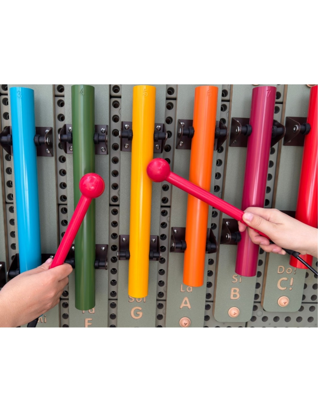Masterkidz 's colorful sound tubes with sticks transform any playground into a personal concert hall – children simply tap the different lengths of the tubes to produce fun sounds and create their own hits straight from their imagination. These modular pieces fit perfectly with STEM panels, giving little ones endless possibilities for improvising rhythms and melodies during active play outdoors or indoors. The durable HDPE resin construction guarantees years of enjoyment, distinguishing them from similar toys in terms of quality and ease of assembly.
