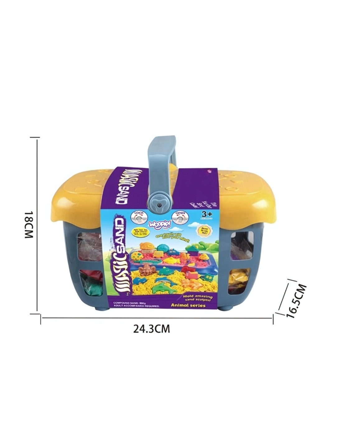 Bring the beach home, without sand spreading throughout the apartment! Introducing Magic Kinetic Sand in a practical basket from Woopie! The perfect set for creative and sensory play for children. This extraordinary sand never dries out , is soft to the touch , and easily molds , allowing for countless shapes and structures to be created. Thanks to the abundance of molds and accessories , your child will be able to develop their imagination and manual skills while enjoying clean and safe play!