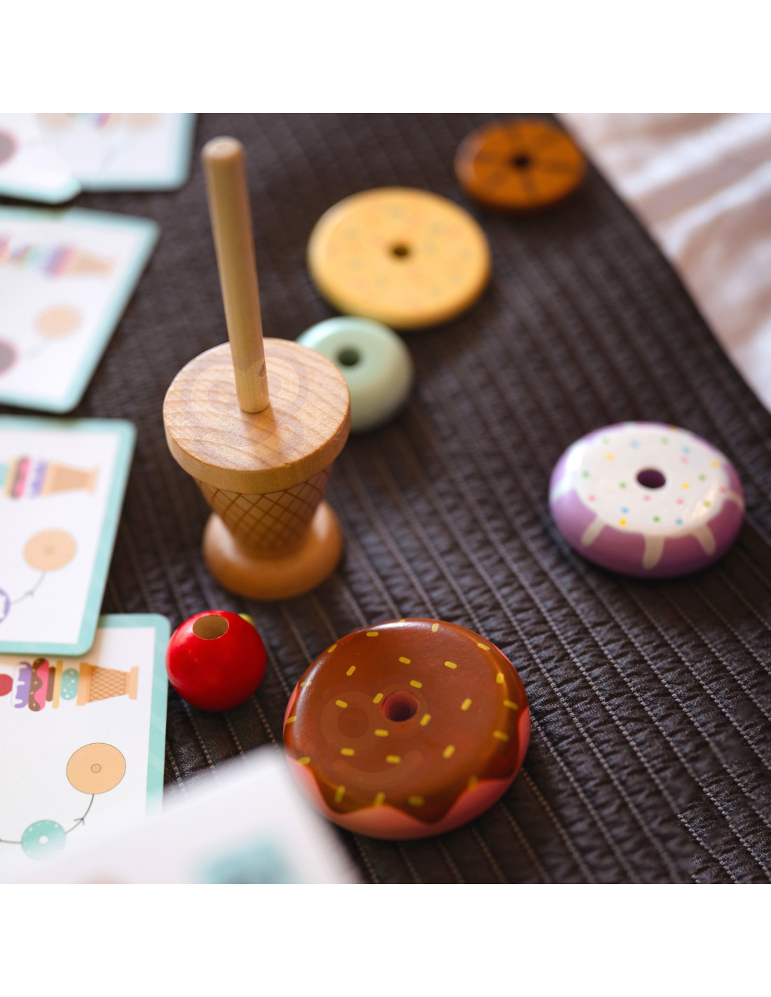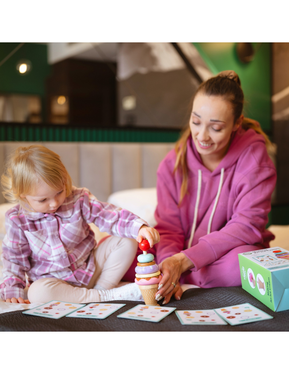 - Eye-hand coordination – this game involves connecting what the child sees (the pattern on the card) with what they do with their hands. Children develop concentration and learn to combine observation with action, which positively impacts movement control and precision.