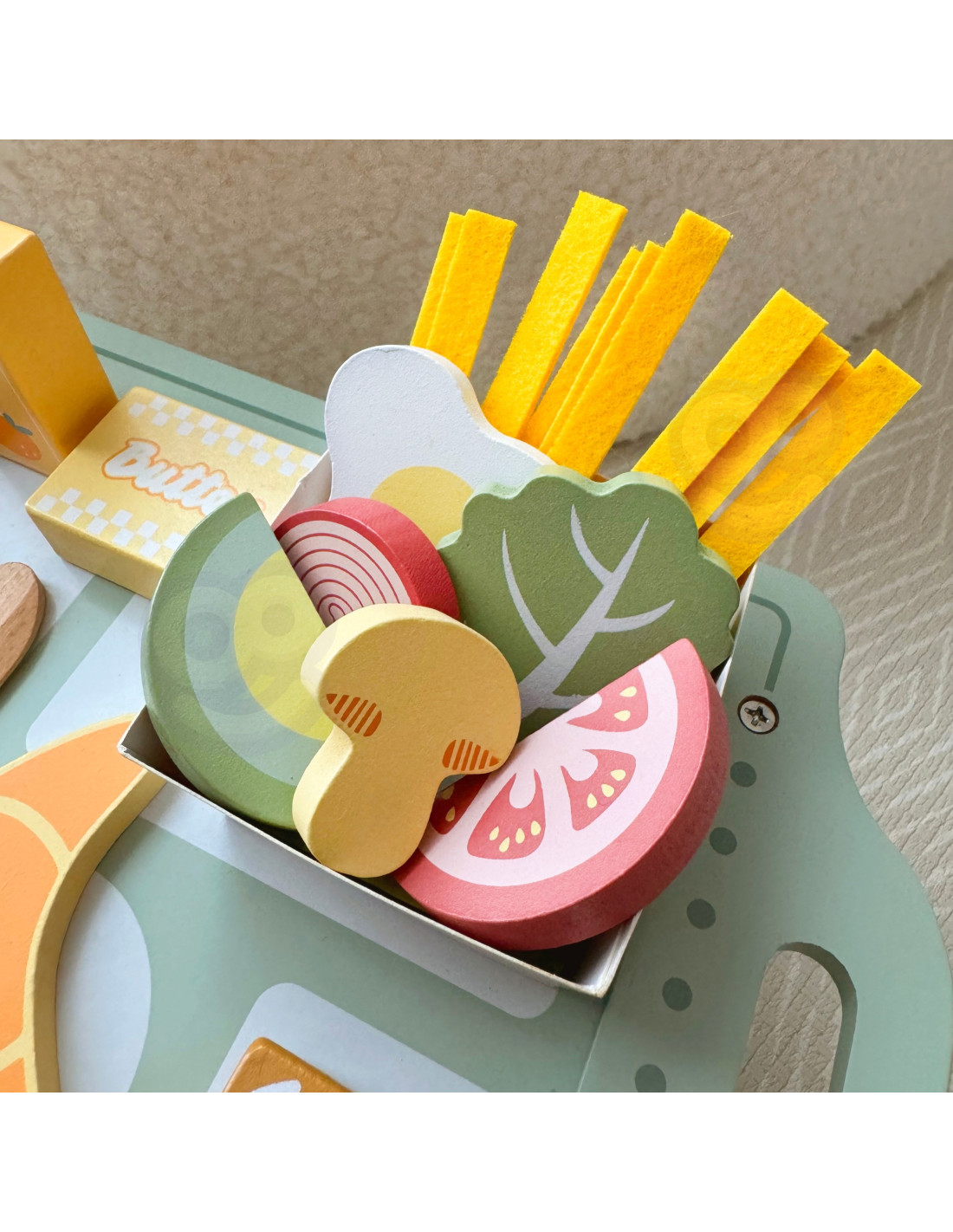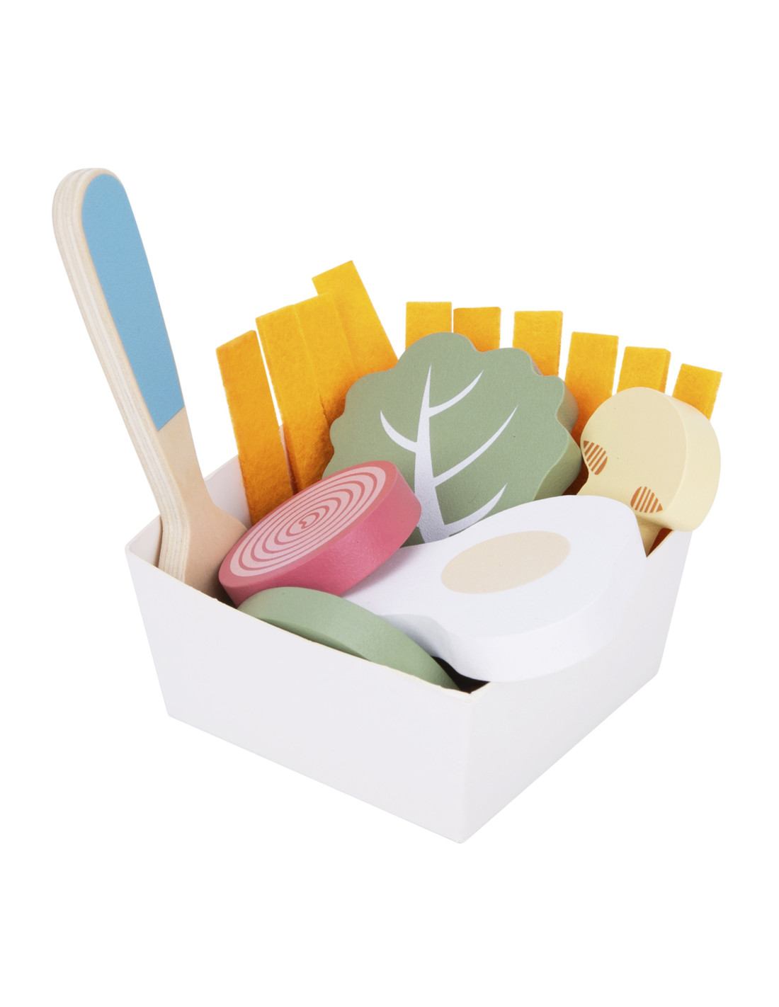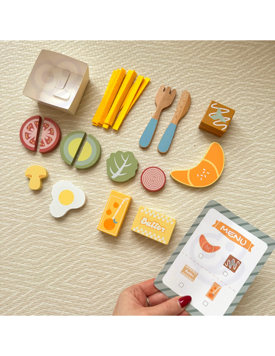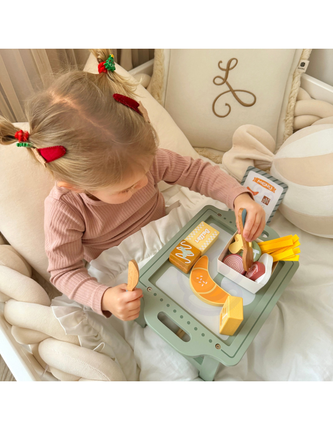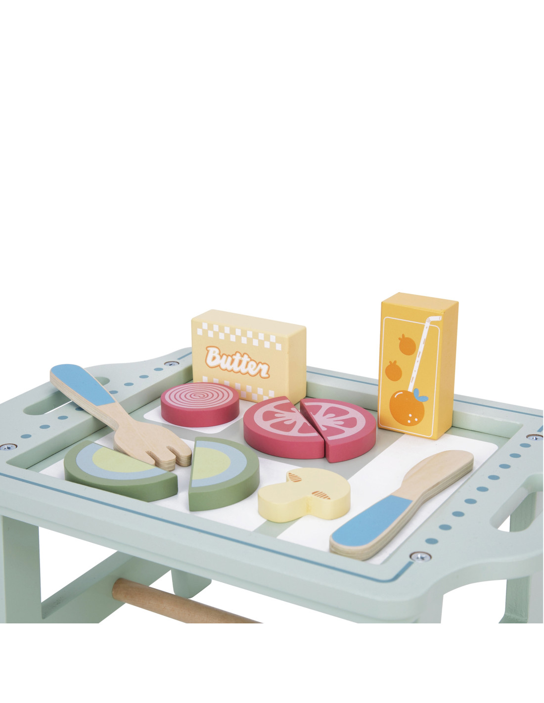 A charming pastel tray and realistically crafted wooden elements make play exceptionally engaging and inspiring.