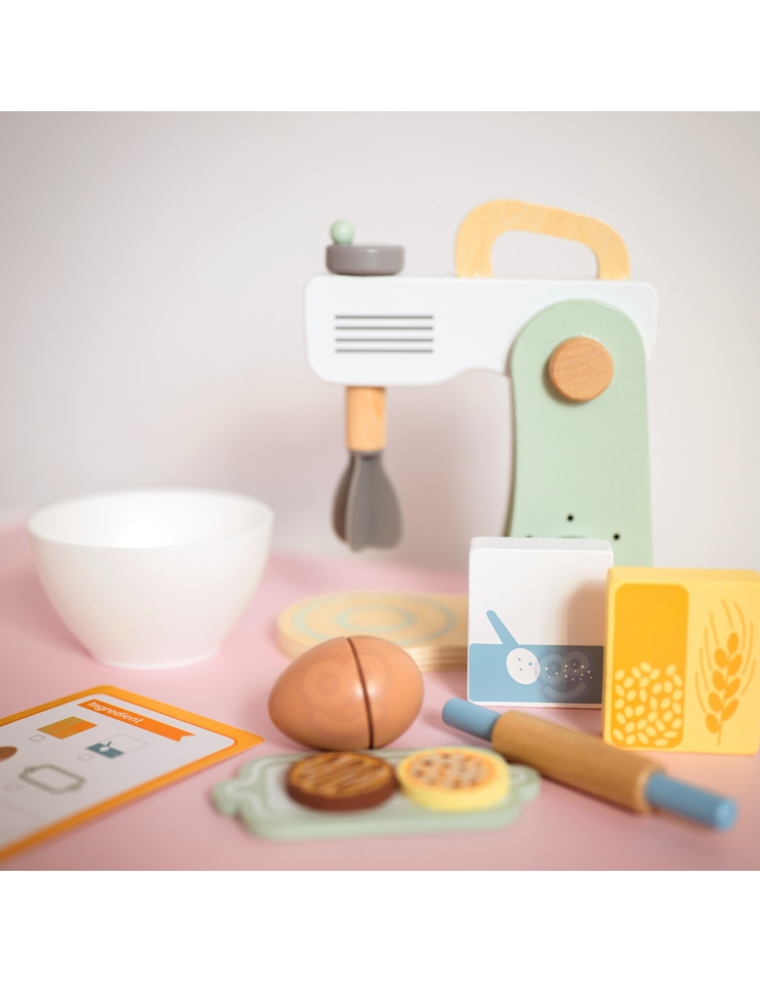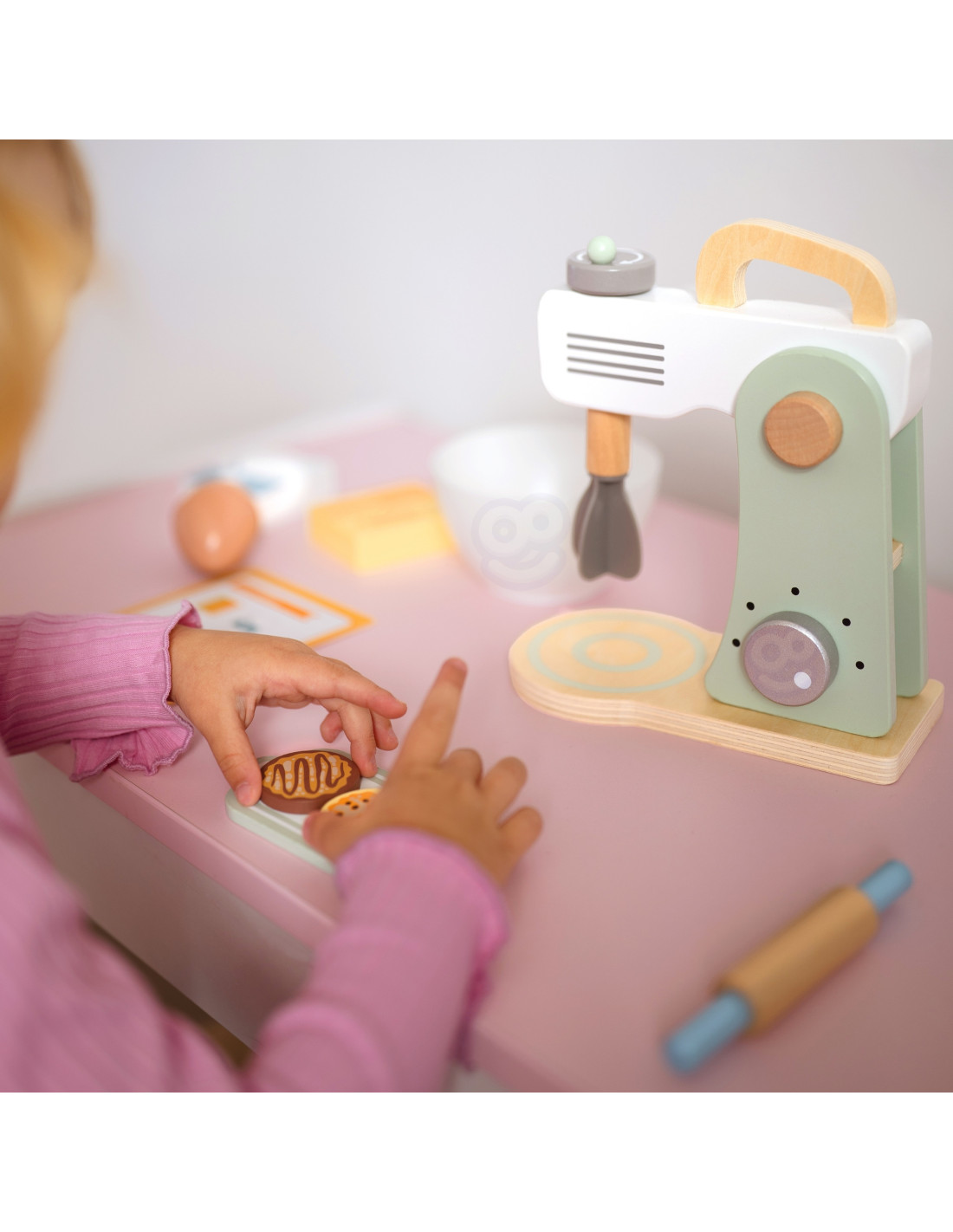 It's time for something sweet! This time, your child will prepare a dessert for the whole family. Playing with a mixer stimulates imagination , develops creativity , and fosters the ability to imitate adults – something children love most. The wooden elements are safe and pleasant to the touch, and the pastel colors add charm to any child's kitchen.