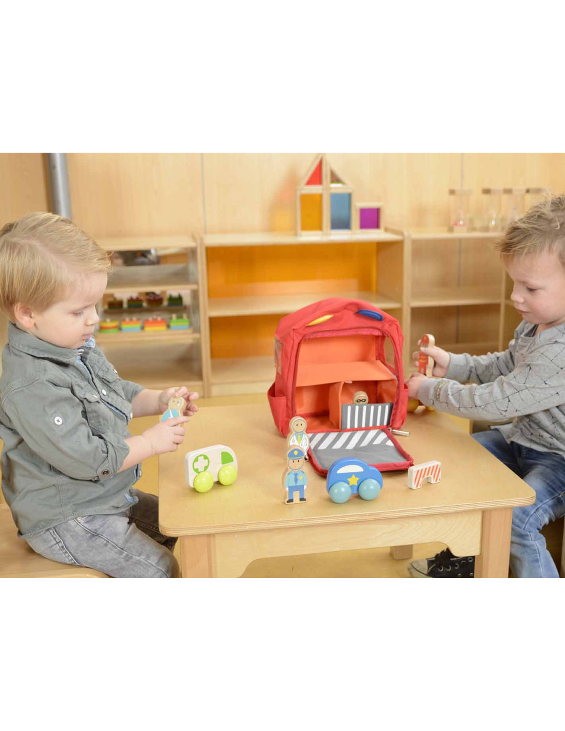 The Masterkidz Emergency Security Center in a Backpack is an innovative set that allows children to play with all the security services in one place. Thanks to its clever design, the backpack can be transformed in a matter of seconds into an emergency center, complete with a hospital, fire station, and police station. The toy is lightweight, easy to carry, and folds, making it a joy for children to take with them on every trip.