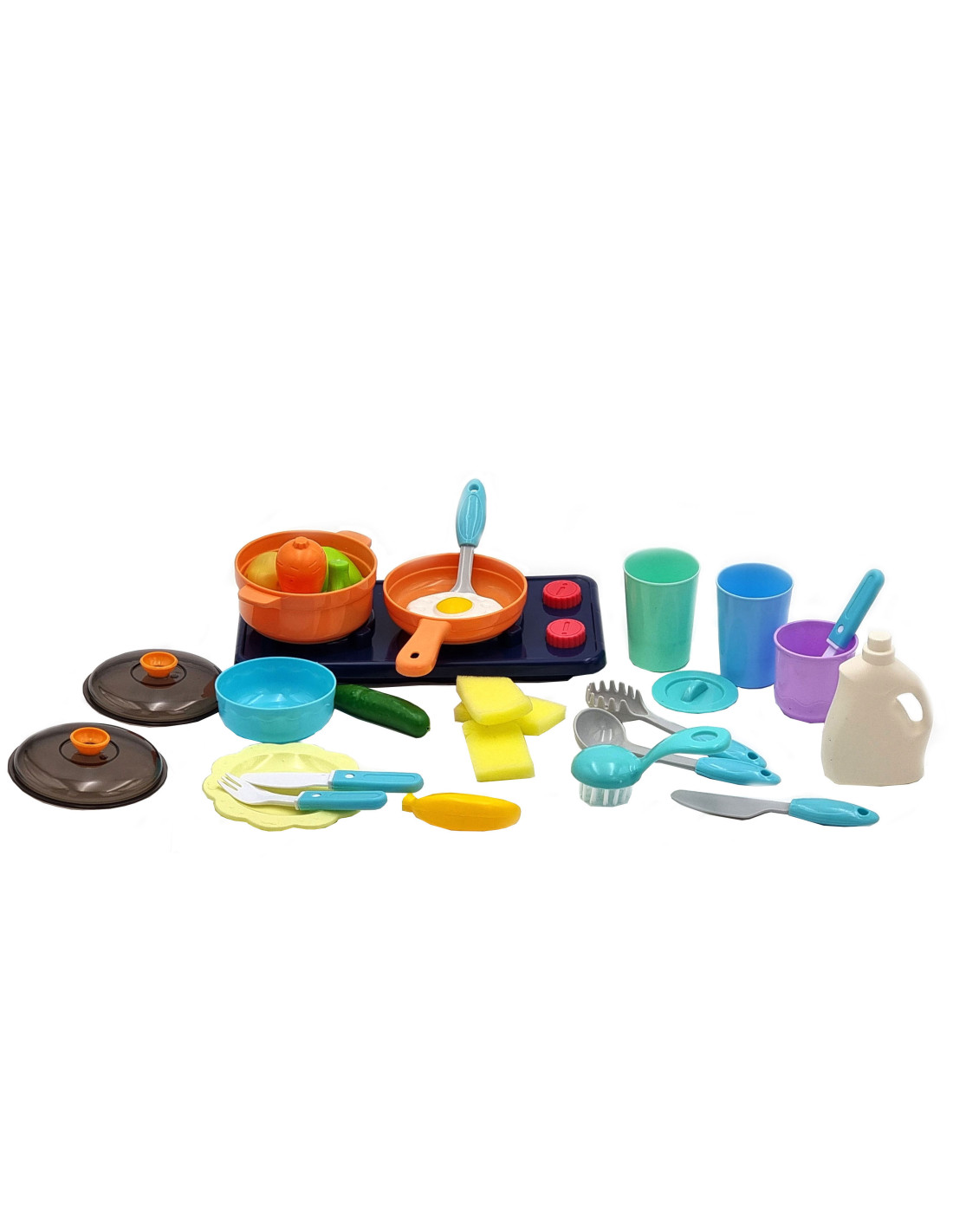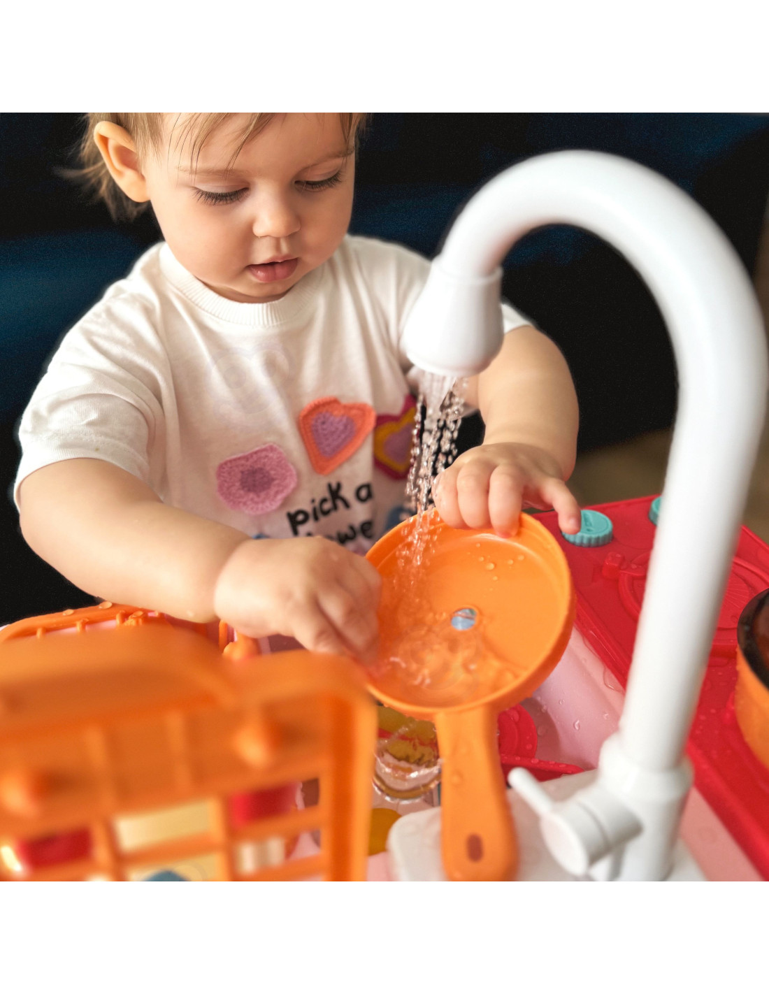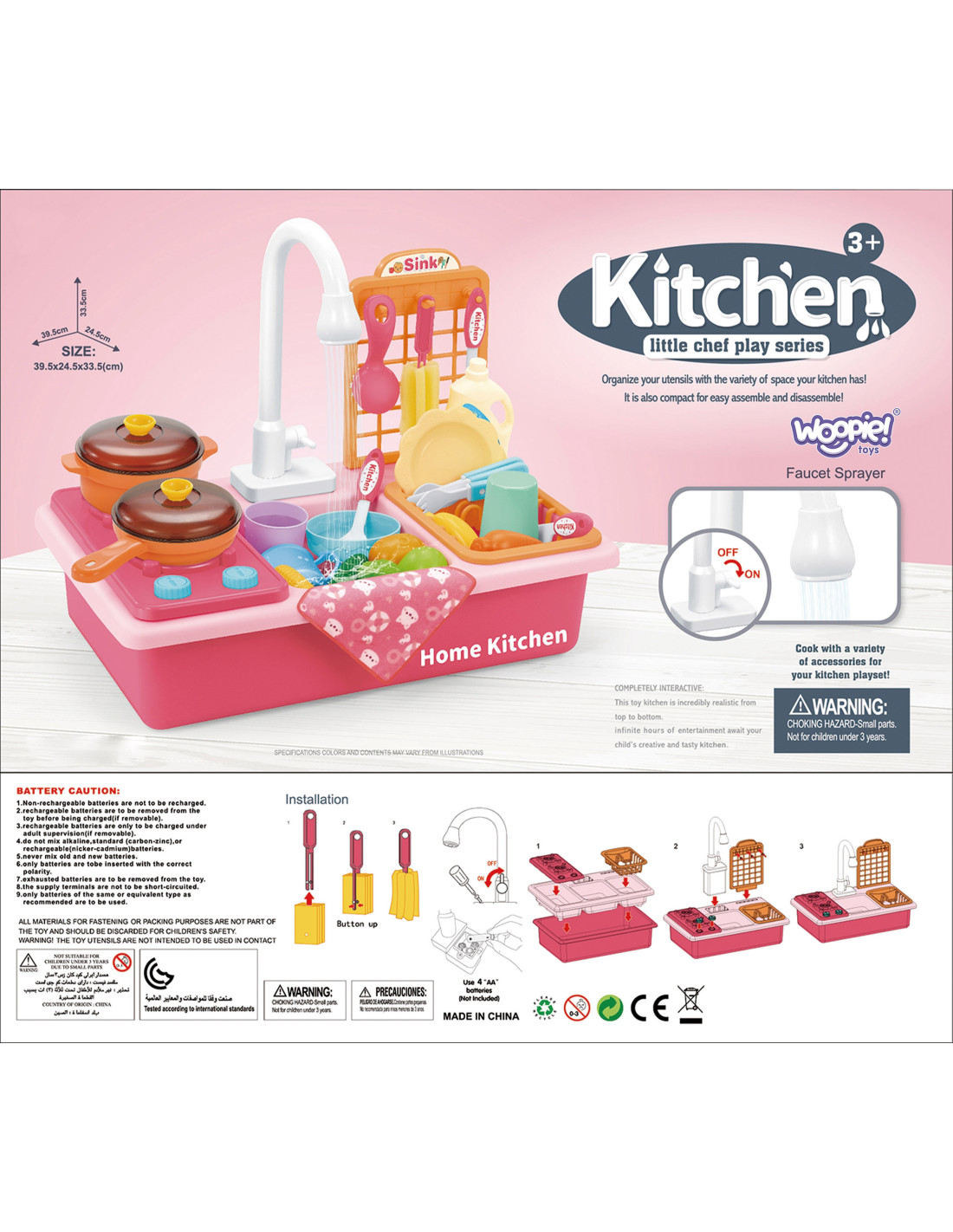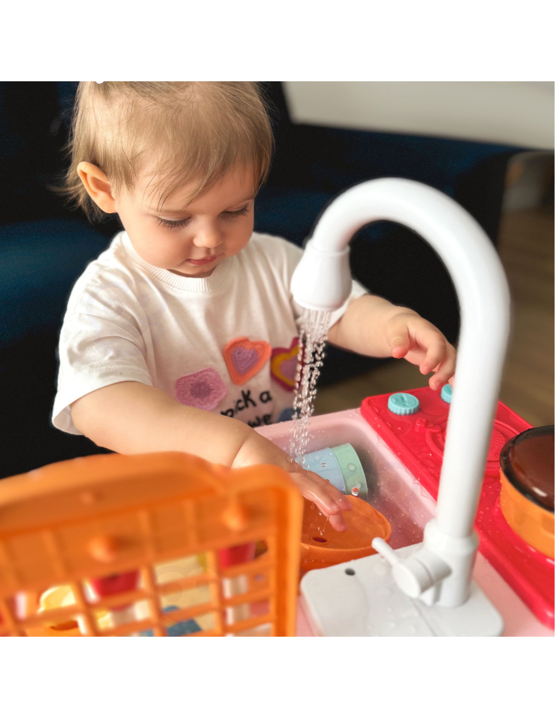 The 2-in-1 Kitchen Sink and Cooker from WOOPIE will allow children to cook and wash dishes just like their parents – imitating them from a young age! This toy is perfectly replicated , giving children the impression of performing real kitchen tasks. It features moving parts like stove taps and a faucet that spouts real water . Simply pour water into the bowl and watch your child play, and when it's done, simply empty the lower bowl. The set also includes many accessories, such as pots and pans . Playing with cooking, washing dishes, and similar tasks helps children develop a sense of responsibility and independence .