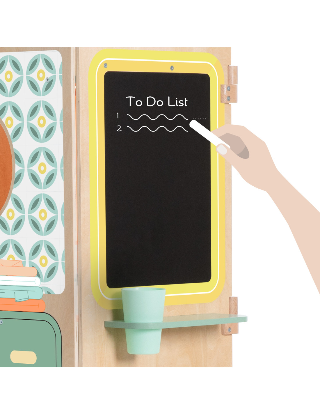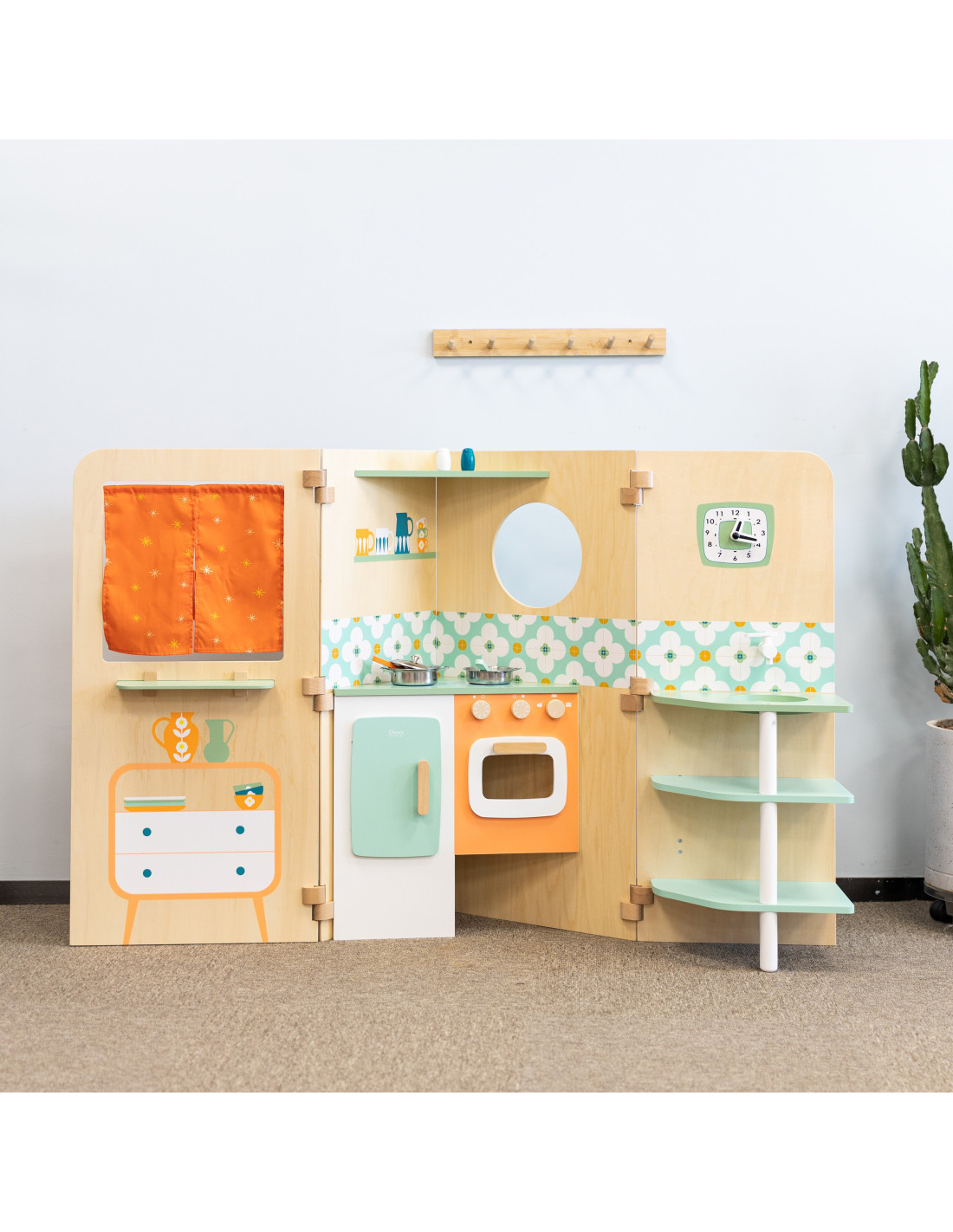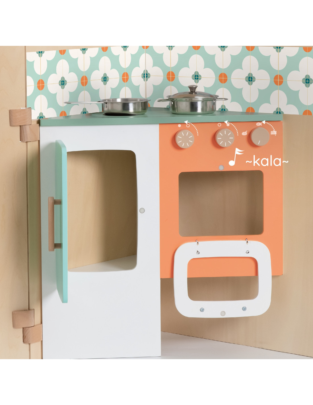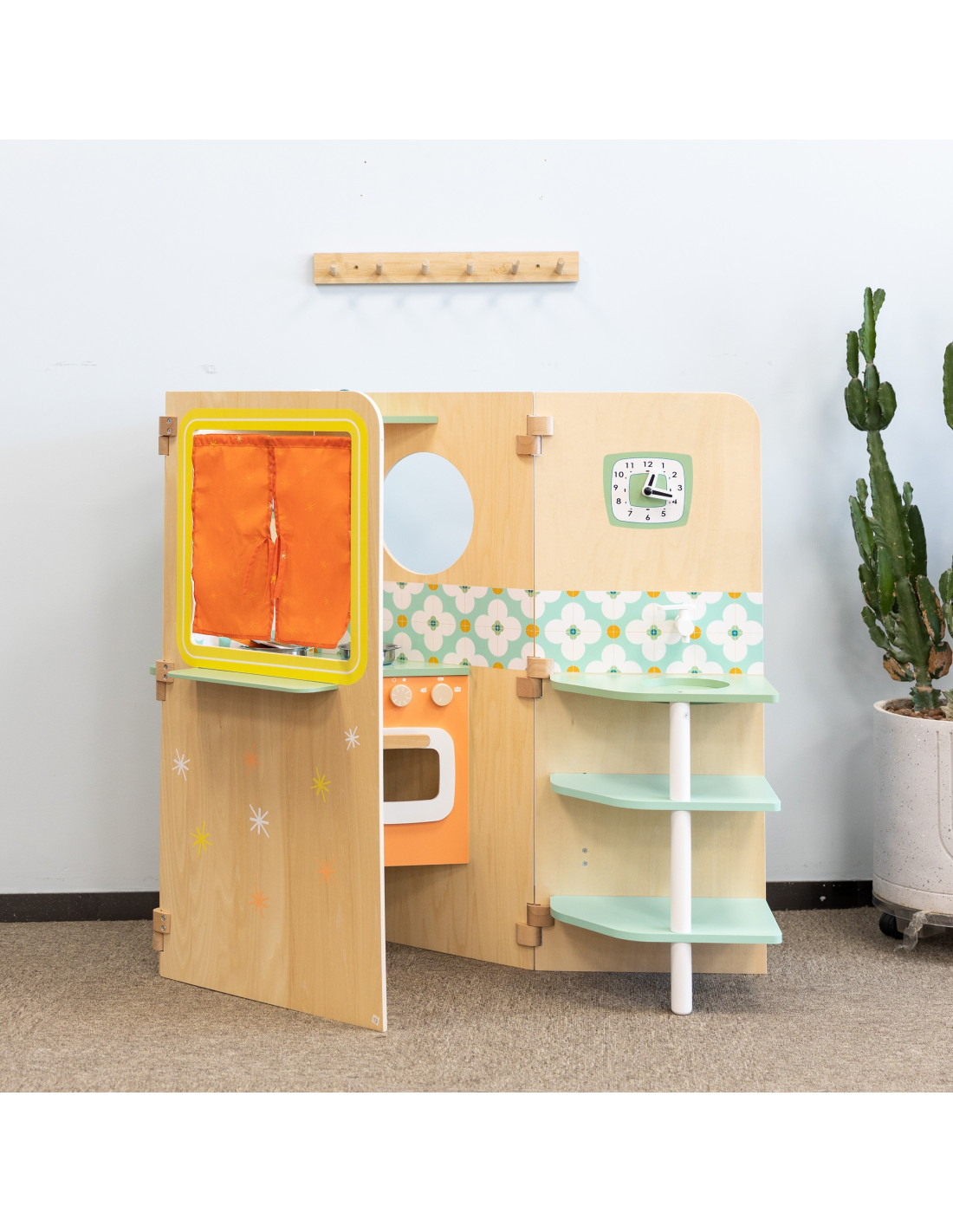 The multifunctional foldable playhouse from CLASSIC WORLD offers endless play possibilities. It reveals various play areas, such as a kitchen , a laundry room with a washing machine , a magnetic board , and a window . It can also be used as a puppet theater . Children can play "outside" and "inside" while looking out the window. The foldable playhouse is very compact and, thanks to its easy opening and folding system, takes up little space.