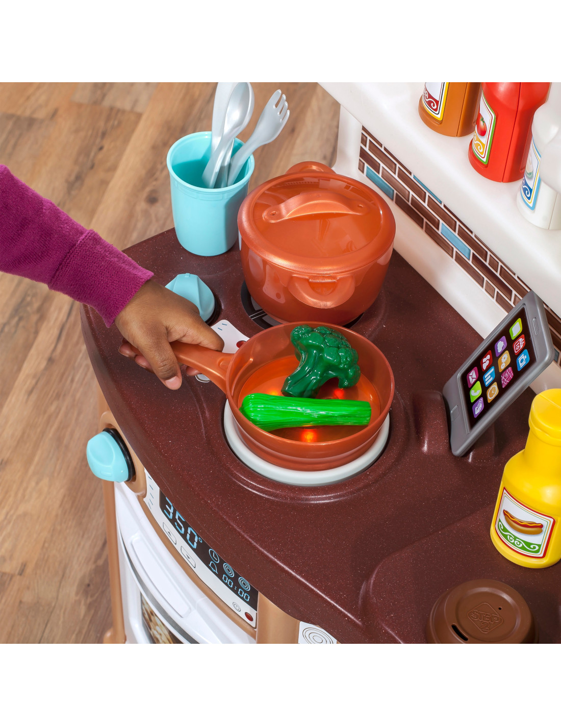 The fantastic "Play with Friends" kitchen corner from the American brand Step2 is the perfect place for children to play. Equipped with a kitchen with sound and light effects and a variety of accessories, it will provide children with hours of fun. Thanks to its large size, the kitchen can be used by more than one child. This kitchen will delight any young chef and encourage creative play.