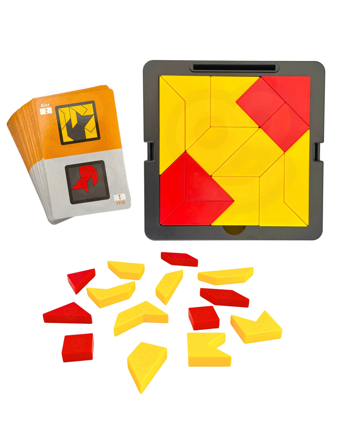 - Your task is to create the pattern shown on the card using the available blocks. You can rotate, move, and change the position of the blocks.